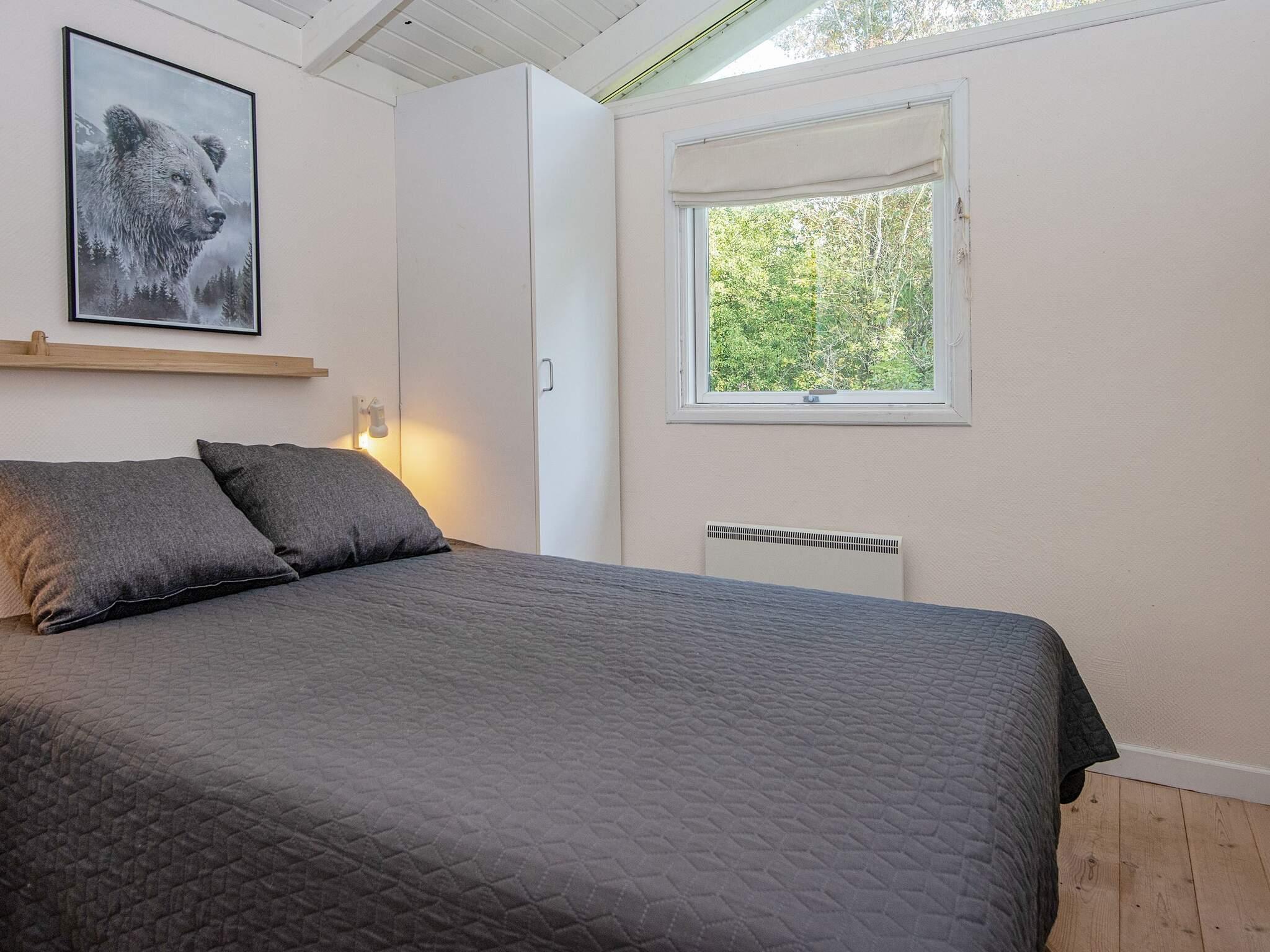 I Jegum finder I dette hyggelige og imødekommende feriehus, omgivet af træer på en fuldt indhegnet havegrund. Store vinduer og et skrånende tag giver masser af naturligt lys til at fylde interiøret, hvilket skaber en lys og luftig atmosfære. Gæsterne kan nyde freden og roen, varmen fra brændeovnen eller vindens blide fløjt gennem trætoppene.