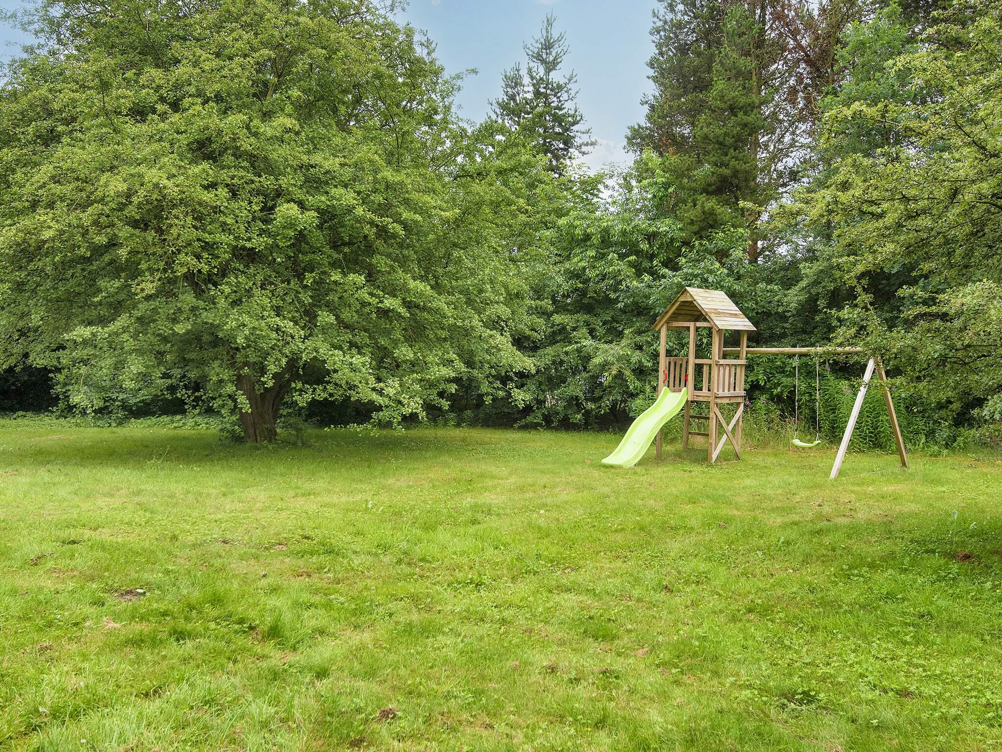 Rummeligt sommerhus med swimmingpool, spabad og sauna beliggende på en stor, delvist lukket og ugenert naturgrund med rutsjebane, gynger og sandkasse ved Jegum.