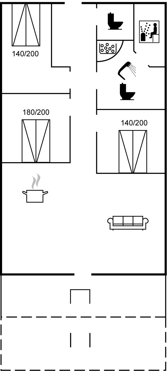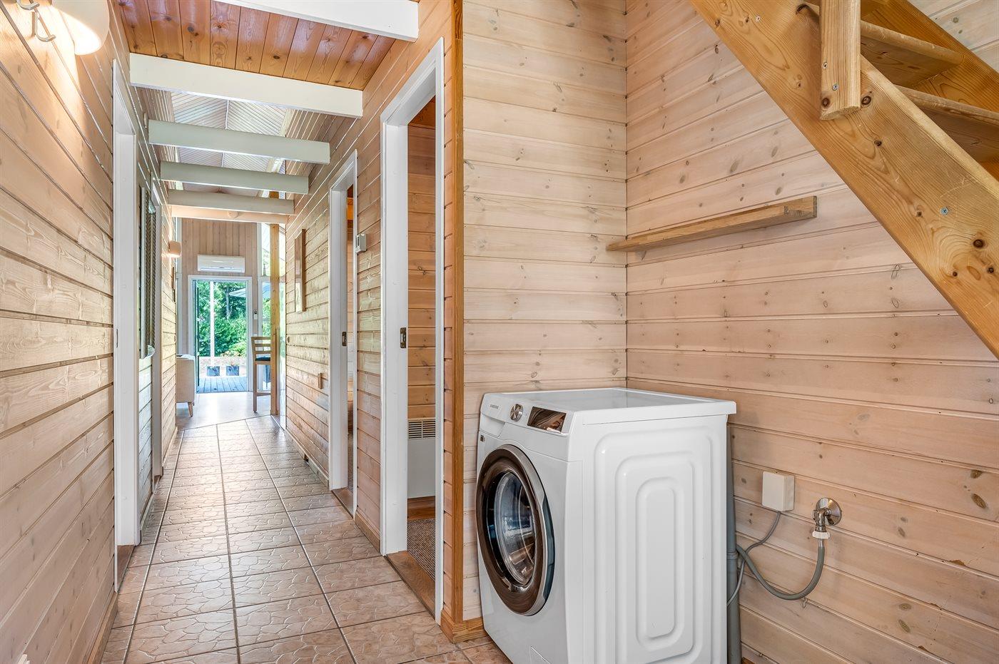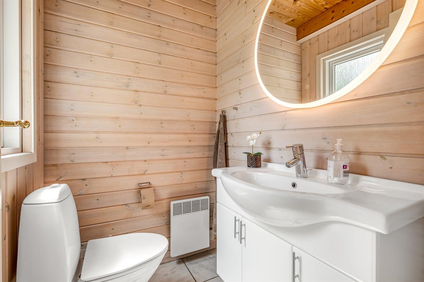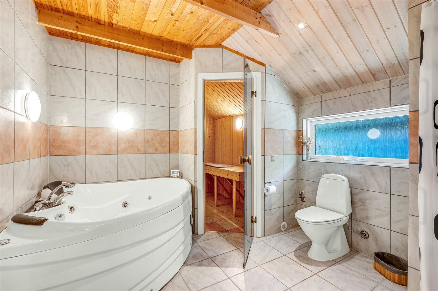 Der er 1 badeværelse med bruseniche og 2 toiletter I saunaen er der mulighed for afslapning.