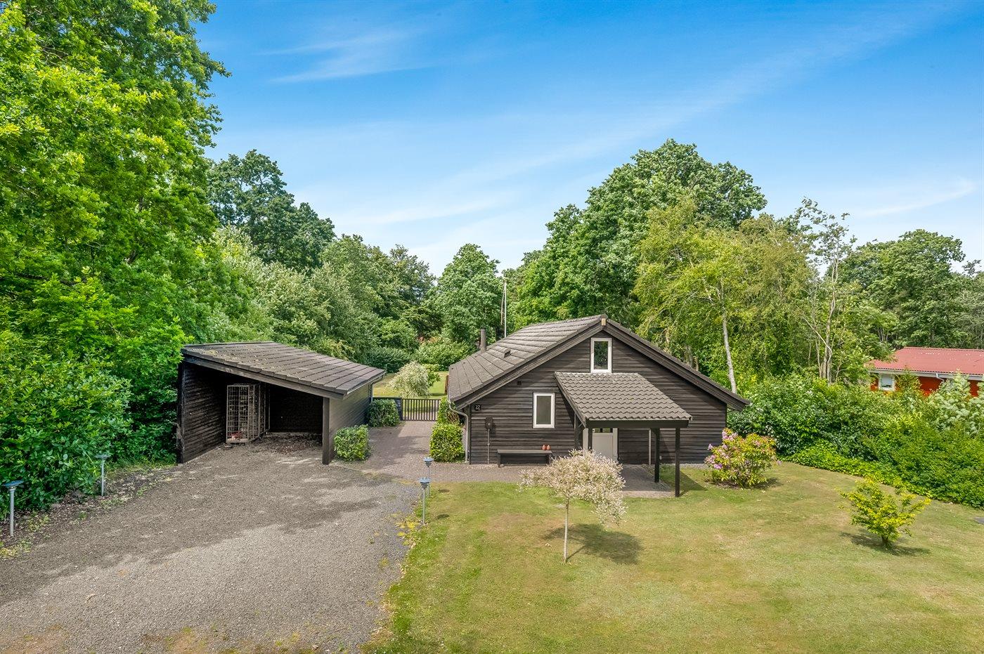 Ferieboligen er beliggende på en 1586 m² stor naturgrund. Der er 10000 m til havet. Nærmeste forretning er beliggende i en afstand af 200 m. Til ferieboligen hører åbent terrasseareal. Desuden er der overdækket terrasse. Der ligger en legeplads i en afstand af 200 m. Bålsted. Grill til rådighed. Der er carport til rådighed. Parkering ved ferieboligen.