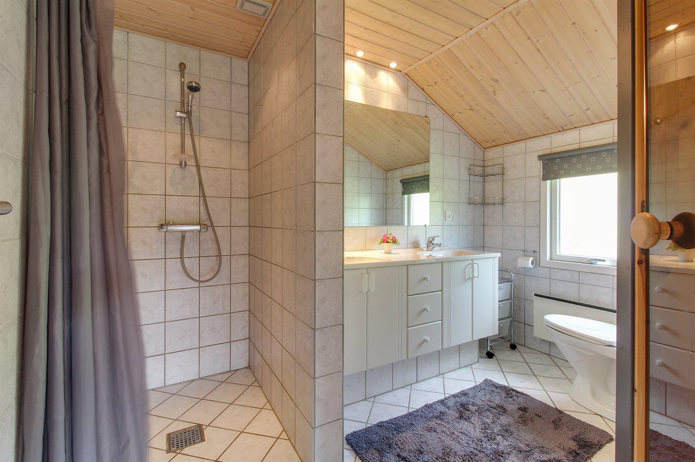 Der er 2 badeværelser med bruseniche og 2 toiletter. Der er gulvvarme på 2 badeværelser. I saunaen er der mulighed for afslapning.