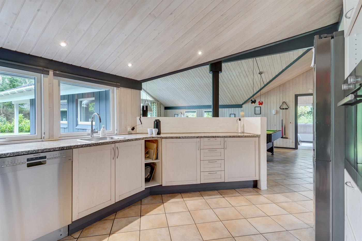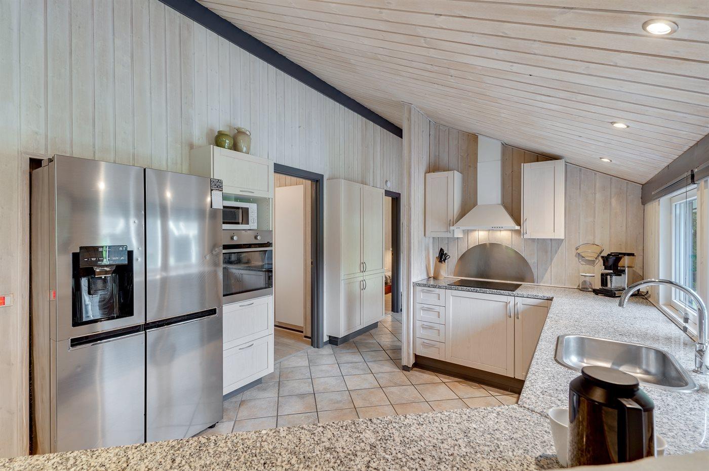 Det veludstyrede køkken indeholder bl.a. varmluftovn, mikrobølgeovn, opvaskemaskine og komfur med keramiske kogeplader. Desuden findes der et lækkert amerikanerkøleskab med god rummelig fryser til den store familie samt isterningmaskine og isvand. Frysekapacitet på 216 liter.