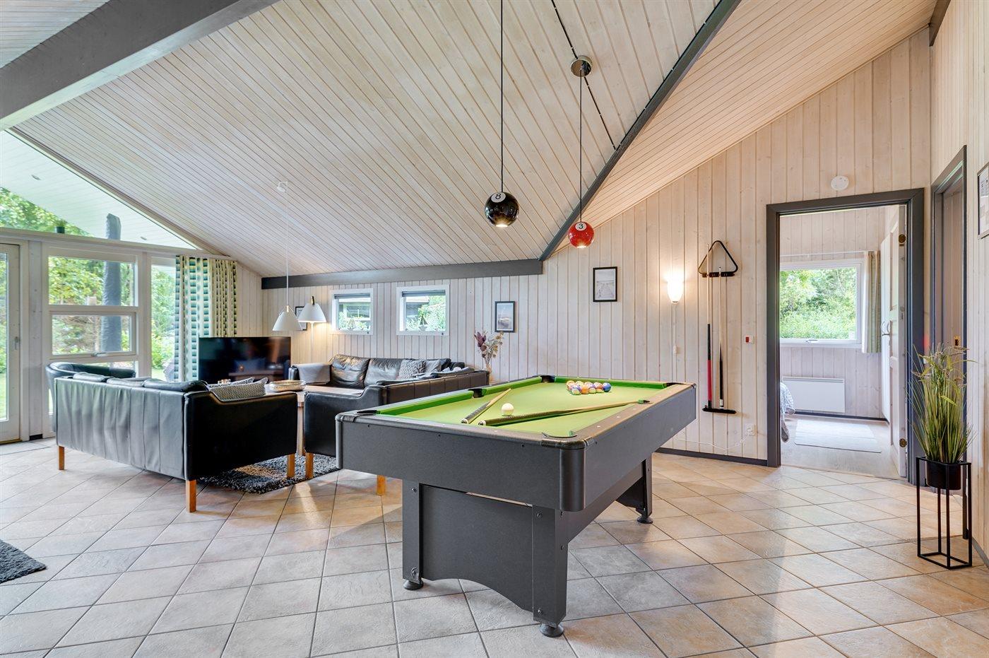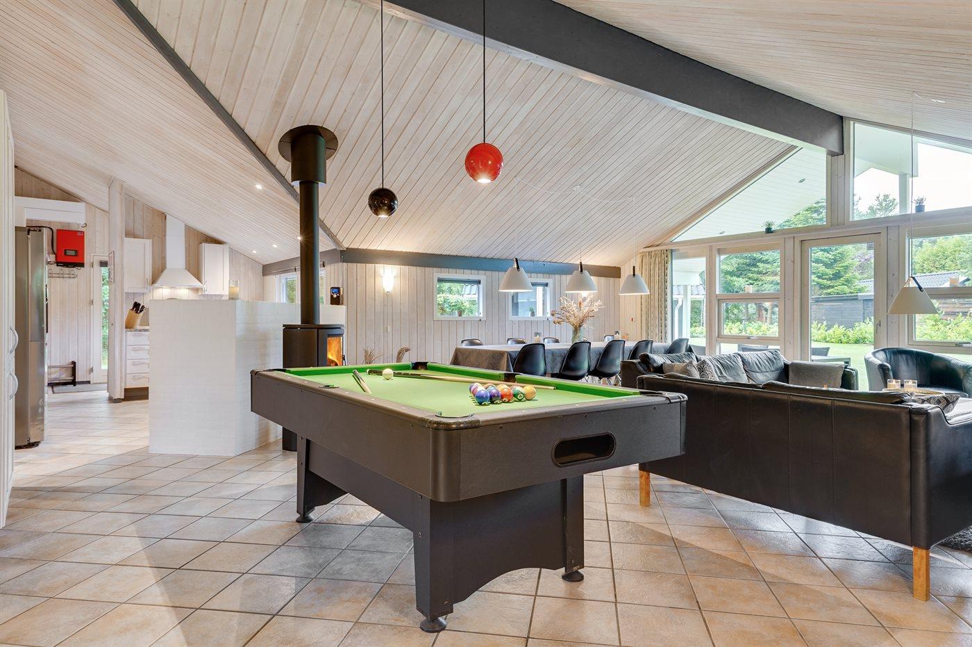 Huset er indrettet med komfortable skandinaviske møbler af bedste kvalitet. Den store, lyse og rummelige opholdsstue indeholder brændeovn, langbord med plads til 10-12 personer samt sofagruppe 3+3+2+1, 48" Smart TV med chromecast, soundbar med bluetooth og Stofa tv-pakke med 24 kanaler, DAB Radio med bluetooth. Desuden findes der poolbord, SONY Playstation3 med spil, som også kan bruges som DVD afspiller (BLU-RAY) samt ekstra TV samt chromecast på det ene værelse og i annekset. Trådløs internetforbindelse via lynhurtigt Fibernet (egen computer kan medbringes).