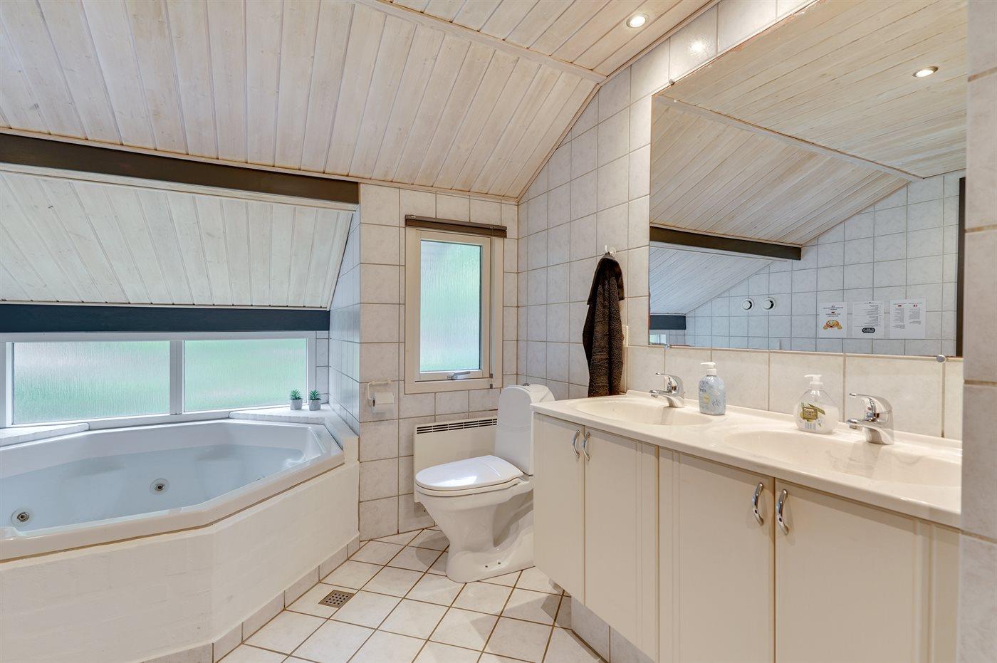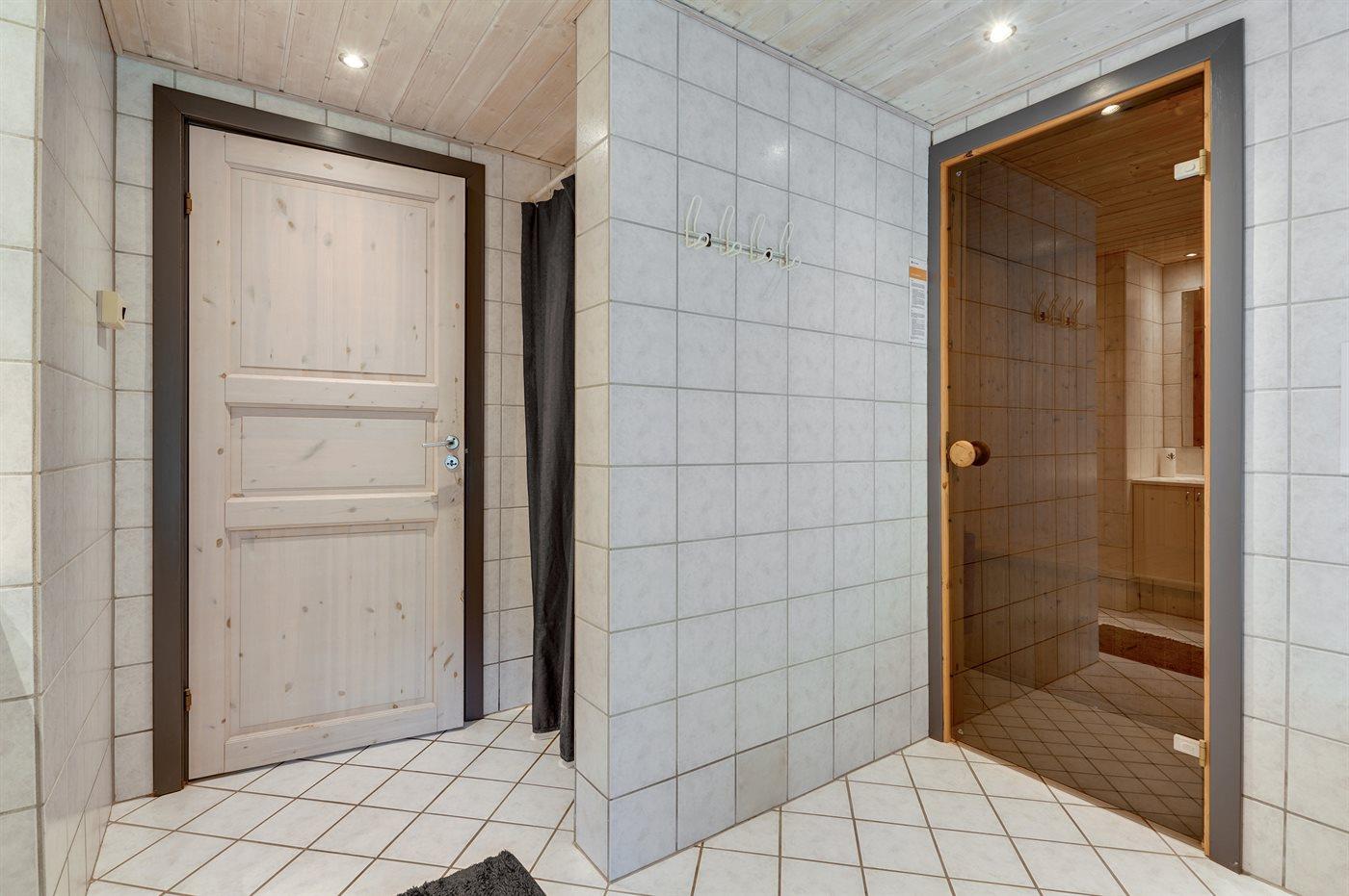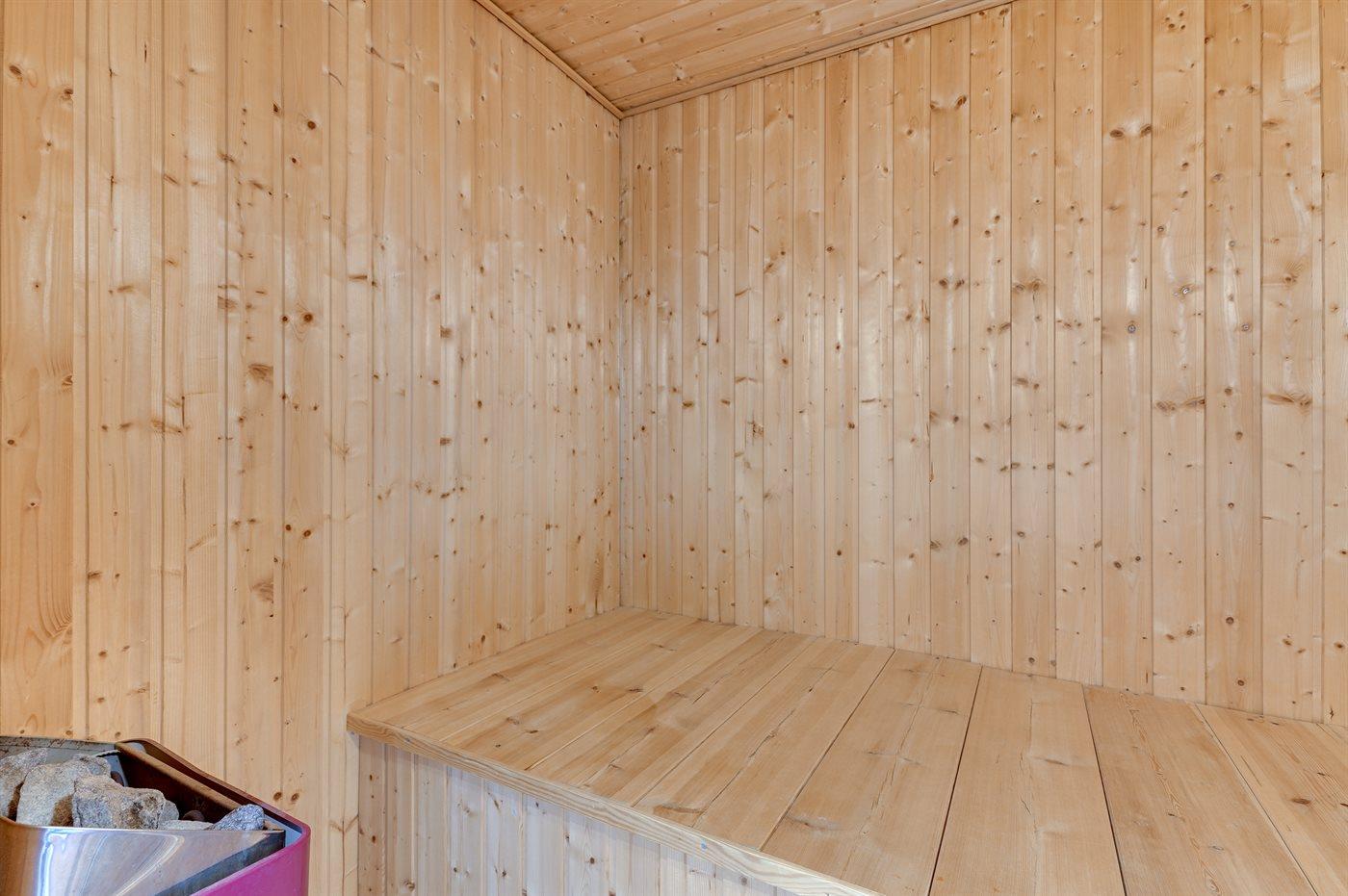 Huset indeholder et stort bryggers med god plads til sko og overtøj samt håndvask, vaskemaskine og tørretumbler. Stort badeværelse med dejlig 6-pers. Spa (standvand), bruseniche samt direkte adgang til husets sauna. Ekstra badeværelse med bruseniche (handicapvenligt).