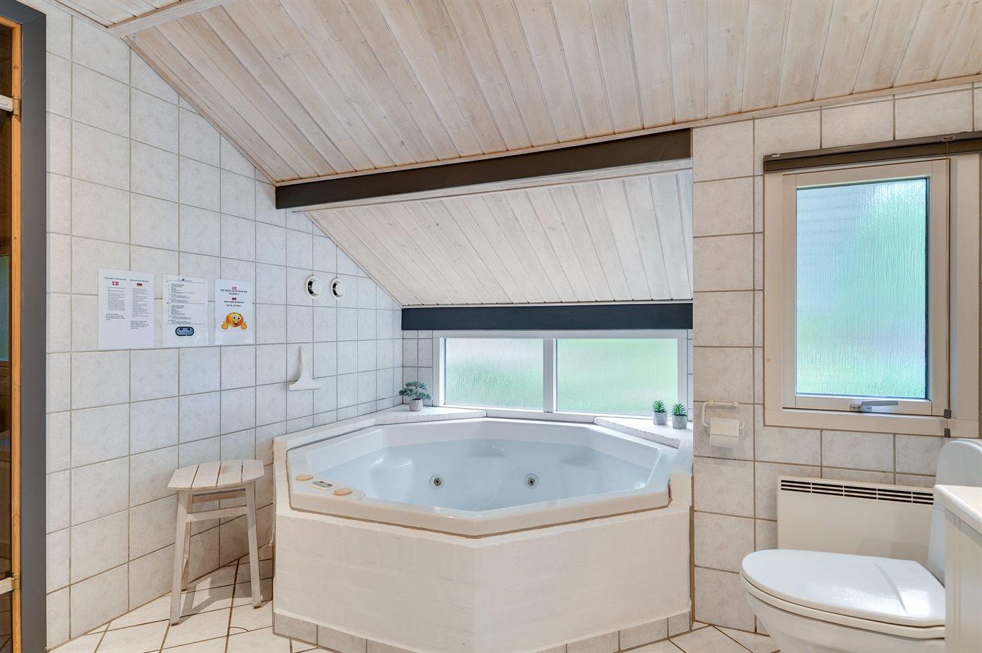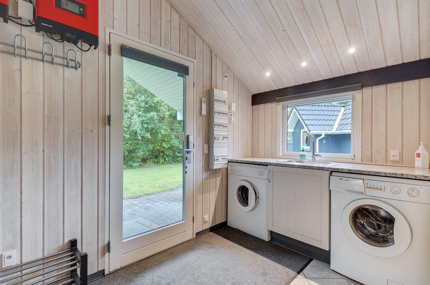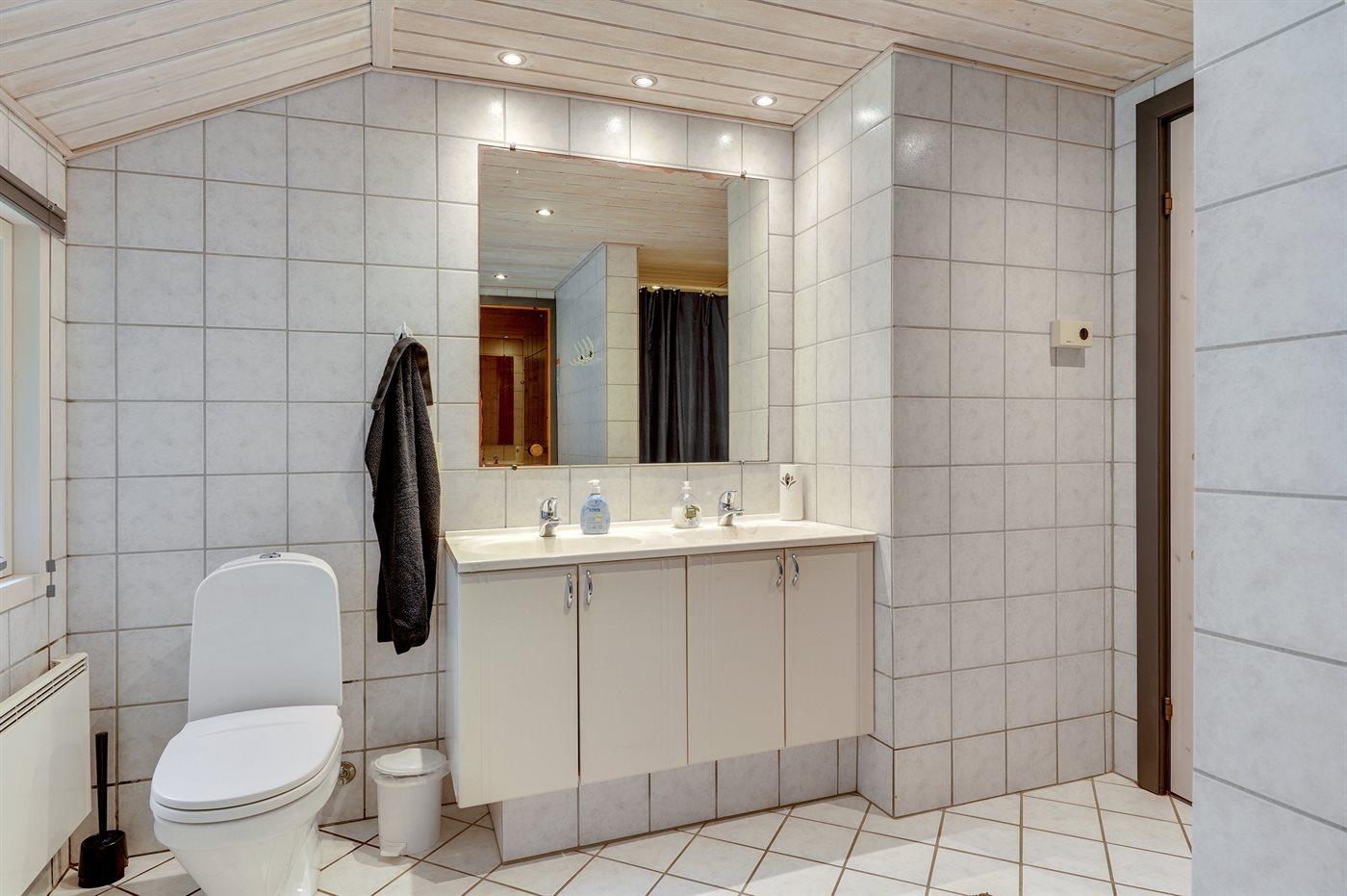 Huset indeholder et stort bryggers med god plads til sko og overtøj samt håndvask, vaskemaskine og tørretumbler. Stort badeværelse med dejlig 6-pers. Spa (standvand), bruseniche samt direkte adgang til husets sauna. Ekstra badeværelse med bruseniche (handicapvenligt).