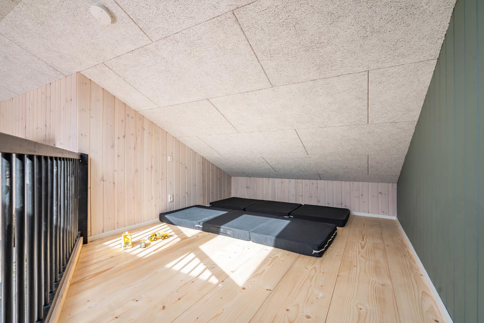 Derudover findes en hyggelig hems med to madrasser – et sikkert hit hos børnene som både lege- og soveplads.