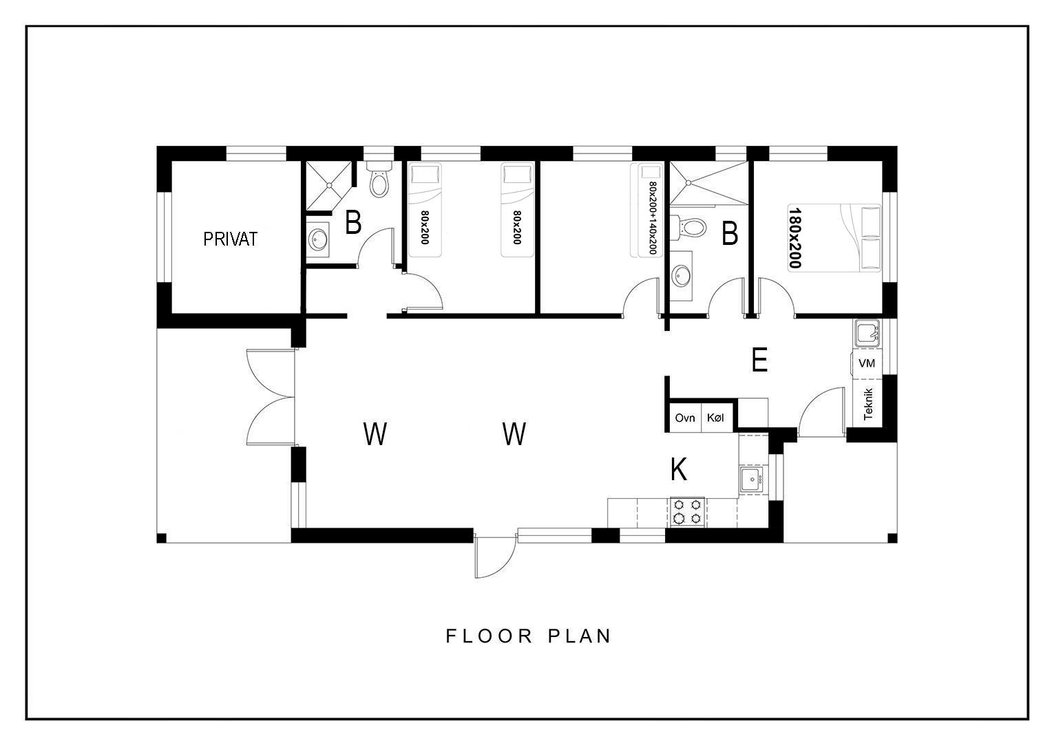 1 værelse med køjeseng (øverst 80 x 200 cm / nederst 140 x 200 cm)