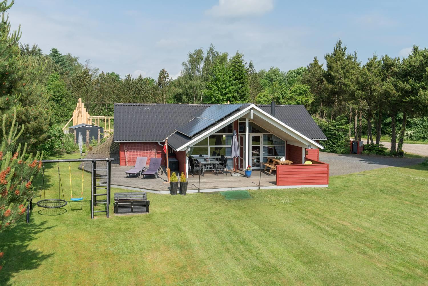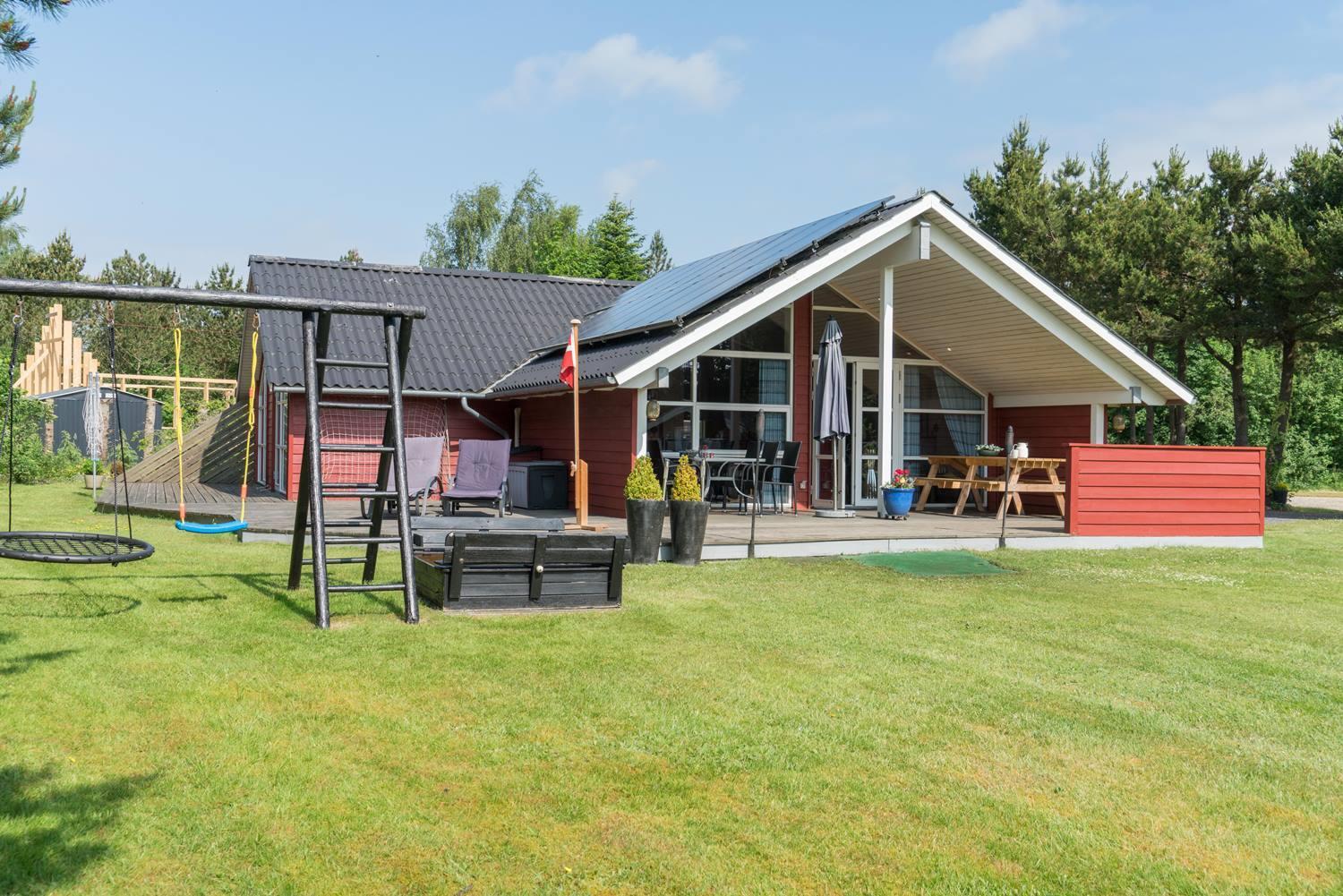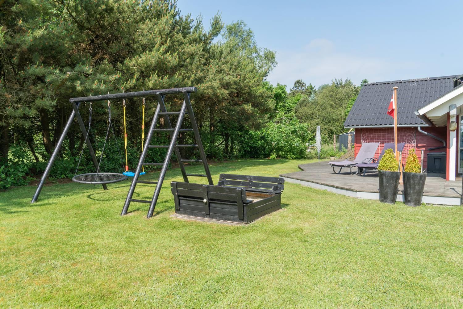 For børnefamilier er haven et oplagt samlingspunkt. Her er både gynge og sandkasse, mens de voksne kan slappe af på terrassen. Den rolige beliggenhed og den store naturgrund gør det samtidig til et skønt sted at holde ferie med hund.