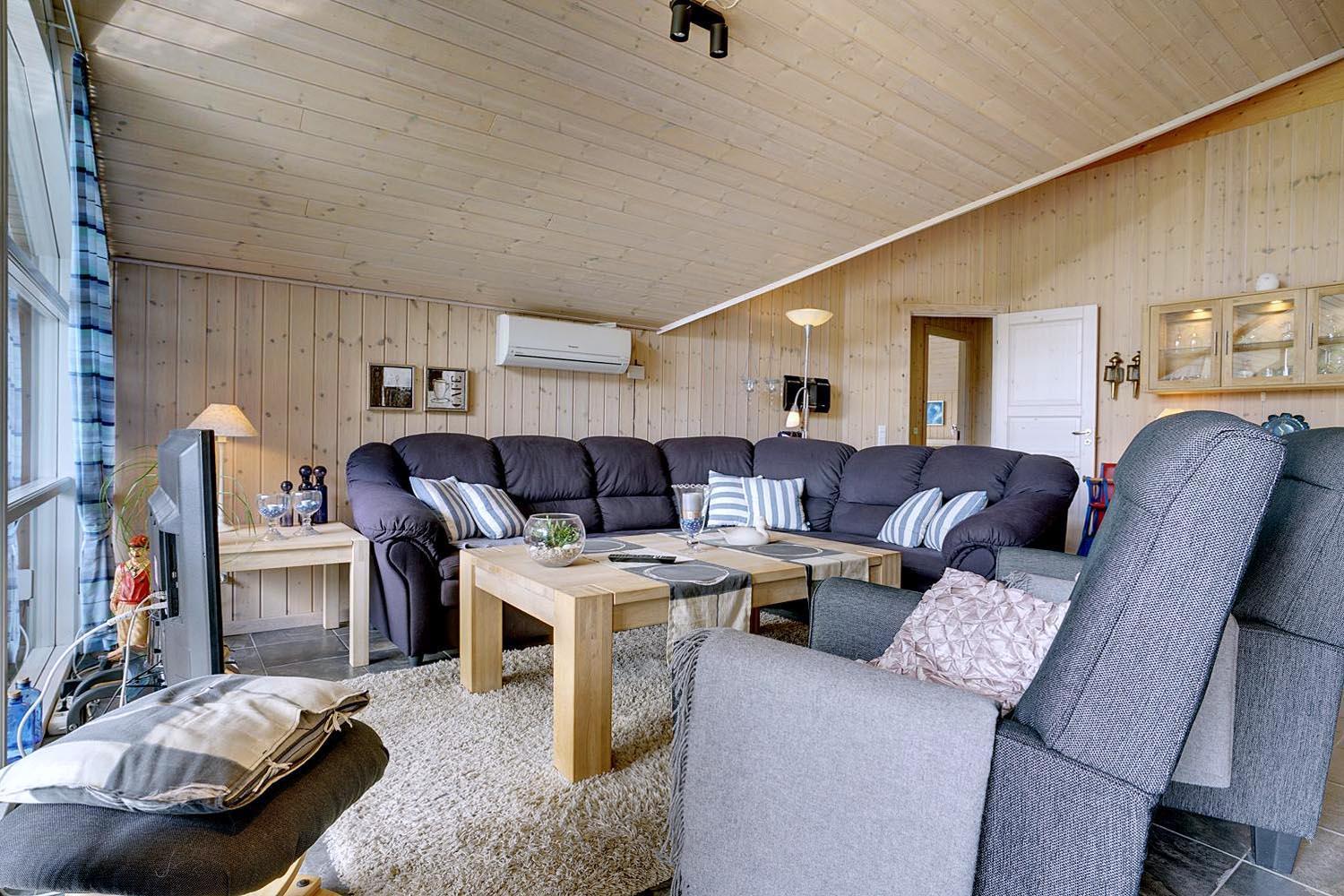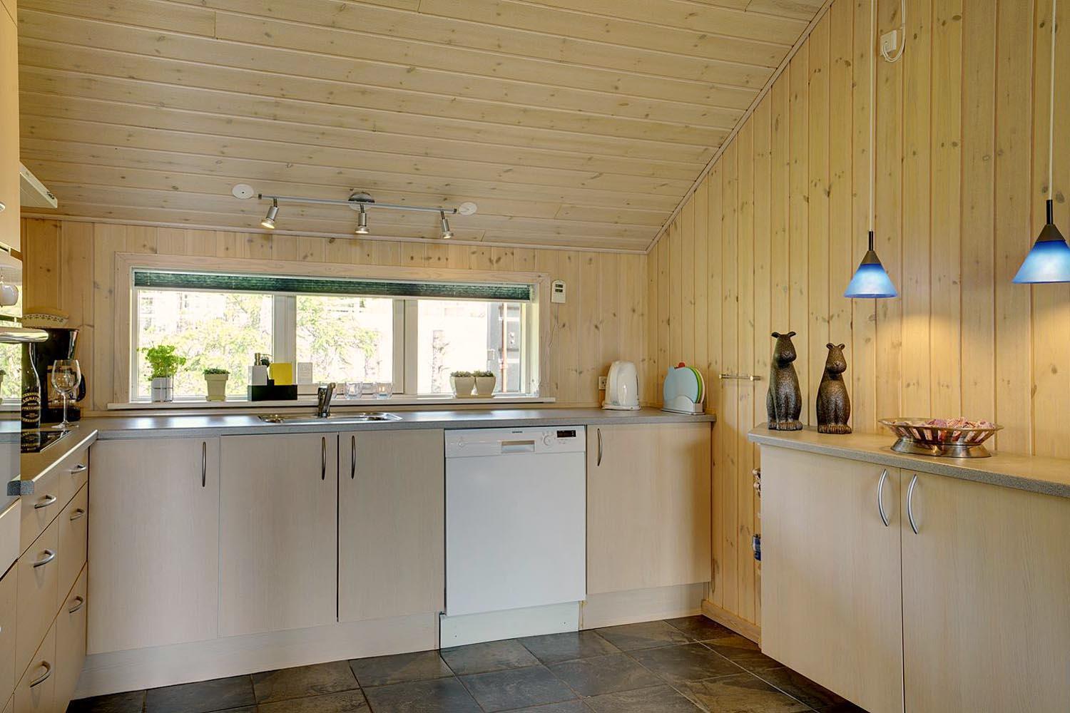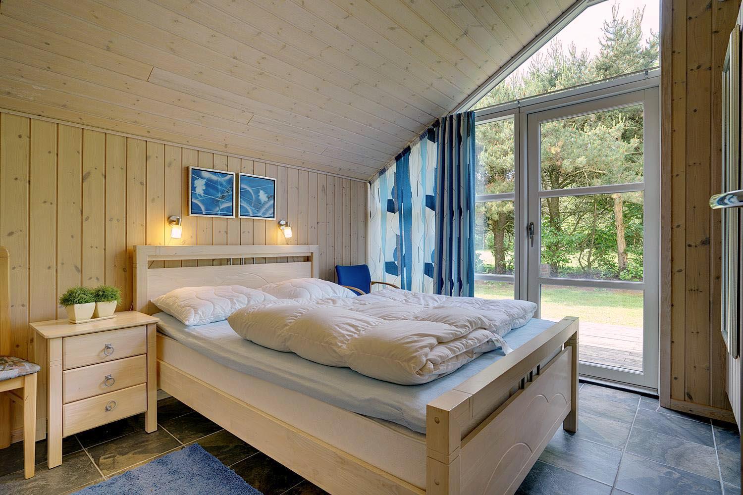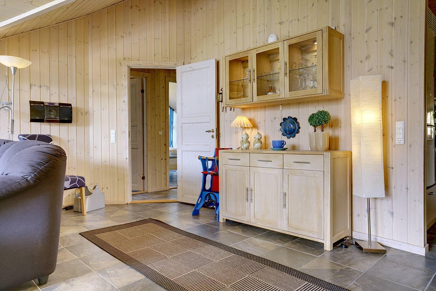 Husets hjerte er det indbydende opholdsrum, hvor stue og køkken smelter sammen i ét åbent og lyst fællesområde. Brændeovnen spreder varme og klassisk sommerhushygge på kølige dage, mens gulvvarme og varmepumpe sikrer et behageligt indeklima året rundt. Den åbne planløsning gør det nemt at være sammen – uanset om I slapper af i sofaen, spiller spil eller laver mad.