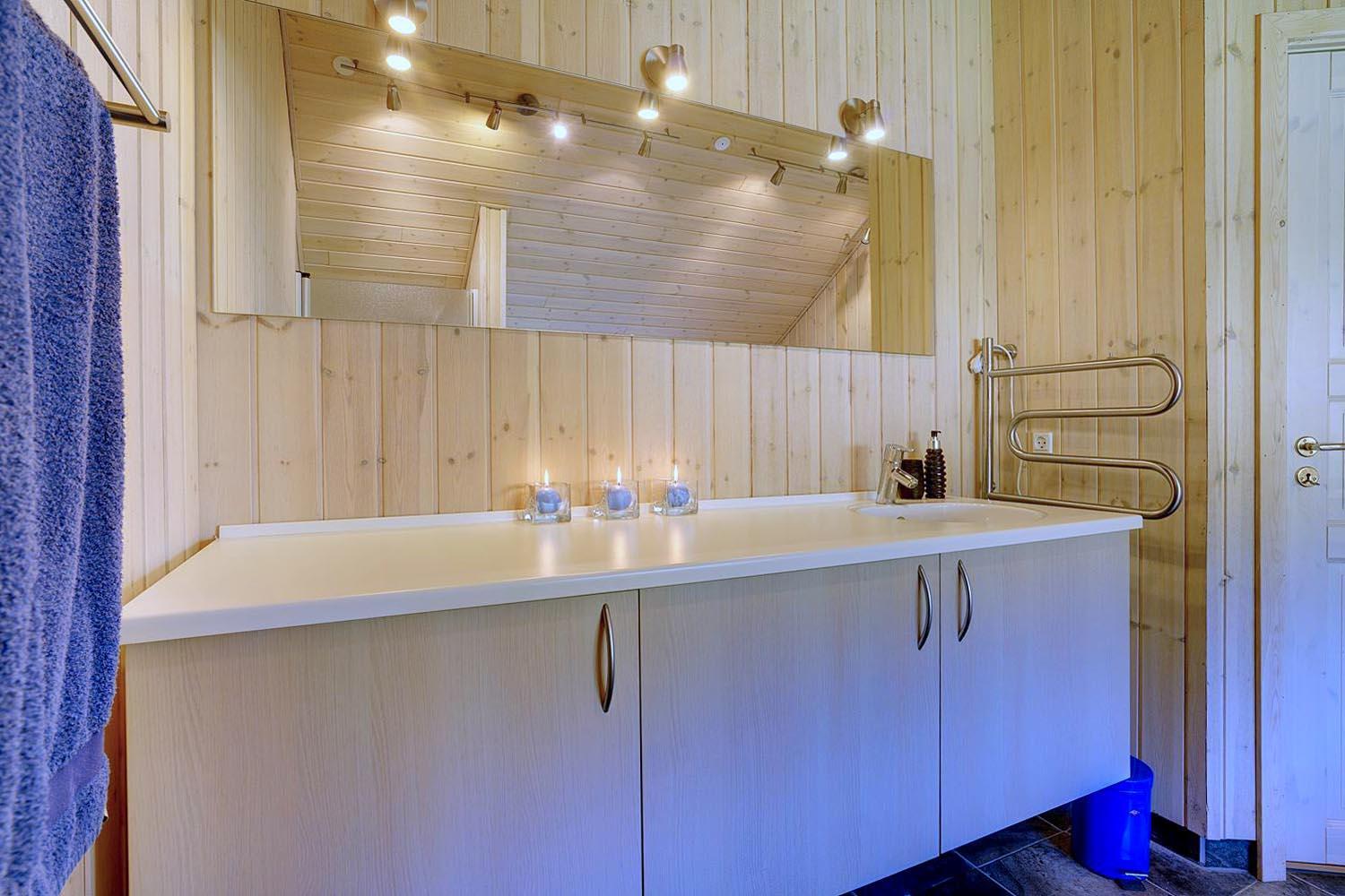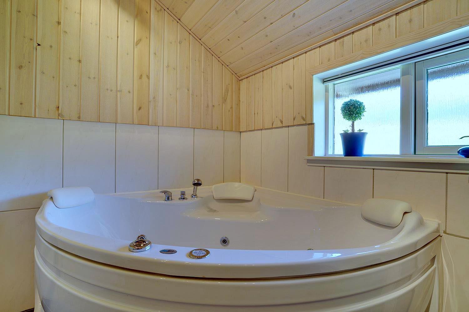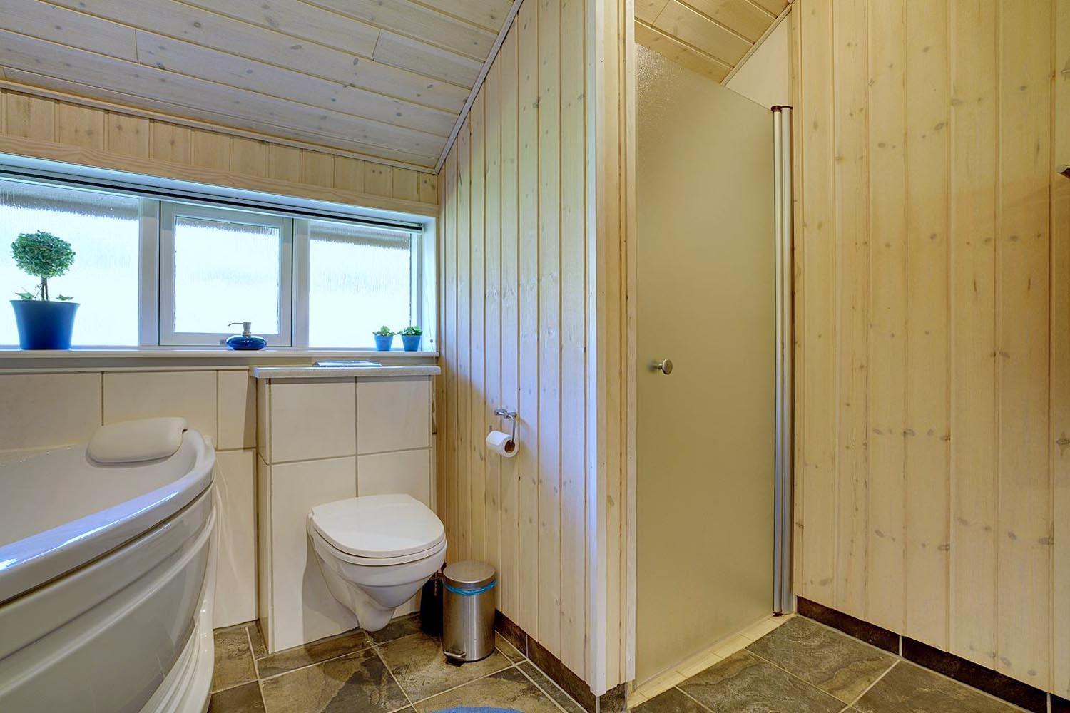 De tre soveværelser er roligt placeret og indrettet til gode nætters søvn. Med to badeværelser får I ekstra bekvemmelighed i hverdagen. Det største badeværelse byder på spabad – perfekt til afslapning efter en lang dag ved stranden. Det ekstra badeværelse giver god plads og fleksibilitet, når flere er afsted sammen.