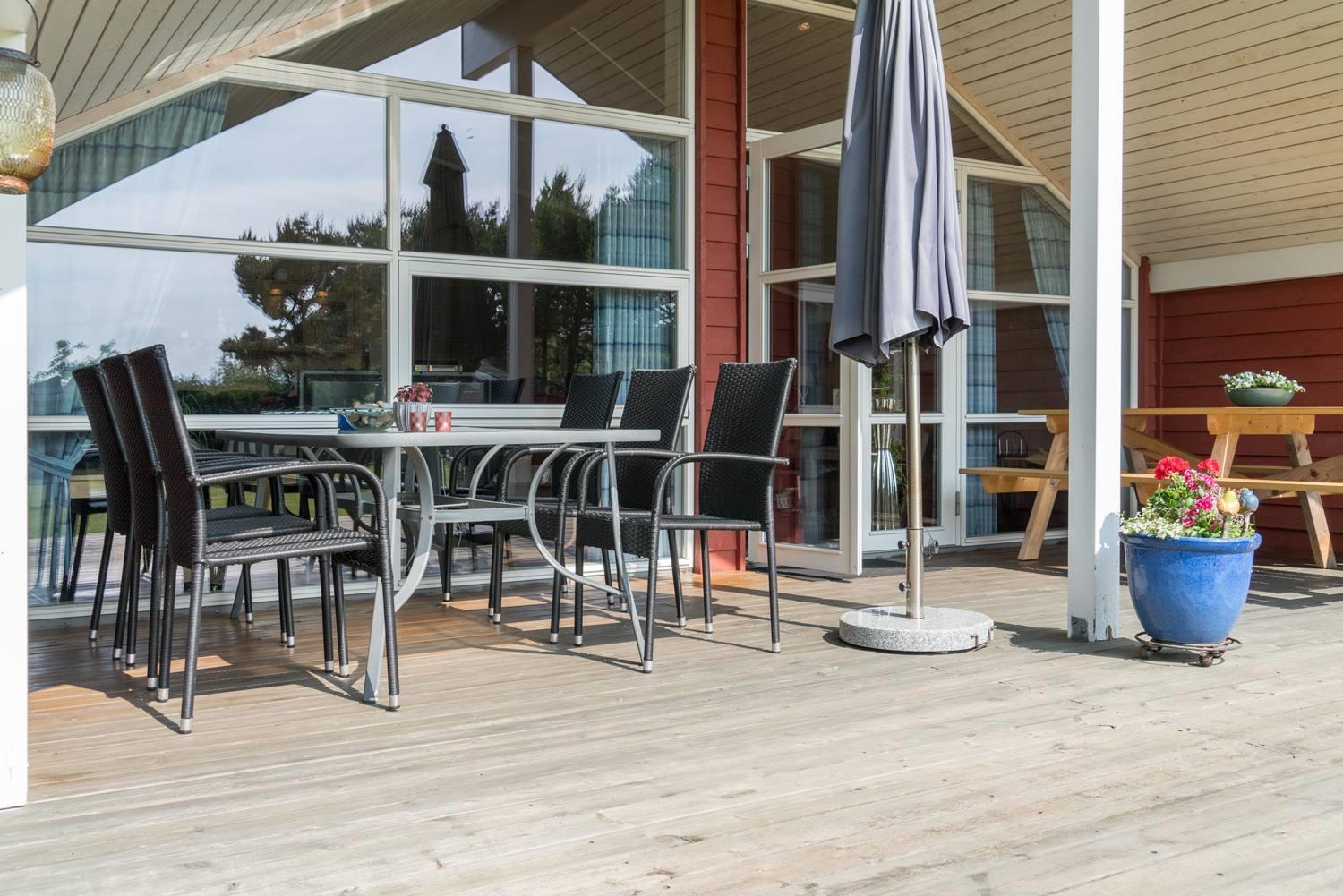 Udendørs venter en rummelig grund, som indbyder til både leg og afslapning. Den overdækkede terrasse skaber et dejligt uderum, hvor I kan nyde morgenkaffen i fred eller runde dagen af i de lune aftentimer. Overgangen mellem inde og ude er glidende, så den friske vestkystluft let bliver en del af feriestemningen.