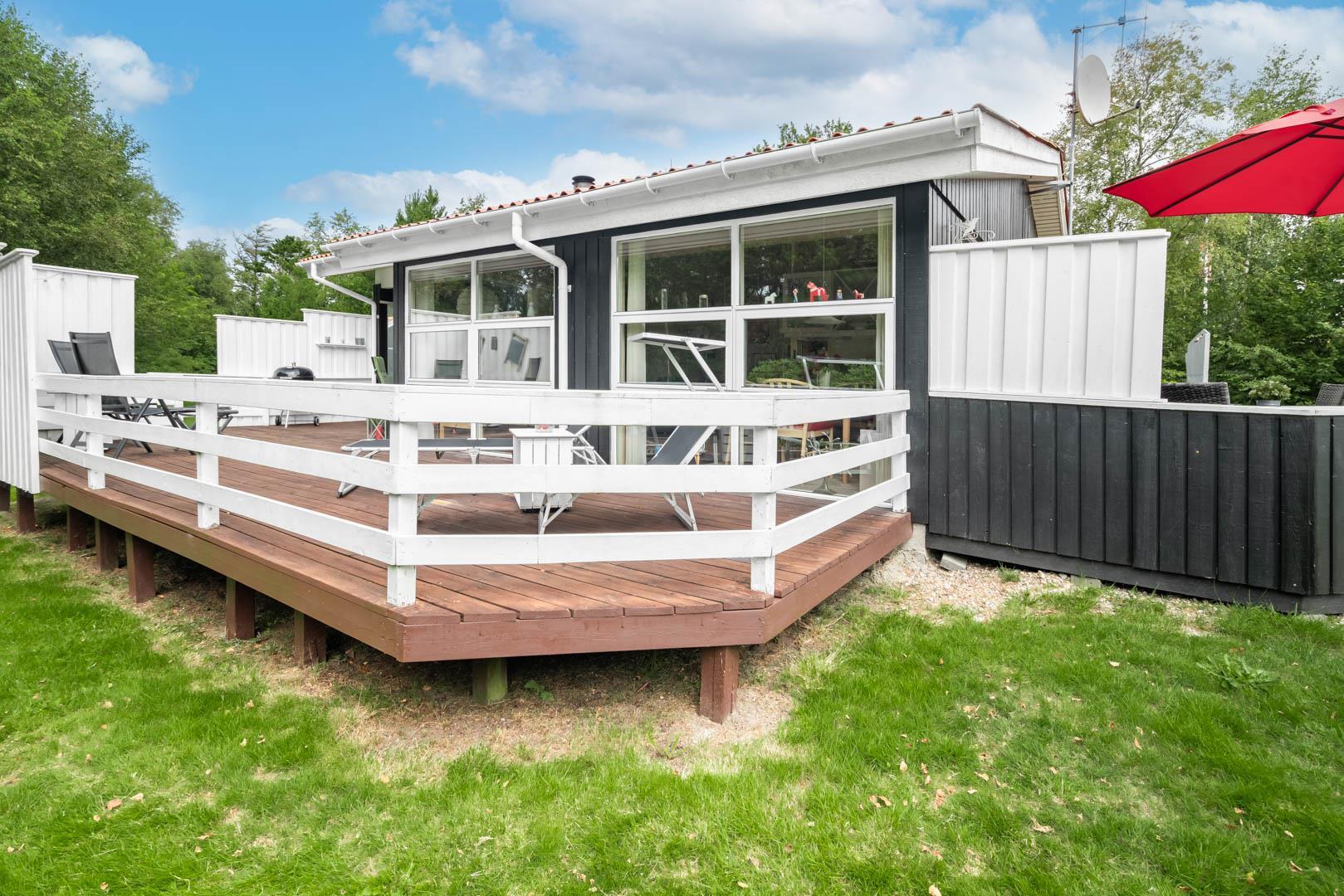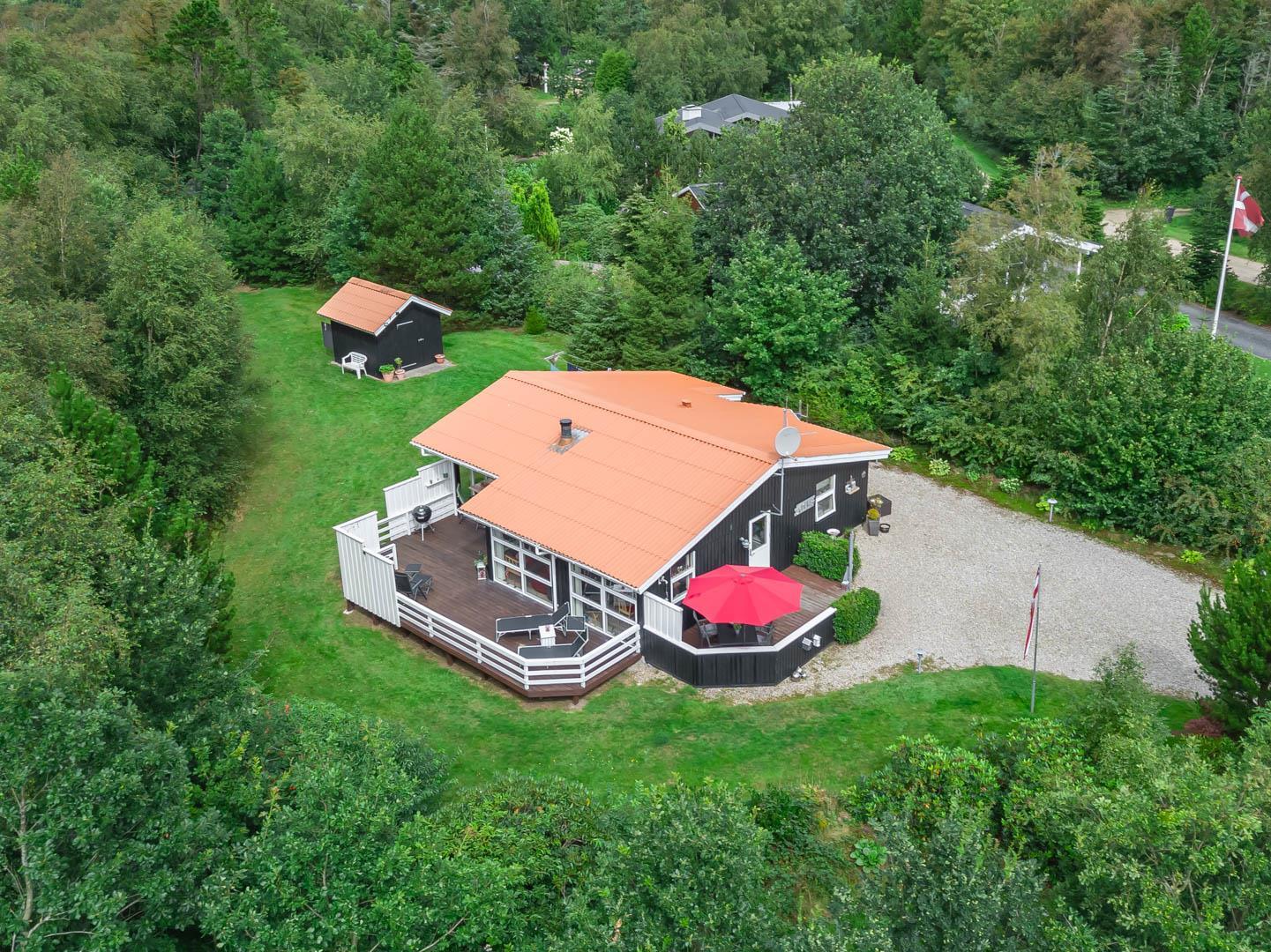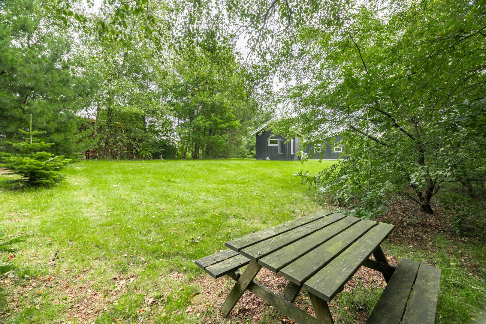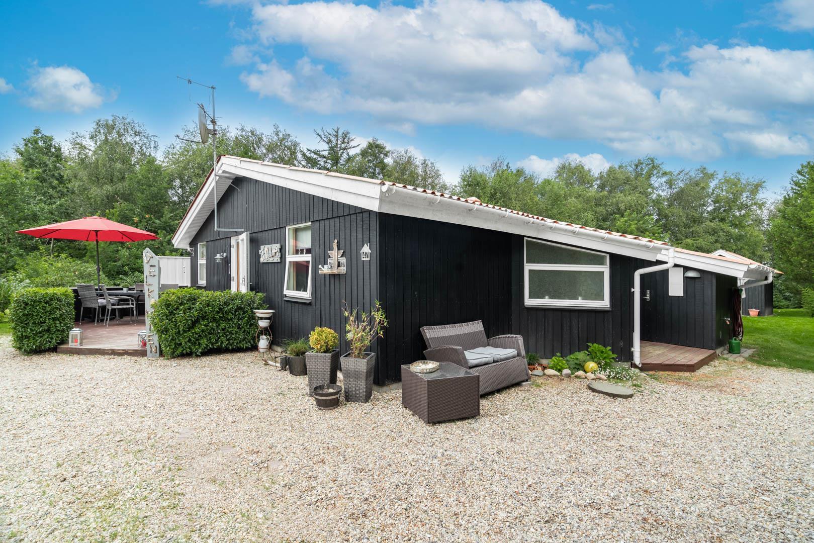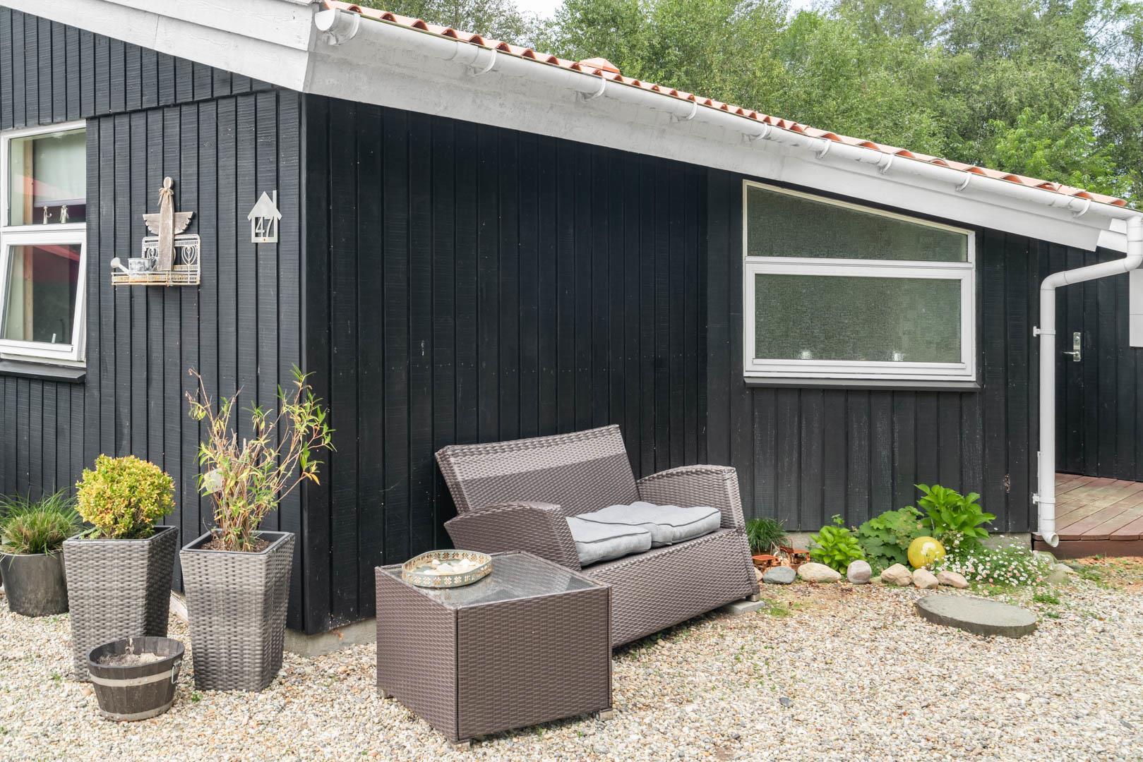 Terrassen er godt beskyttet mod vinden og indbyder til hyggelige grillaftener og fælles måltider i det fri. Haven omkring huset giver plads til leg, afslapning eller blot en stille stund med en god bog.