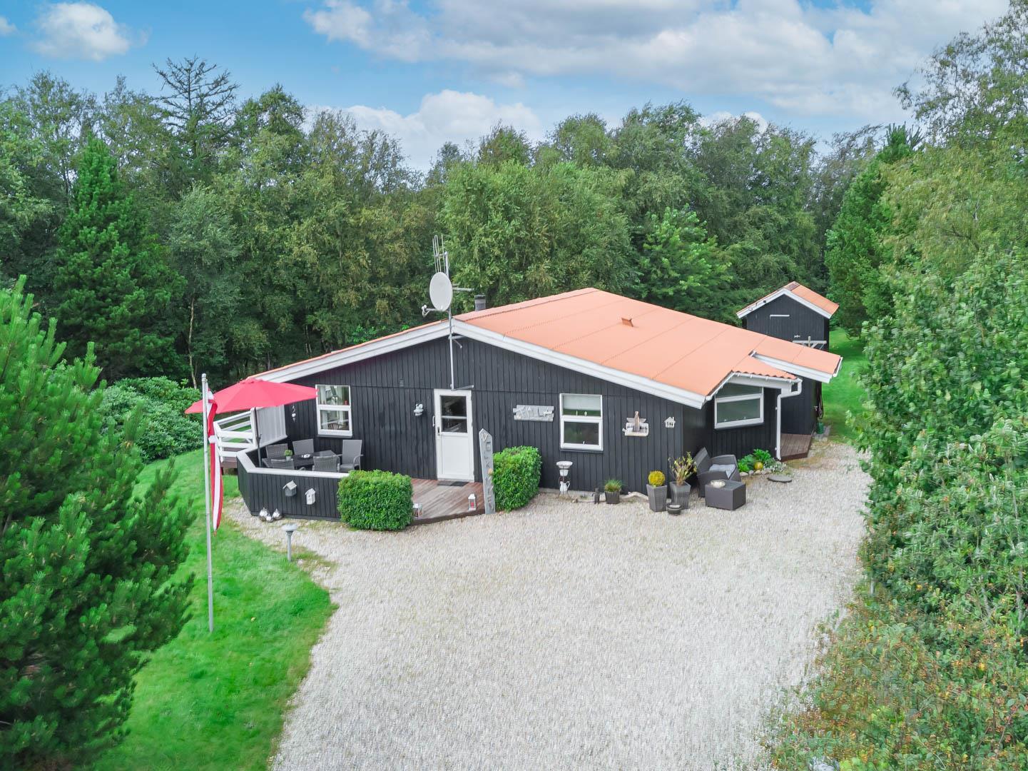 Med spa, sauna, brændeovn, vaskemaskine, tørretumbler og lukket terrasse er alt klar til en afslappende ferie for hele familien – inklusive jeres firbenede venner.