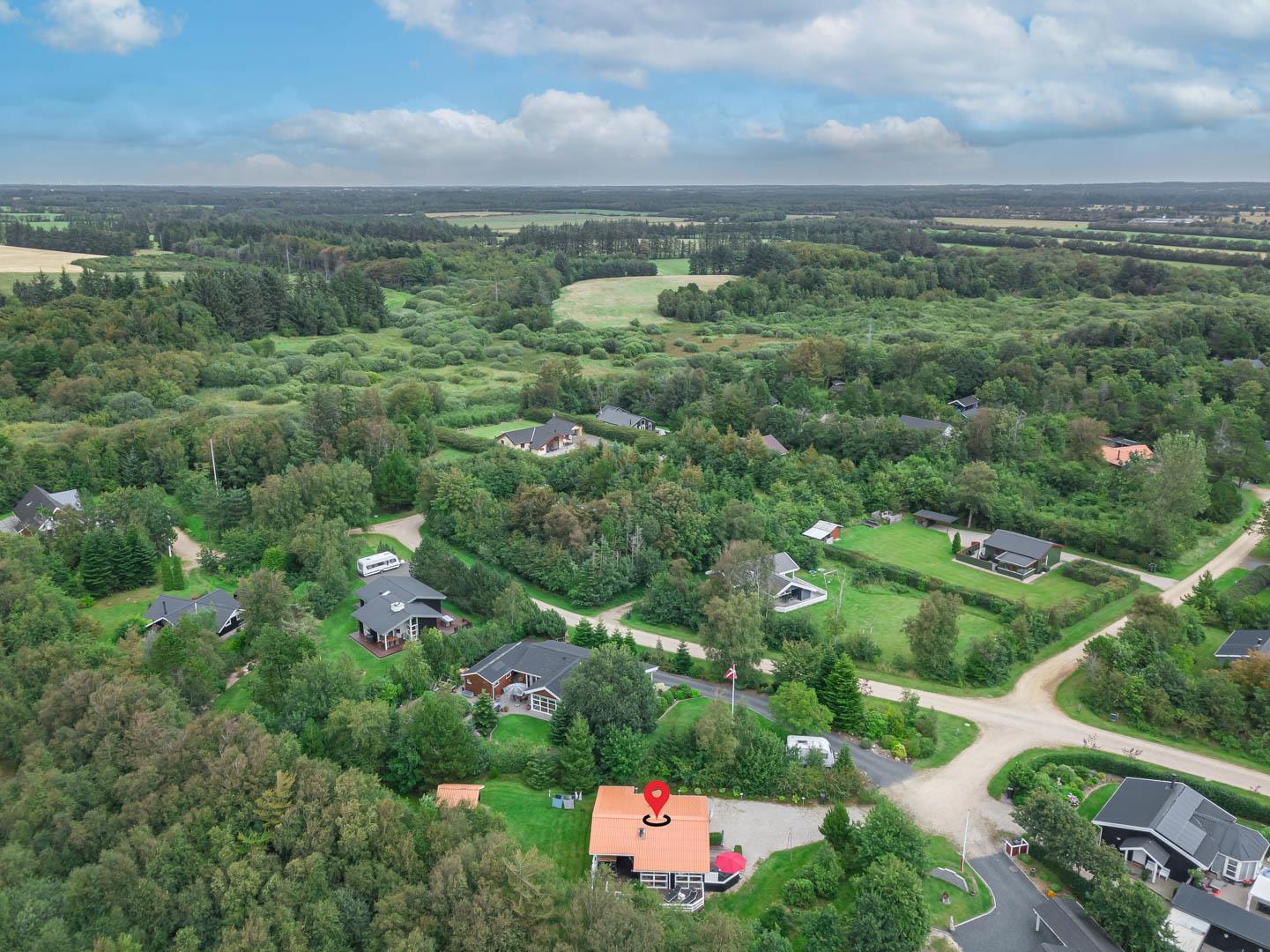 Sommerhuset ligger i det rolige Jegum Ferieland, kun 1,5 km fra områdets center med købmand, café, legeplads og minigolf – alt, hvad en familie kan ønske sig.
