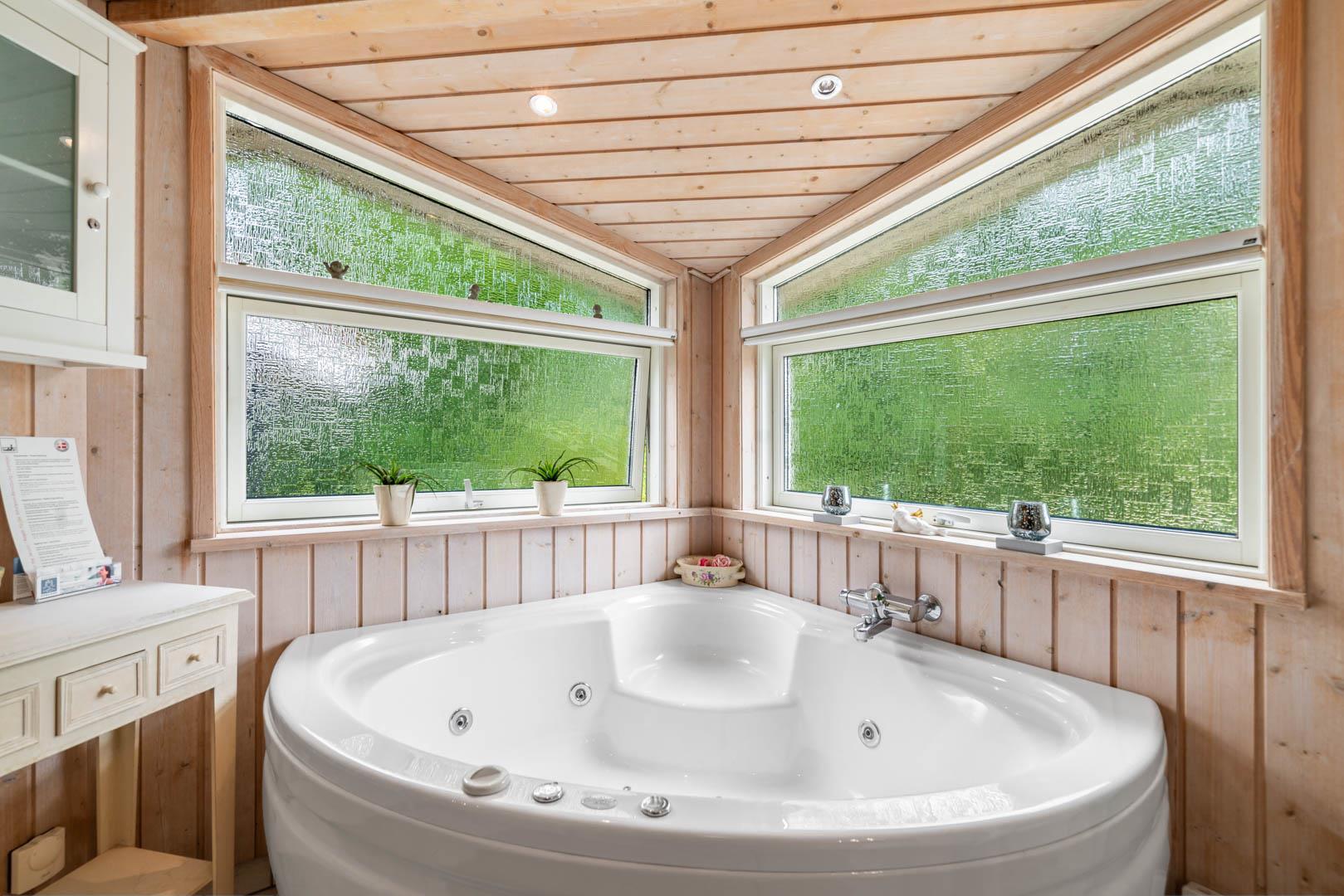 Dette røgfri sommerhus på 84 m² i Jegum Ferieland byder på alt, hvad I behøver for en afslappende ferie i Danmark – med både spa, sauna, brændeovn og lukket terrasse.