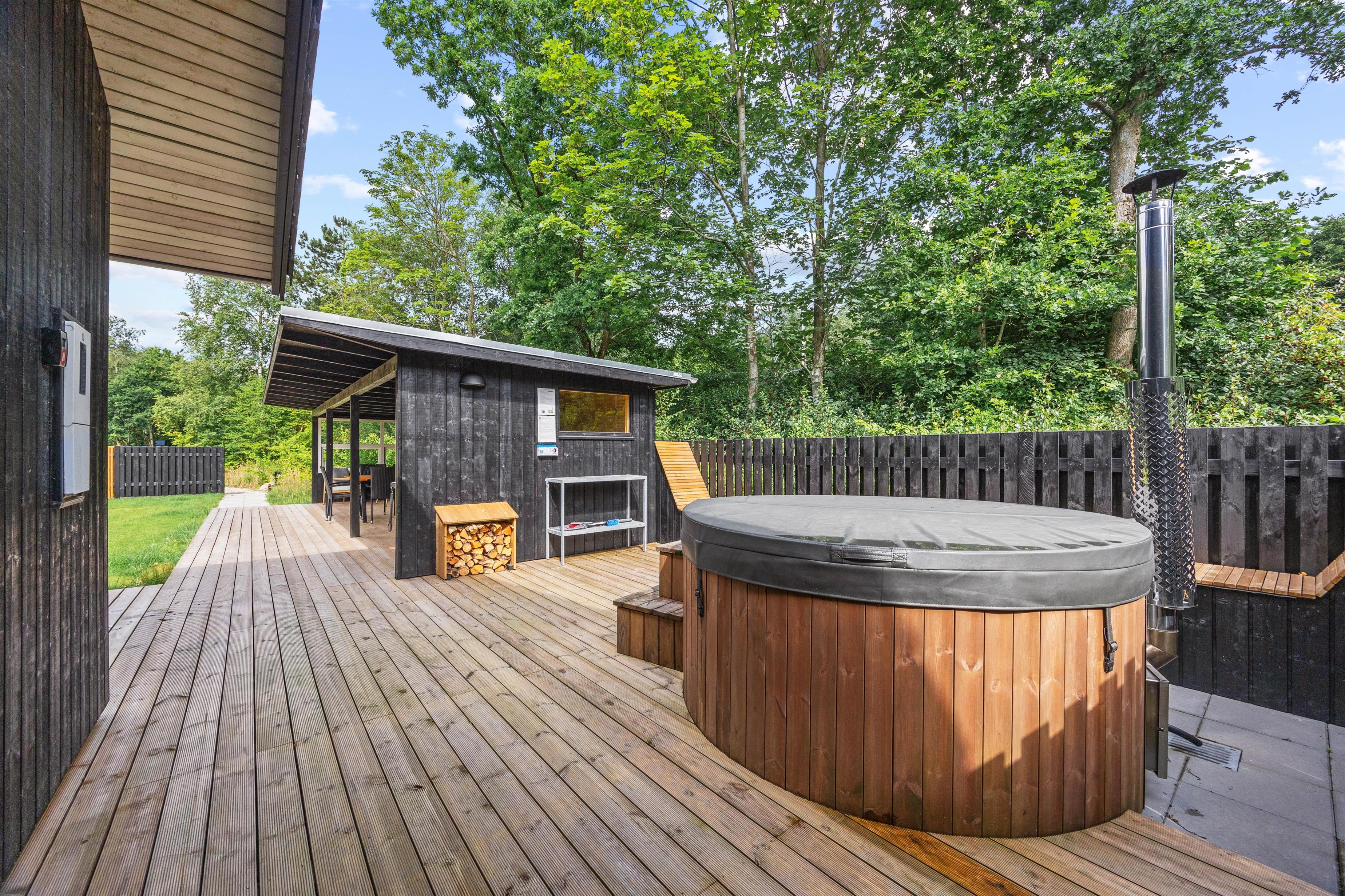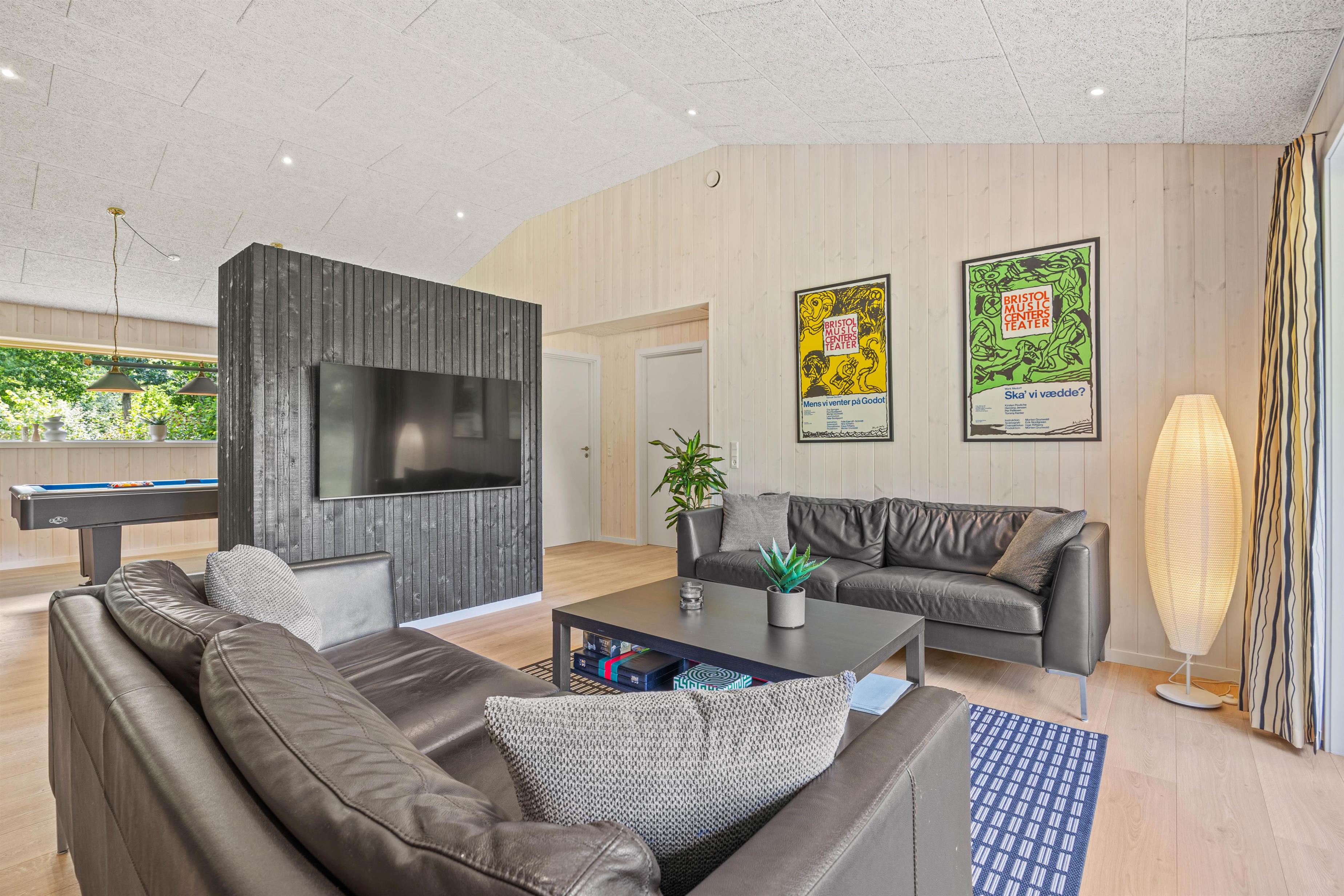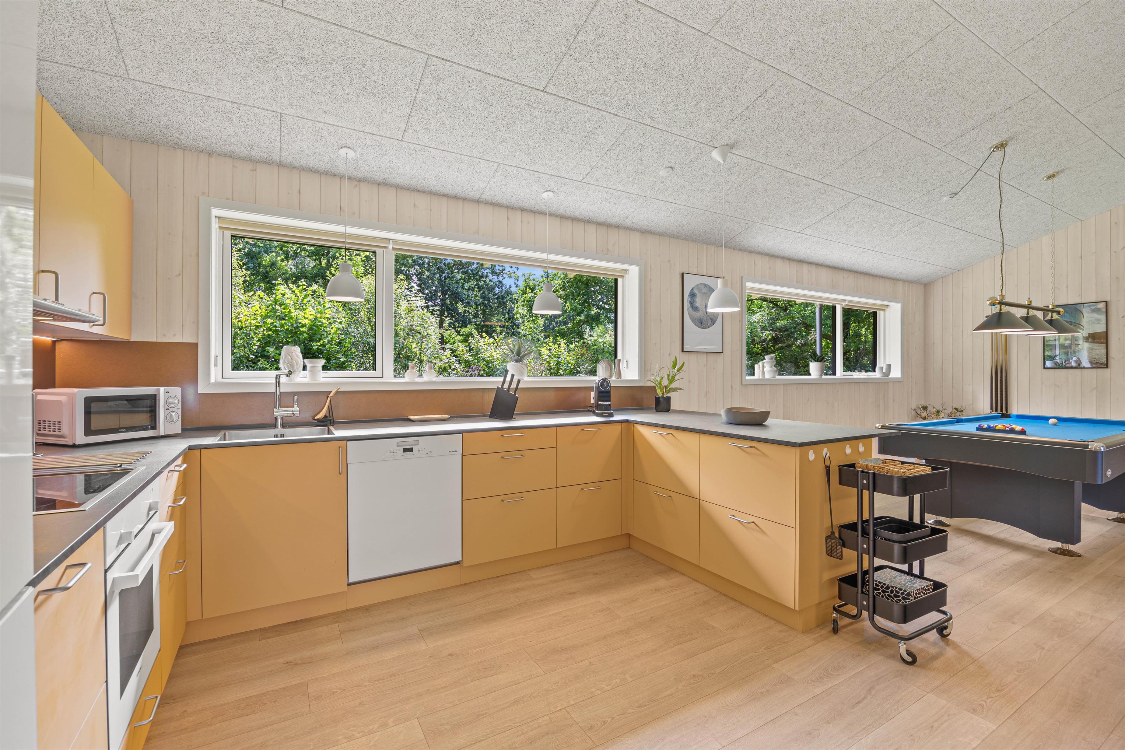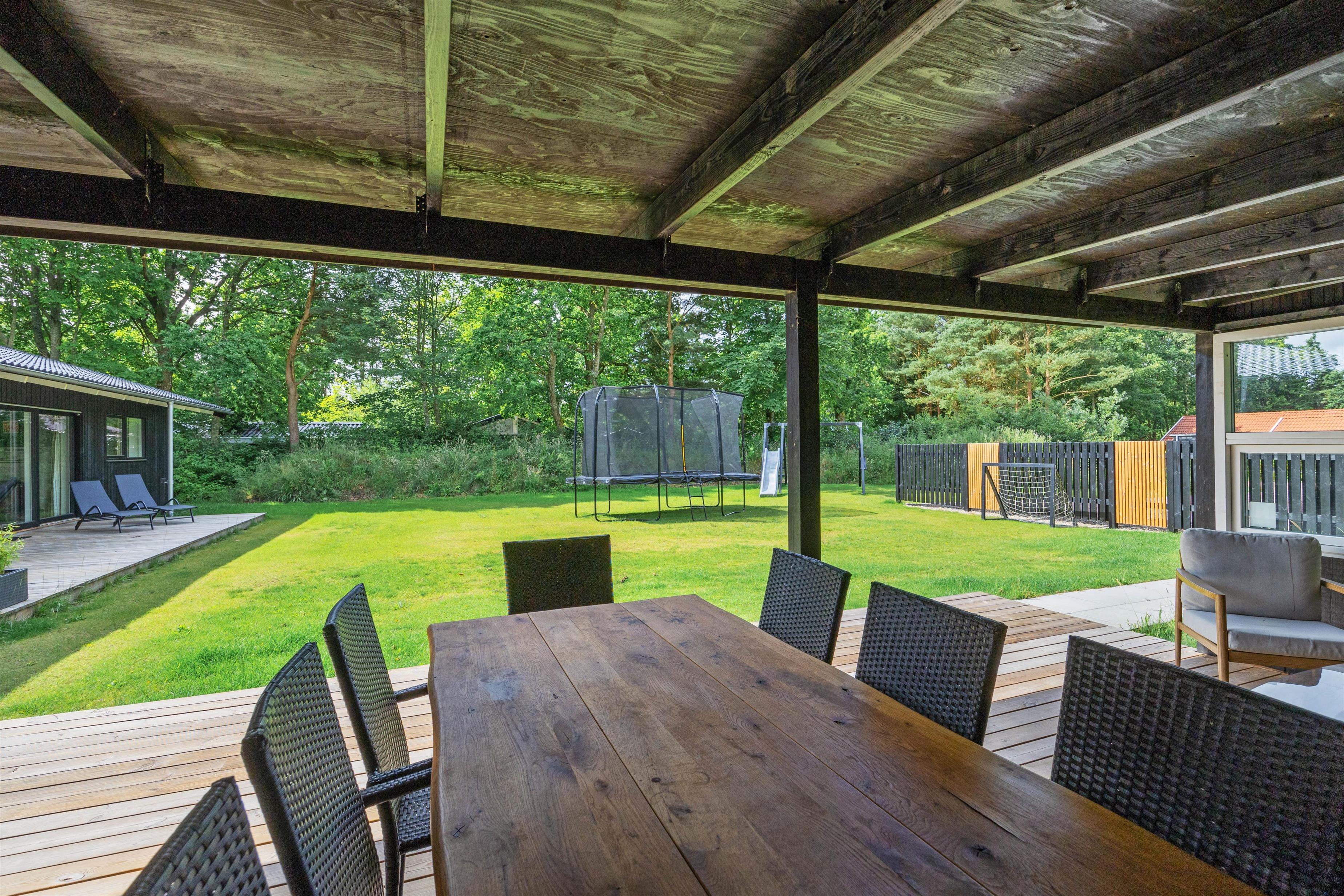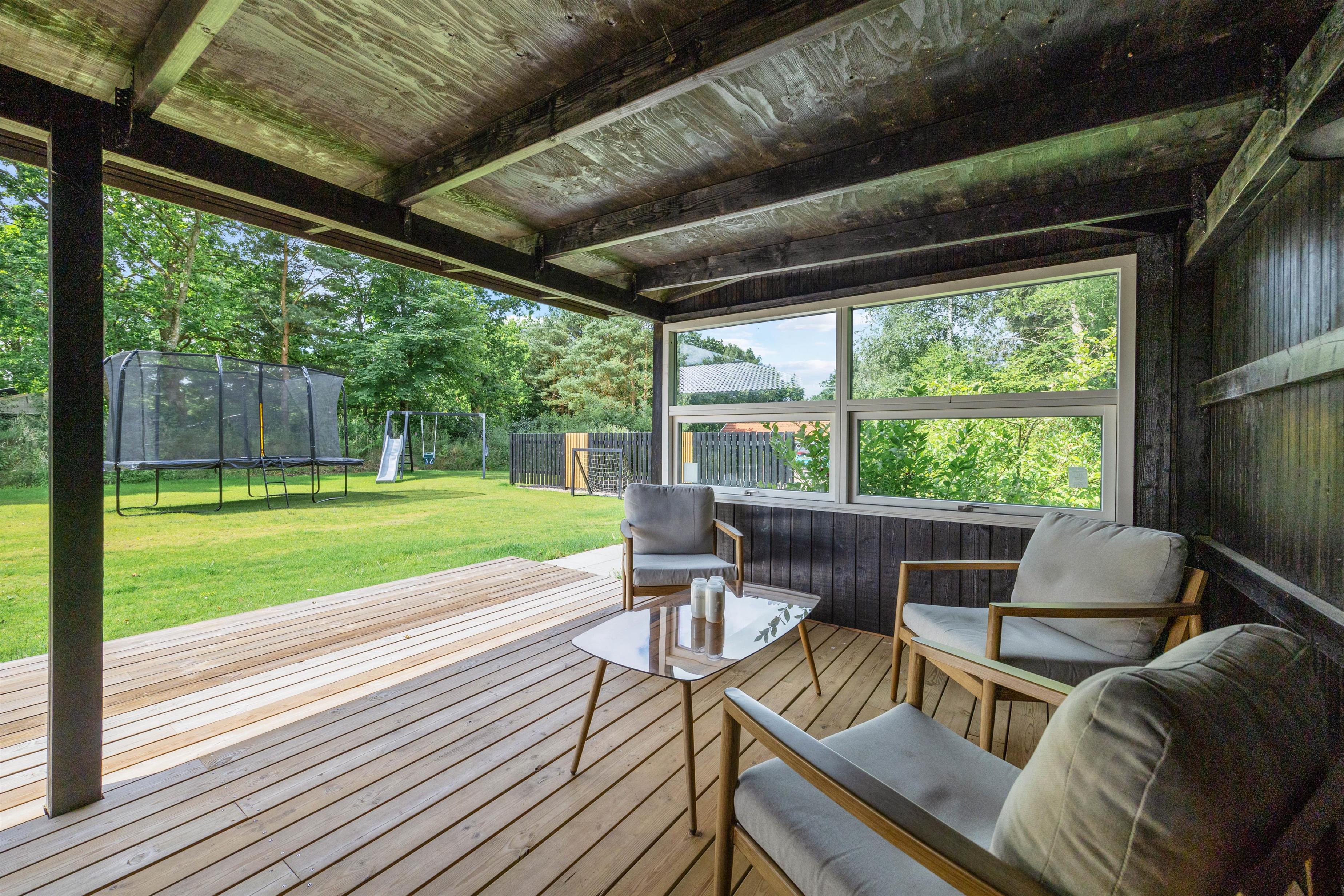 Sommerhuset er et aktivitetshus, fyldt med muligheder for underholdning for både børn og voksne. Prøv kræfter med et spil poolbillard, der inviterer til timevis af sjov og konkurrence. Udendørs er her en gynge, som sikkert vil være til glæde for børnene, mens trampolinen sørger for mange timers leg og latter. For de voksne kan den overdækkede terrasse med havemøbler danne ramme om hyggelige aftener. Det skønne vildmarksbad og den indbydende sauna tilbyder velværeoplevelser i særklasse, perfekte til afslapning og nærvær efter en dag fyldt med eventyr.