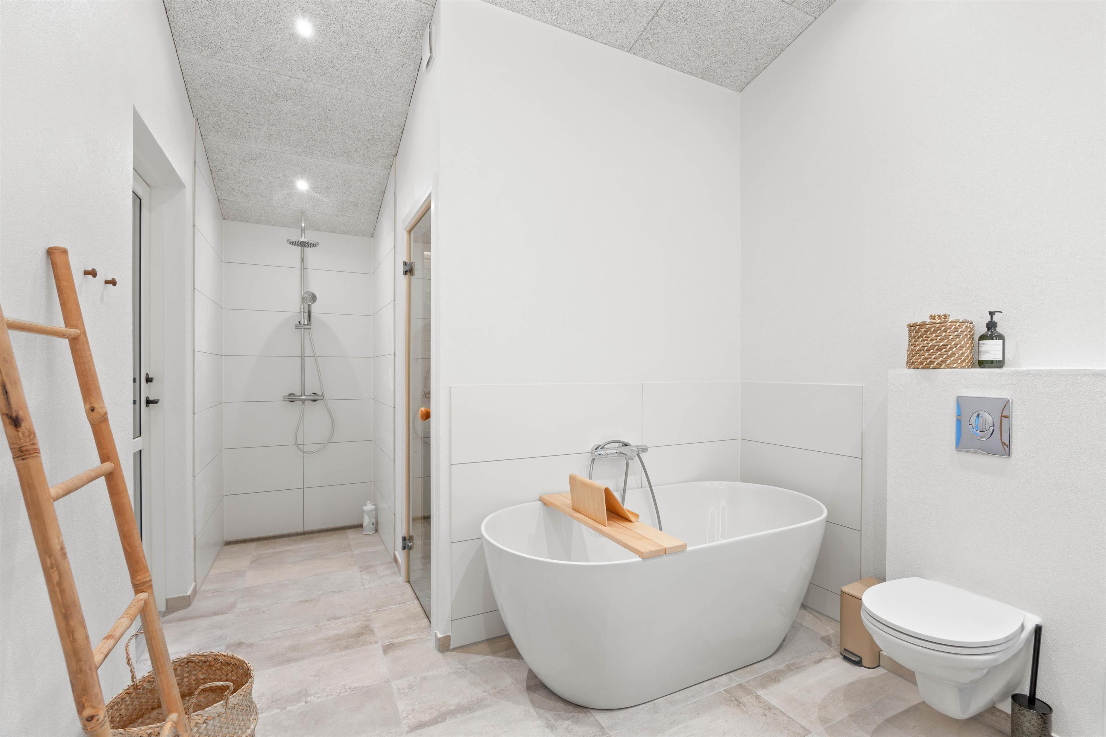 Bevæger man sig videre fra køkkenalrummet, åbner det store aktivitetsrum sig med et indbydende billardbord, som sikrer, at der altid er god underholdning til aftenerne. Skal der flere spil til, kan billardbordet forvandles til et bordtennis bord og spilleaftner kan fortsætte med samme spædning igennem hele opholdet. Egelounden 28 emmer af god stil og en sans for deltajerne - køkkenet er malet i stilrene farver og møblerne er nøje udvalgt for at sikre at opholdet i lige netop dette sommerhus bliver så skønt som muligt.