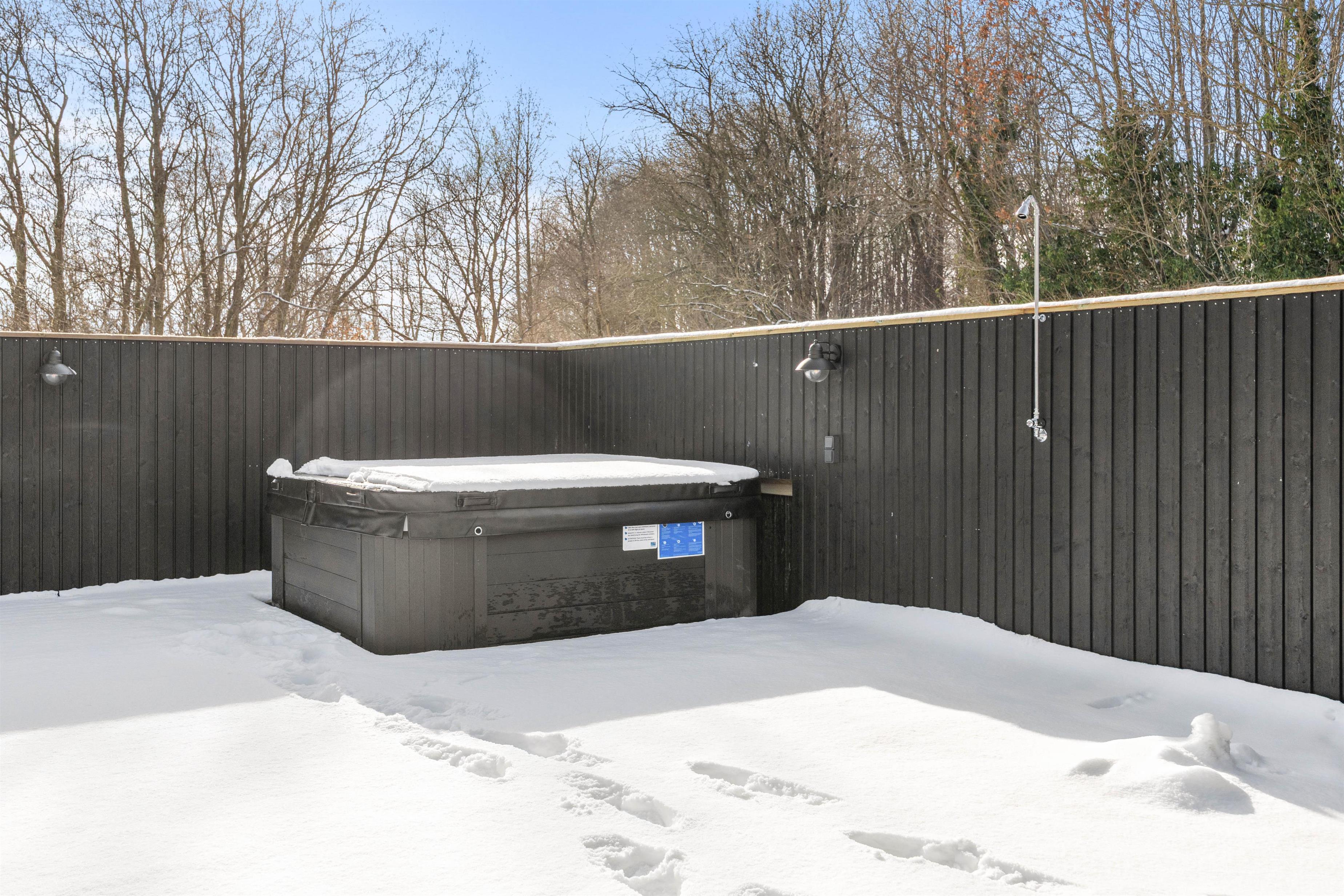 For den fuldendte wellnessoplevelse byder udeområdet på en luksuriøs udespa med plads til 7 personer samt en indbydende udesauna. Efter en dukkert i havet eller en varm sauna kan I skylles af under den praktiske udebruser, som er tilgængelig fra april til november. Tilmed er der et ladestik til elbil, så I kan lade bilen op direkte ved sommerhuset.
