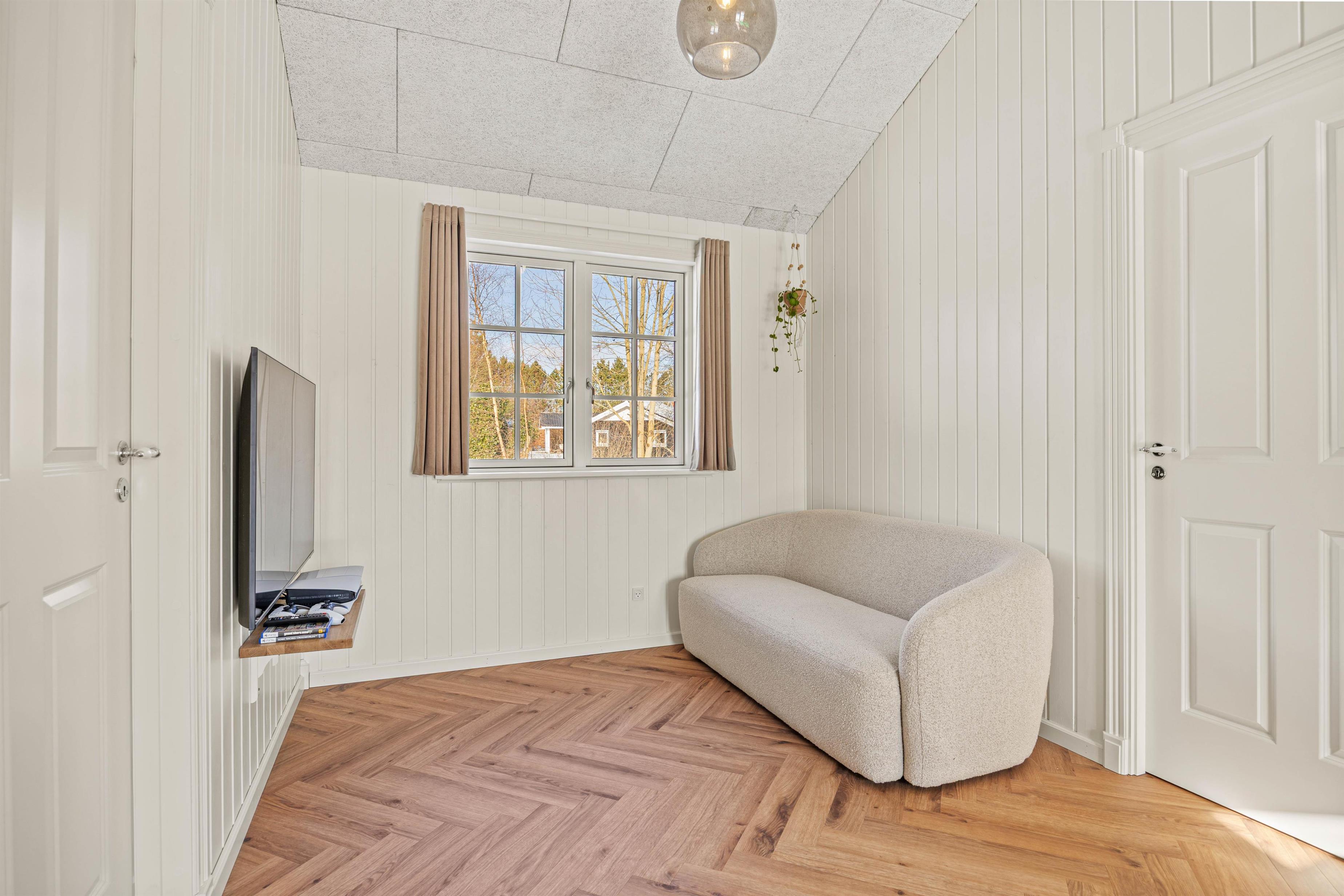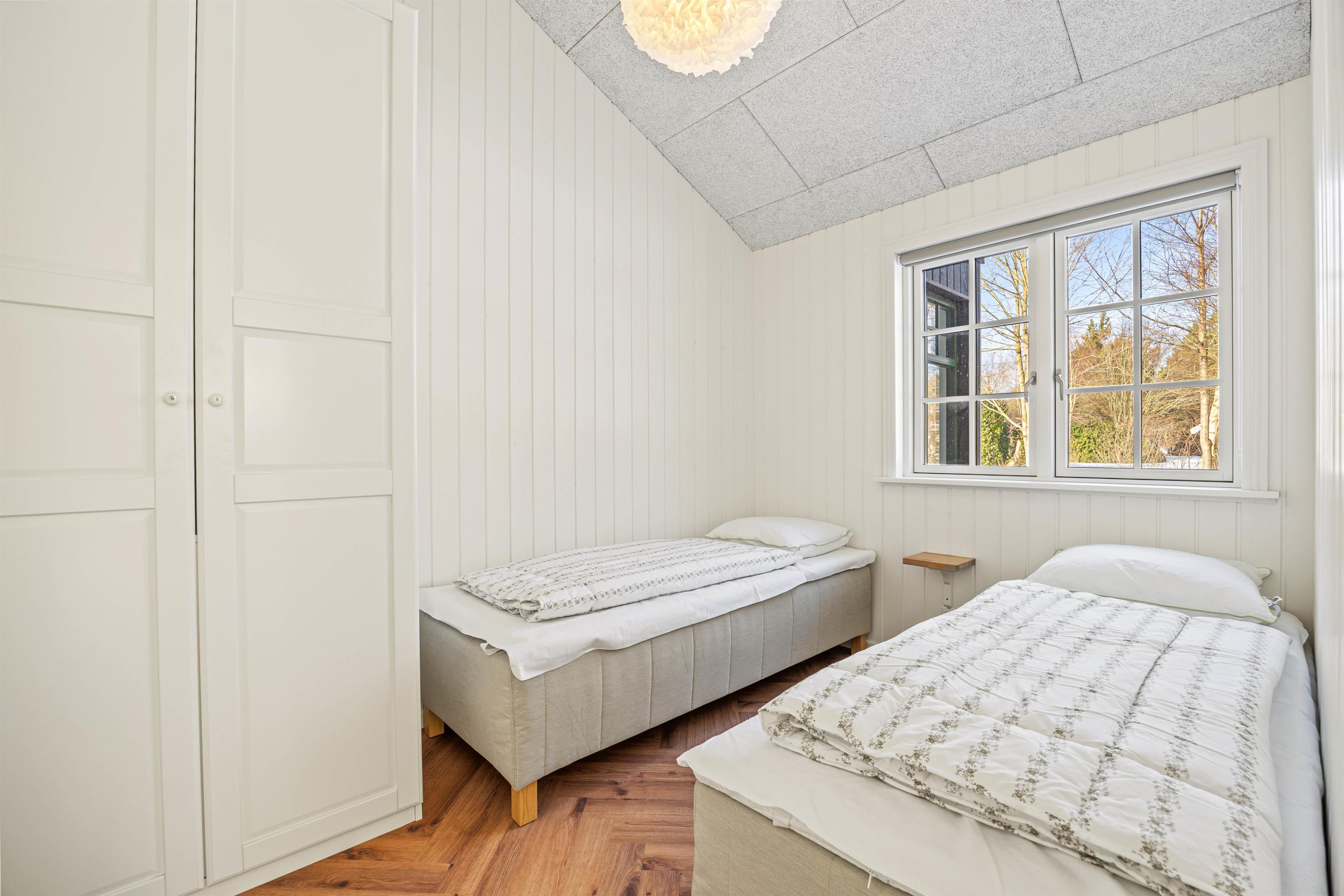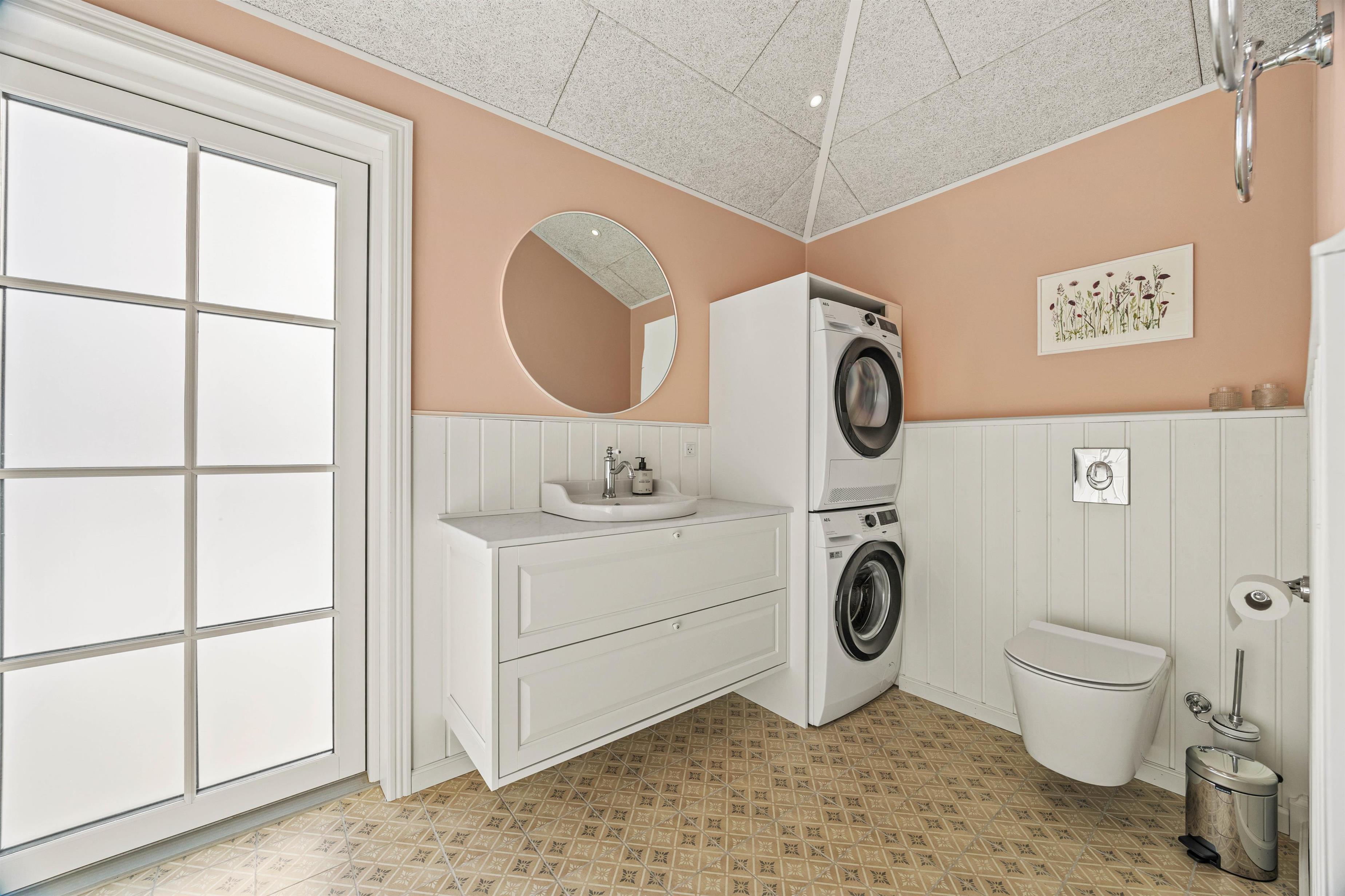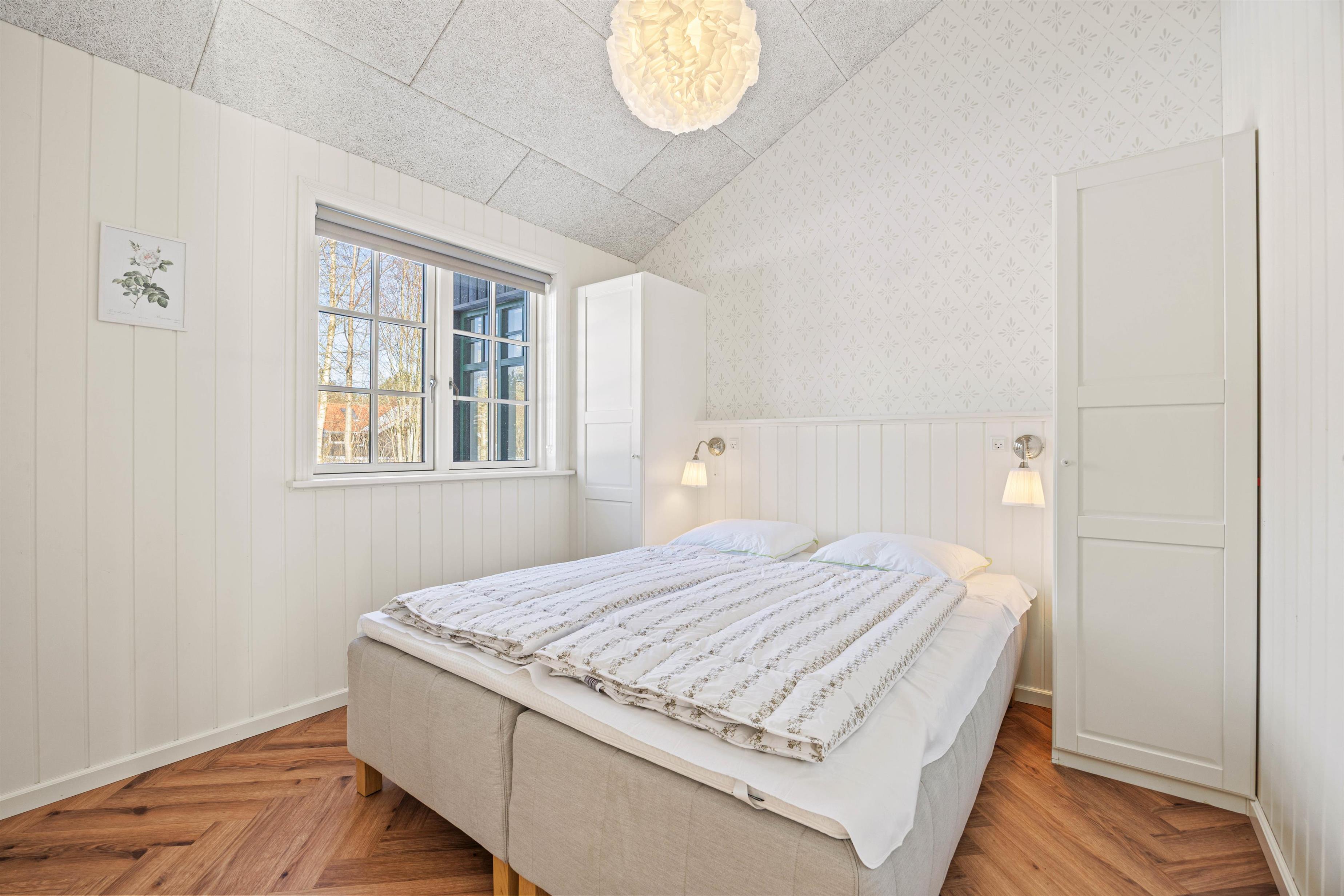 På jeres vej gennem sommerhuset finder I også både vaskemaskine og tørretumbler, så de praktiske gøremål let kan passes ind mellem ferieglæderne. De 2 badeværelser, begge med gulvvarme, skaber en atmosfære af komfort og velvære. Og med 8 sovepladser fordelt på 4 rummelige soveværelser er der rigelig plads til, at alle kan trække sig tilbage og nyde en rolig nats søvn efter dagens oplevelser.