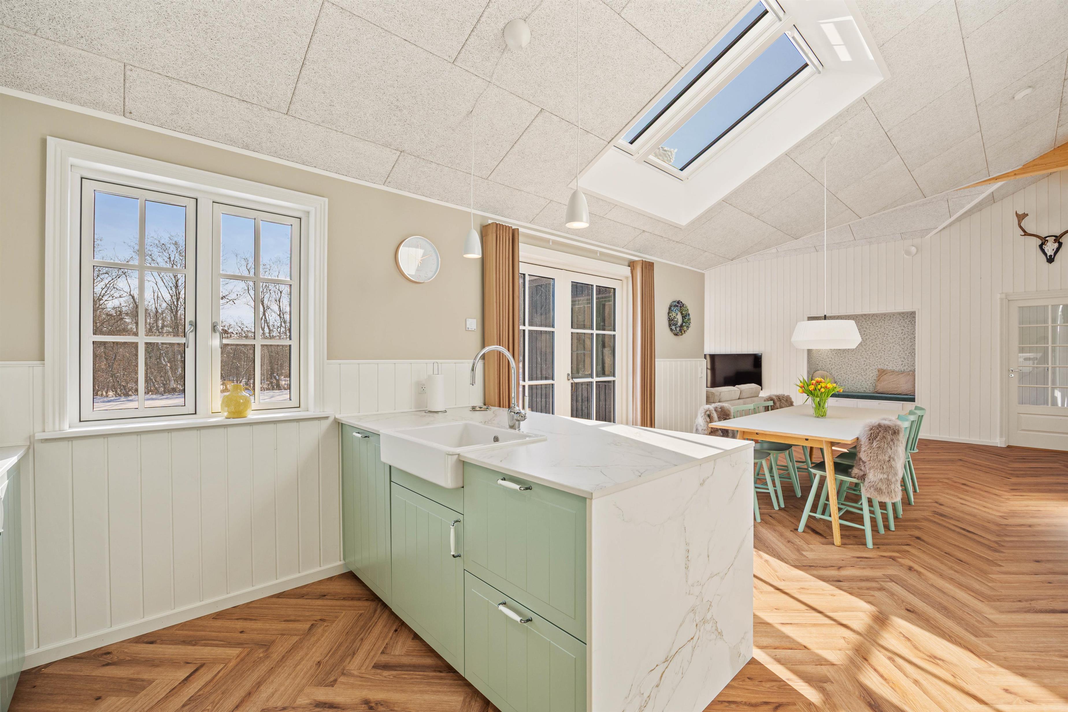 Når I træder ind i det veludstyrede sommerhus, bliver I straks mødt af en indretning, der indbyder til hyggelige stunder, leg og afslapning. I aktivitetsrummet kan familien samles om et spil bordtennis eller poolbillard – oplagt til både små konkurrencer og latterfyldte øjeblikke. Sommerhusets samtalevenlige køkken gør madlavningen til en fornøjelse, og med opvaskemaskinen klares oprydningen hurtigt og nemt.
