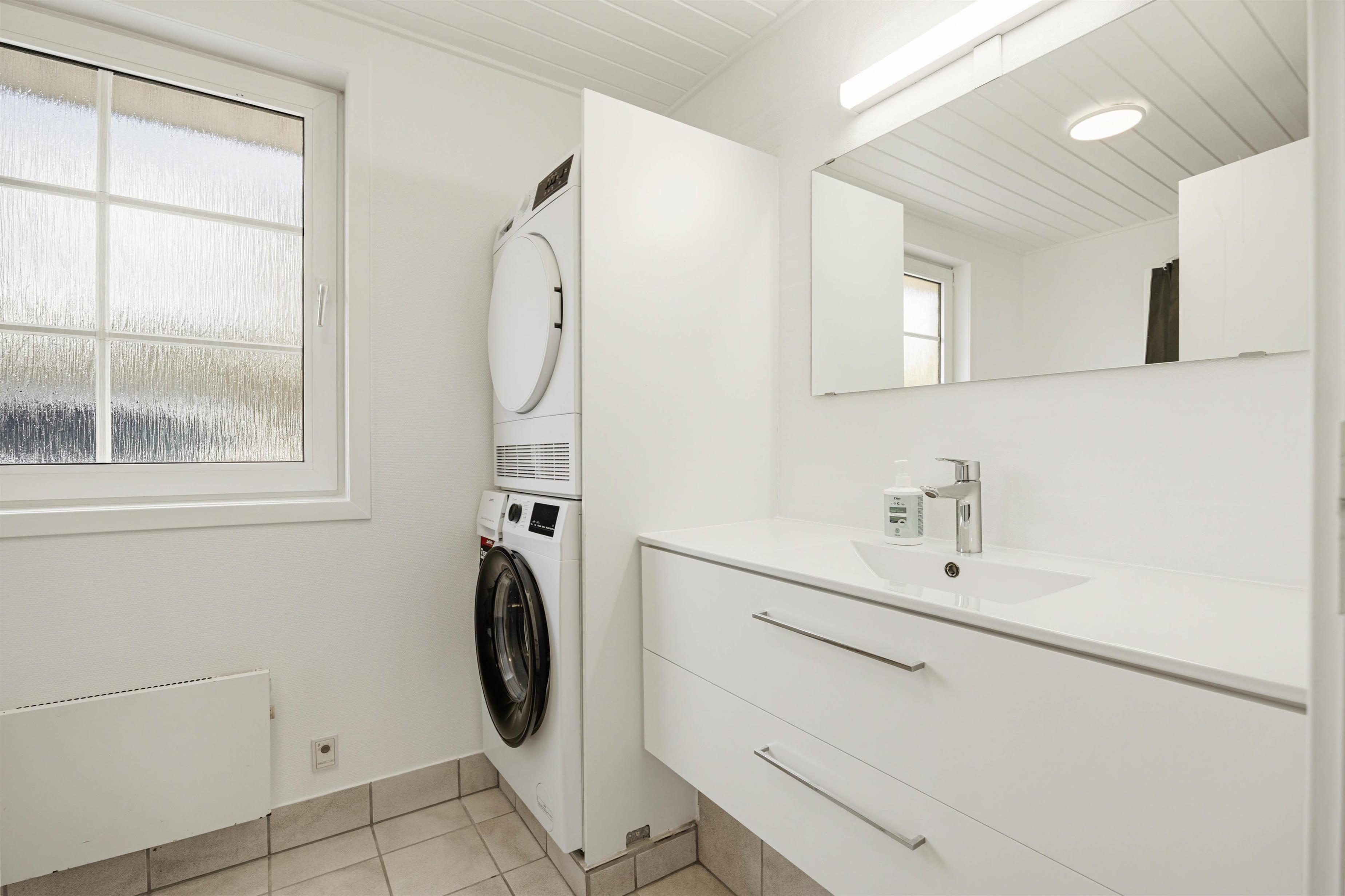 For at holde energiomkostningerne nede, finder I både en varmepumpe i opholdsrummet samt en til drift af poolen. Praktisk er feriehuset også udstyret med vaskemaskine og tørretumbler, så I altid kan opfriske håndklæderne eller ordne lidt vasketøj undervejs. Til familiens mindste er her også allerede en højstol.