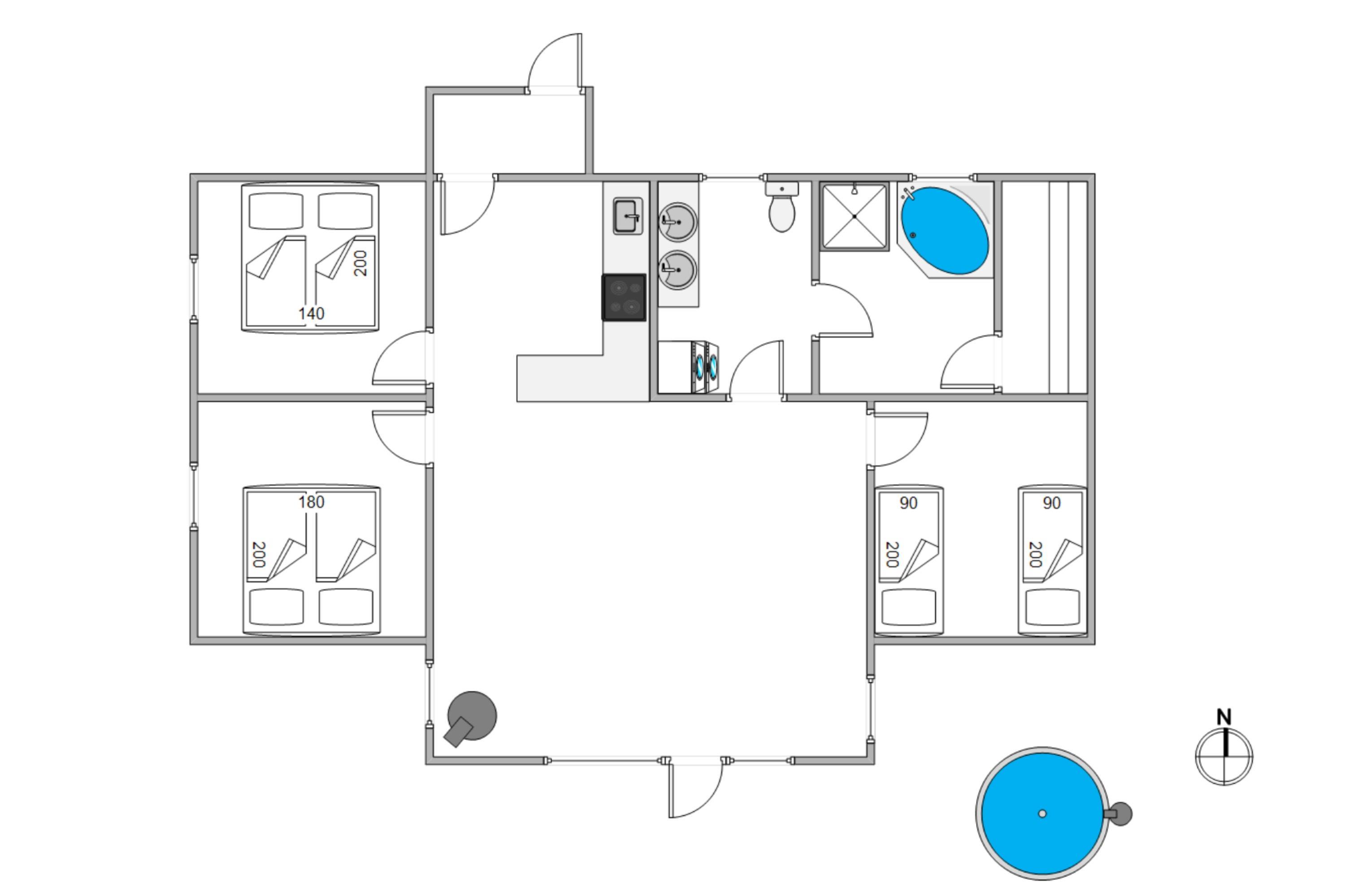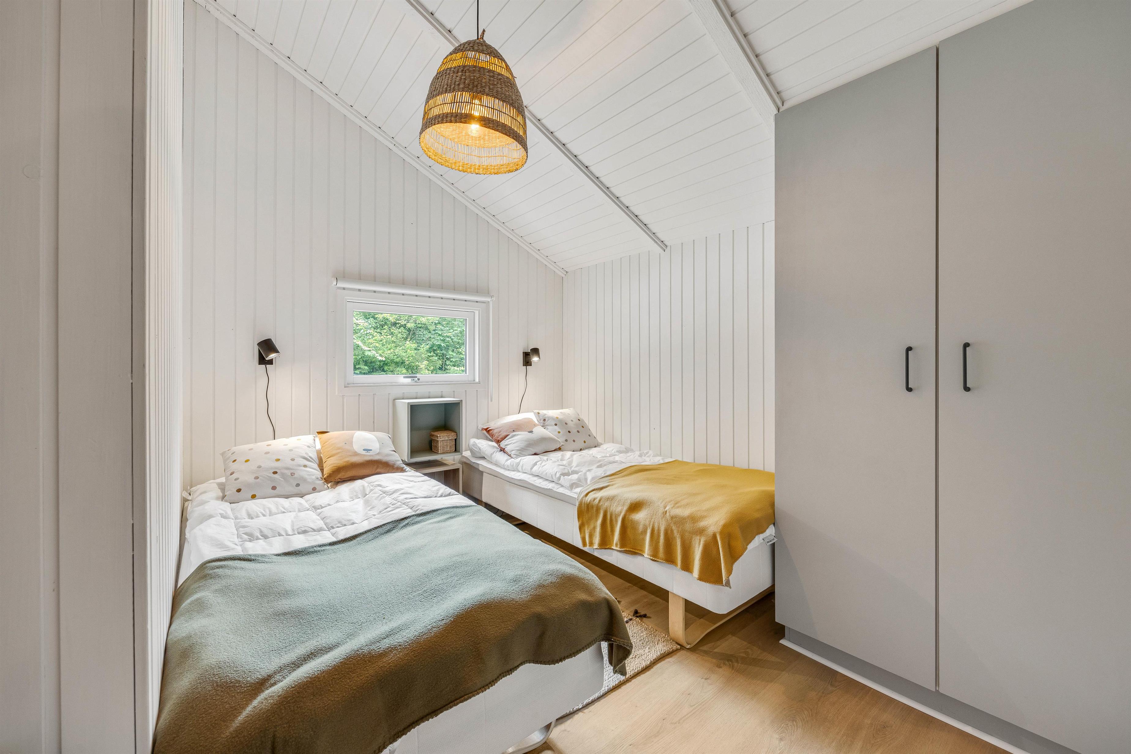 Det 87 kvadratmeter store sommerhus byder desuden på et badeværelse med gulvvarme samt 3 soveværelser. 2 af sommerhusets soveværelser er indrettet med en dobbeltseng hver, mens det tredje soveværelse er indrettet med 2 enkeltsenge.