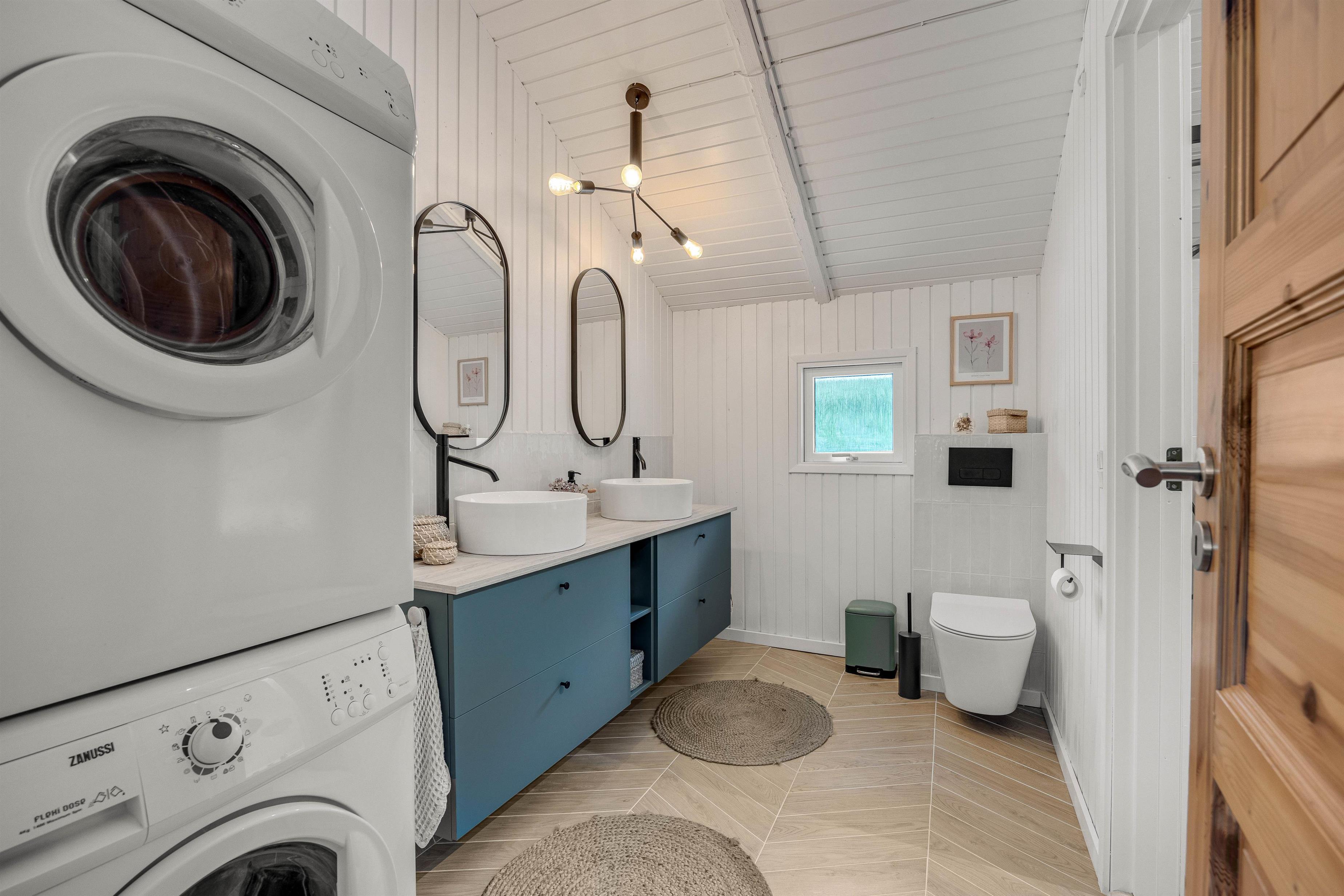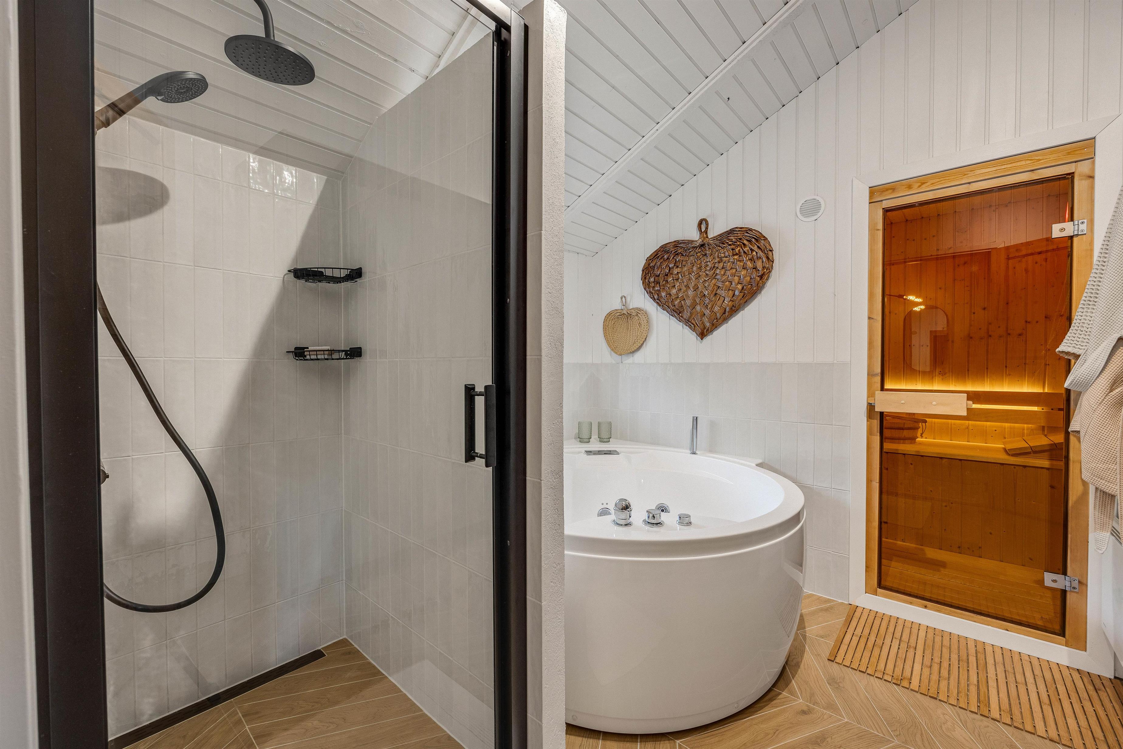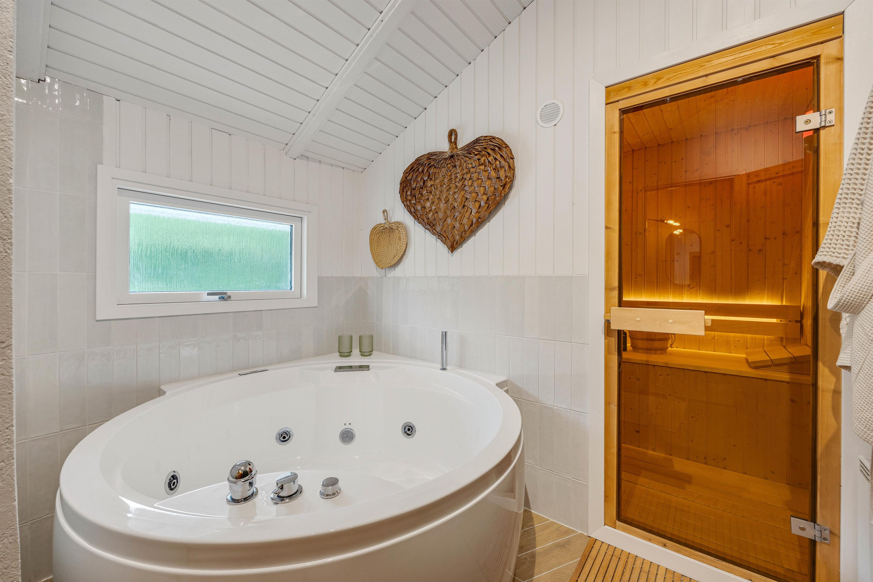 På sommerhusets badeværelse står den skønne spa klar til at forkæle jer med afslappende stunder i det dejlige, boblende vand. Desuden byder sommerhuset på en skøn sauna, hvor I kan blive varmet godt igennem. Har I været på en frisk gåtur i området eller været en tur i Vesterhavet, er det skønt med en efterfølgende tur i saunaen, så I kan få varmen igen.