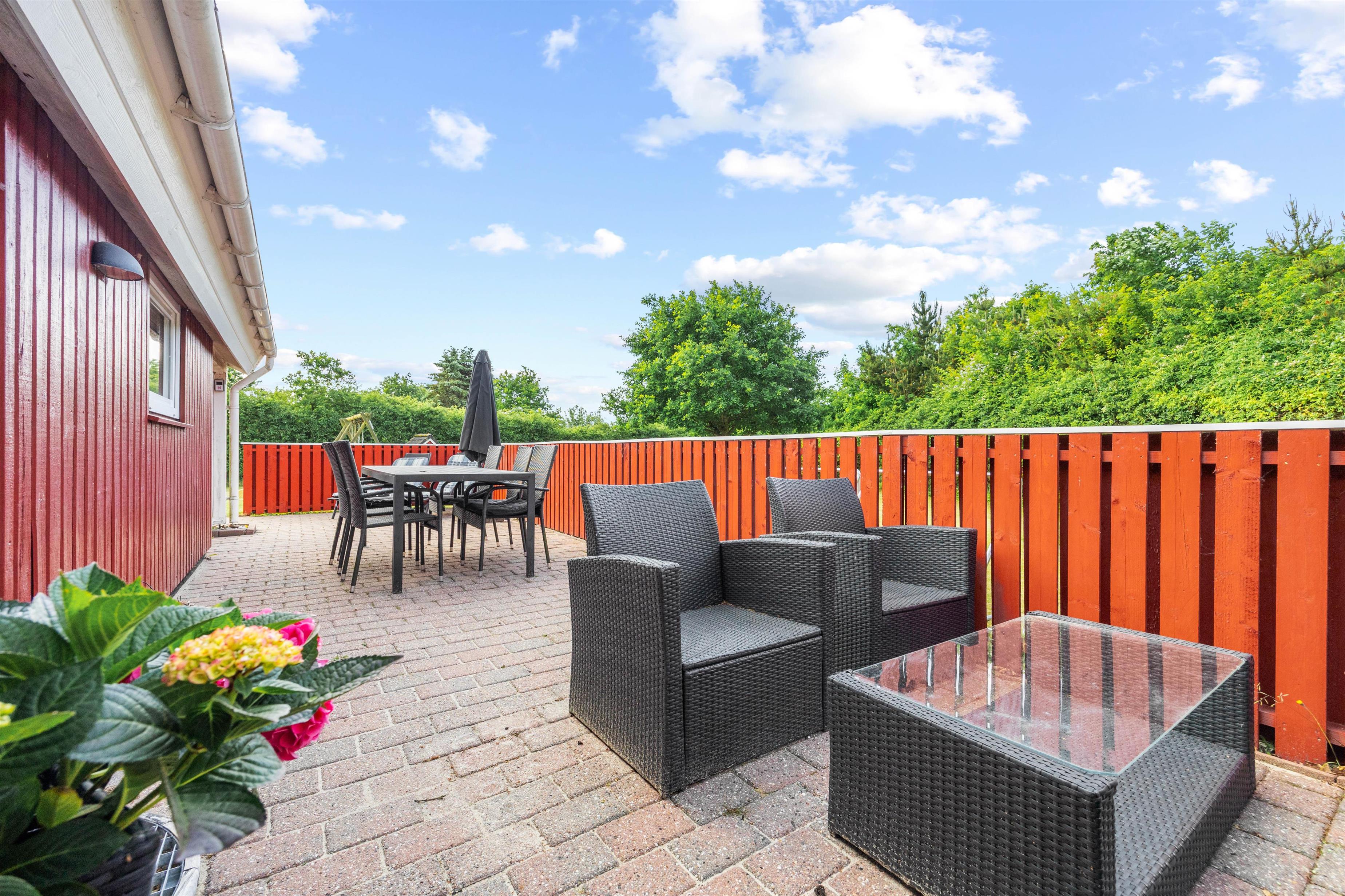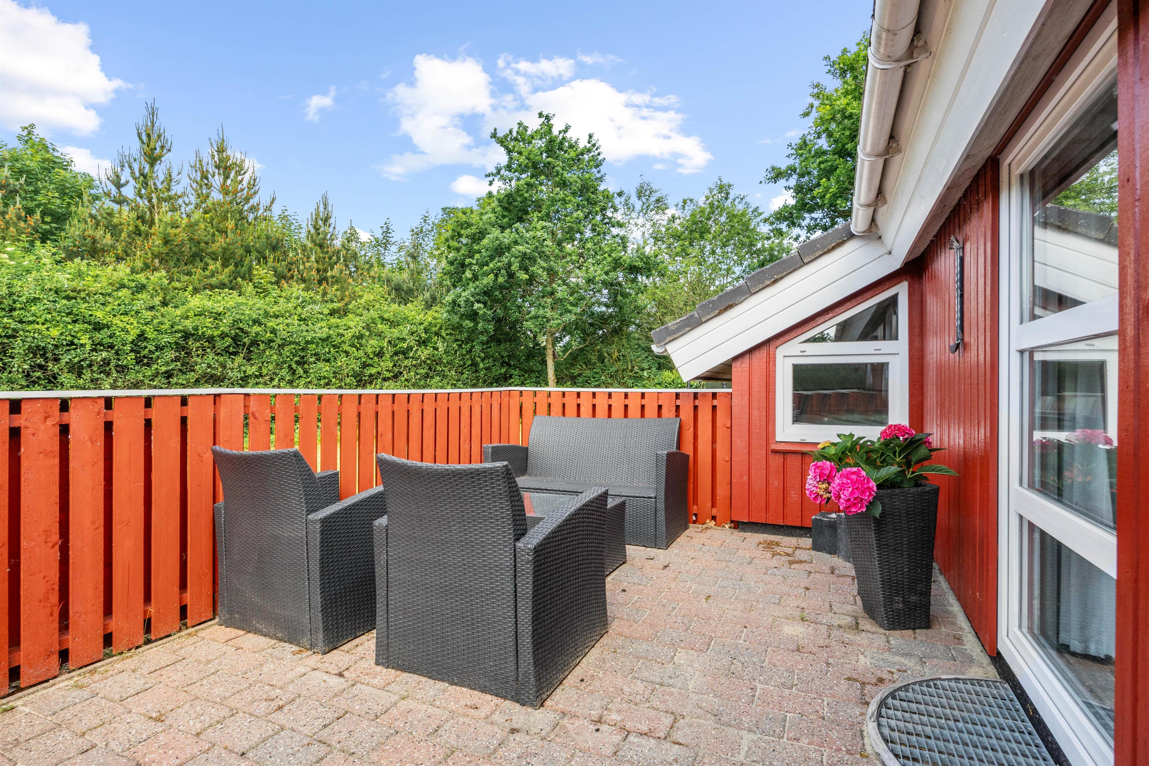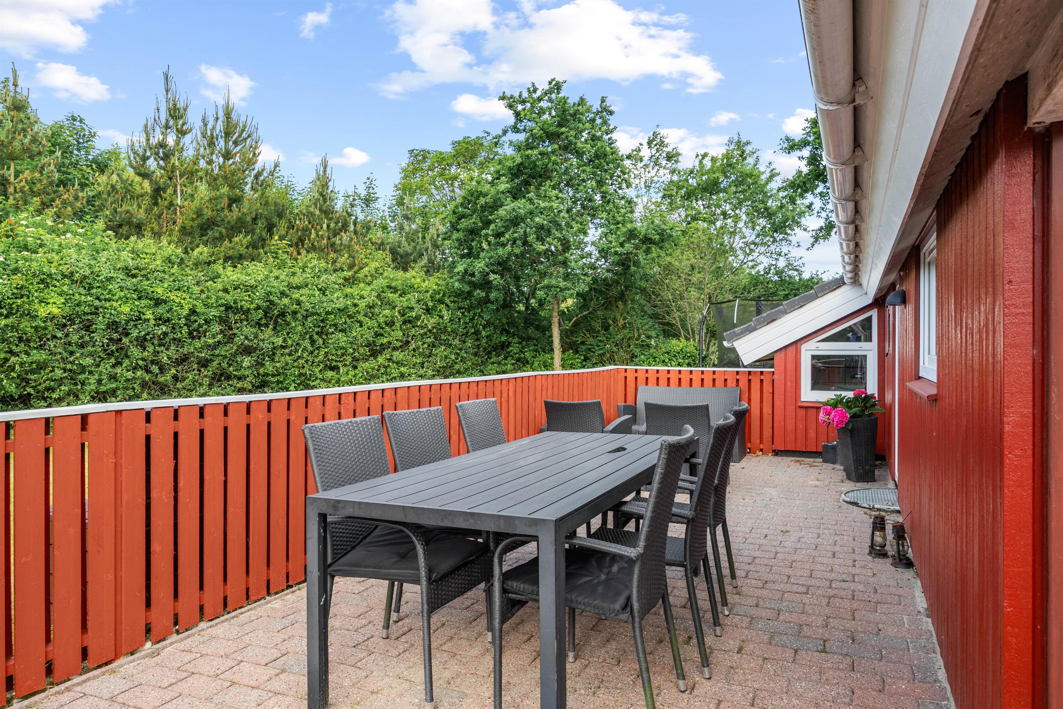 Udover indendørs komfort tilbyder sommerhuset fantastiske muligheder for udendørs aktiviteter. Sommerhuset ligger på en 1827m2 stor indhegnet grund, der er perfekt til at nyde det fri. Børnene kan more sig, da her både er gynge og trampolin, mens resten af familien nyder afslappende aftener på terrassen, der er udstyret med en grill. Havemøblerne inviterer til både middagsselskaber og stille stunder med en bog eller podcast. Plænegrunden er ideel til spil og leg, og jeres hund er også velkommen, så hele familien kan være samlet. Om aftenen kan I gå til ro shelteren og nyde en overnatning i det fri. Skulle I eje el-bil, er her et praktisk ladestik til rådighed, så I nemt kan oplade bilen under opholdet.