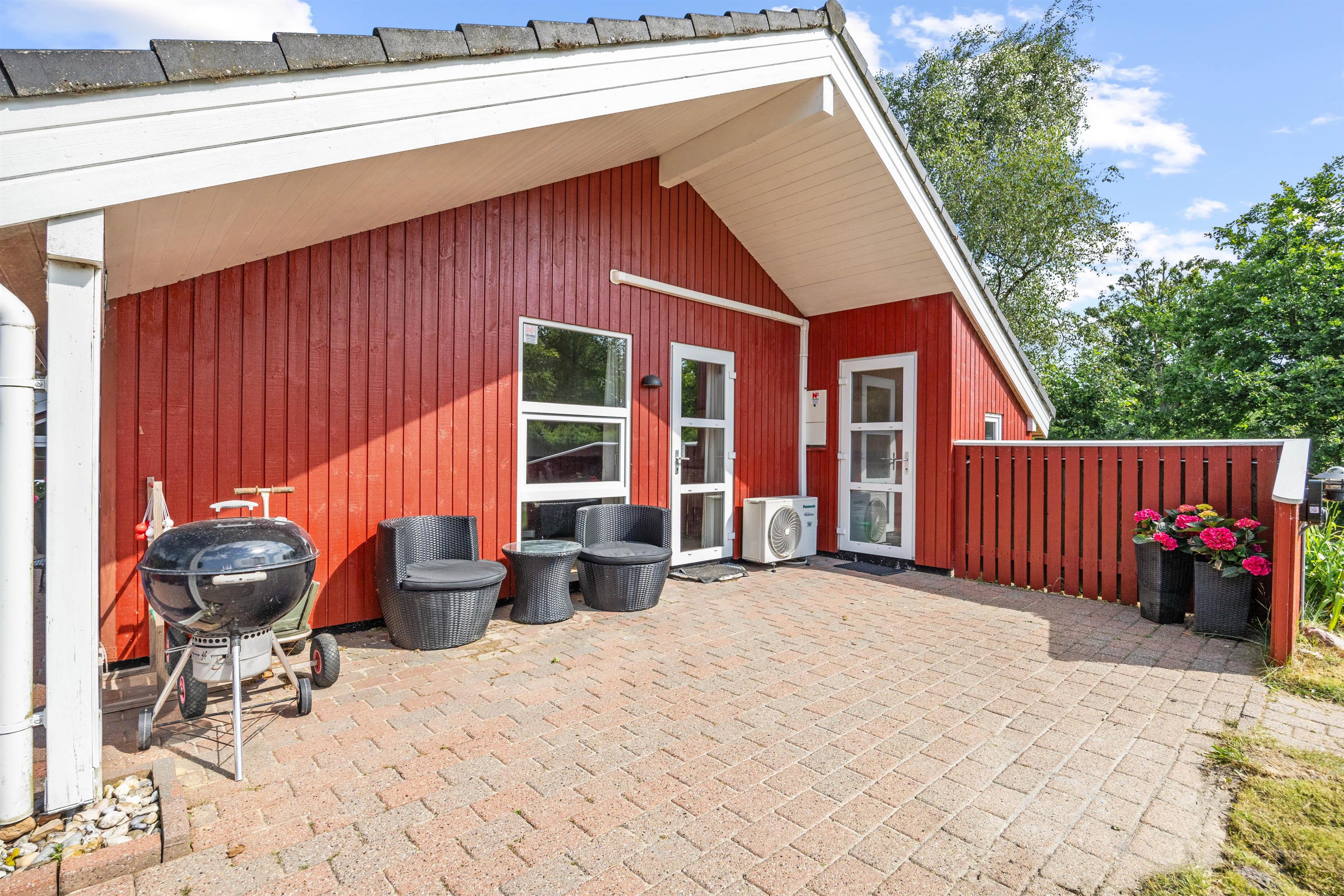 Dette sommerhus er designet med fokus på at kombinere komfort med praktiske løsninger. Indendørs finder I 3 rummelige soveværelser, der skaber de optimale betingelser for en afslappende nattesøvn, så I kan starte hver dag frisk og udhvilet. Køkkenet er godt udstyret, inklusive en opvaskemaskine, der gør det nemt for jer at håndtere de daglige gøremål, uden at skulle bruge unødig tid på rengøring. I den hyggelige stue, der er udstyret med en brændeovn og en effektiv luft-til-luft varmepumpe, kan du slappe af og nyde varmen uanset årstiden.