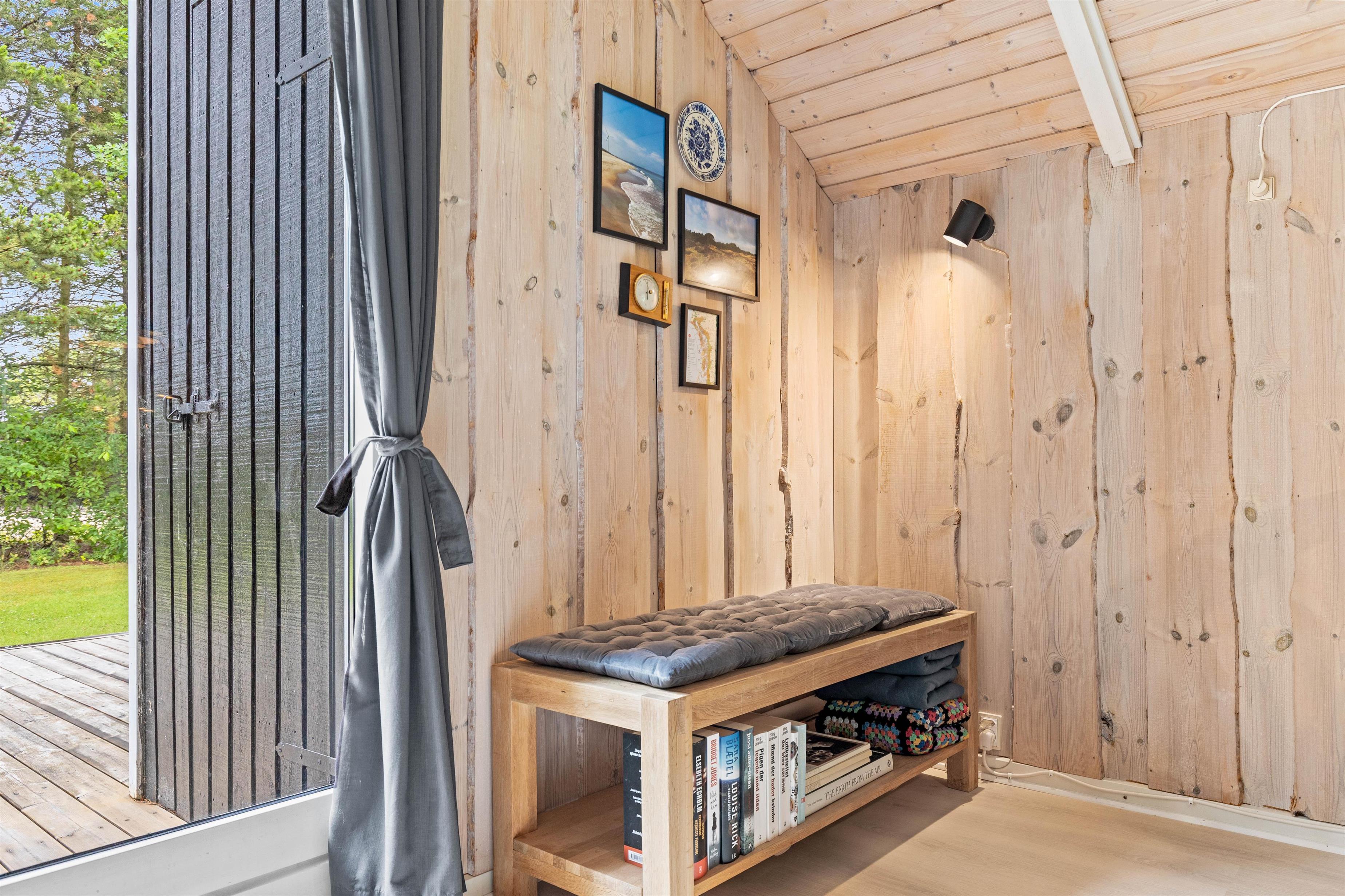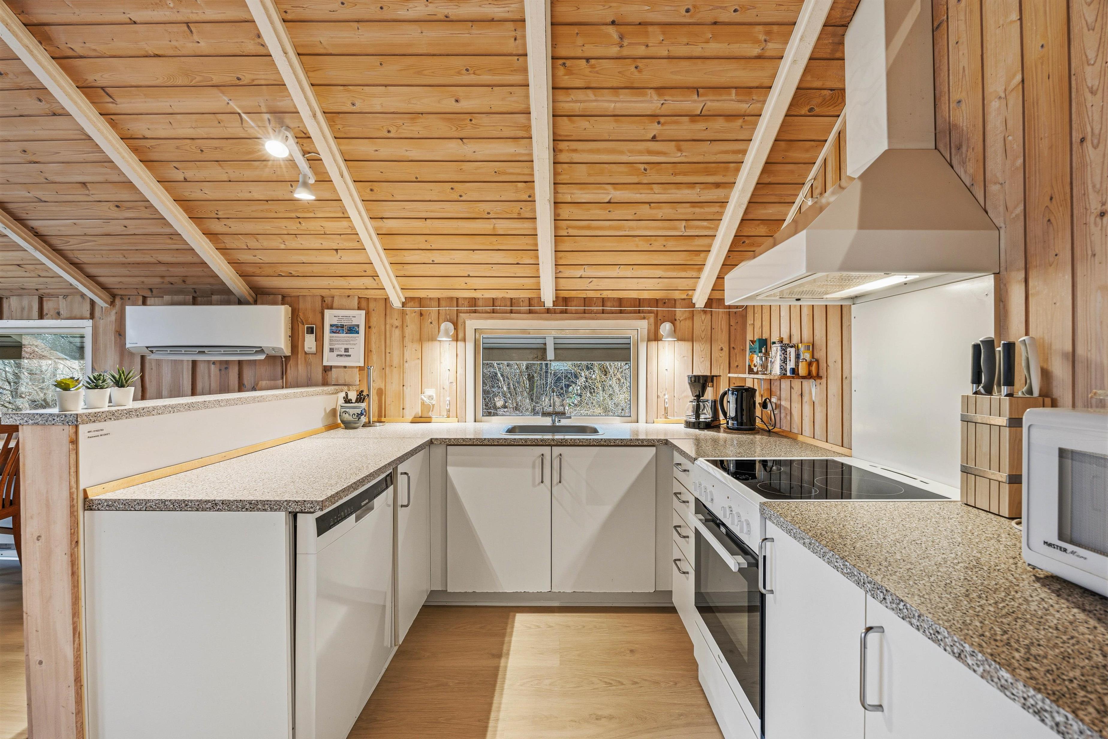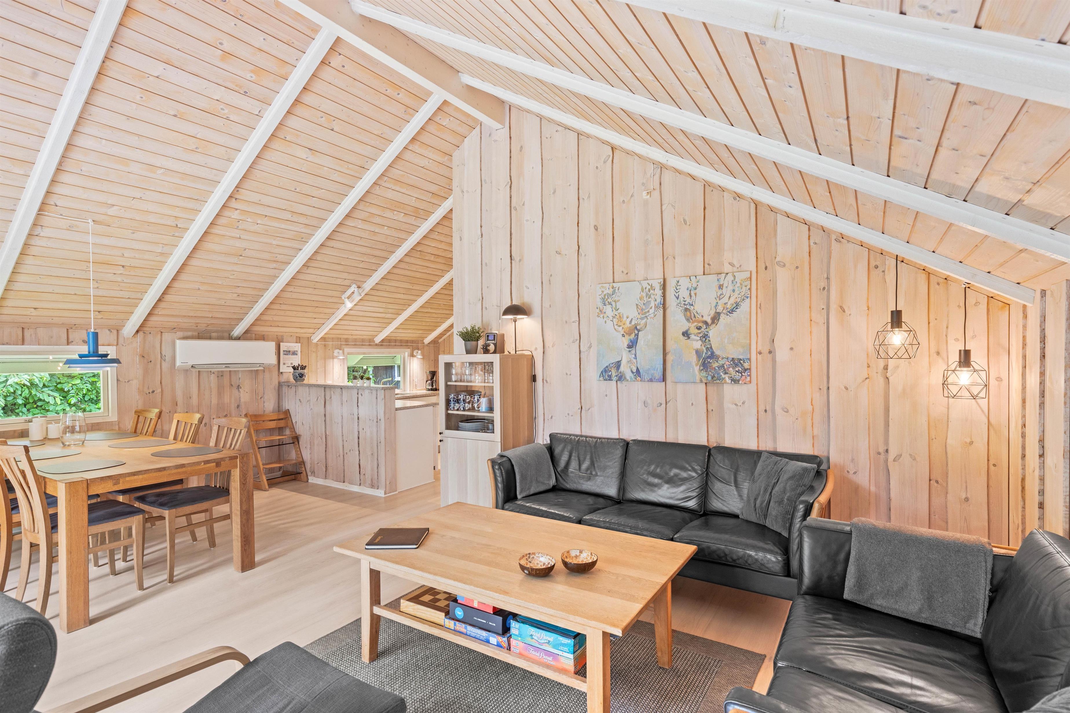 Sommerhuset er smagfuldt indrettet med lyse træpaneler i både opholdsrummene og soveværelserne, hvilket giver en varm og hyggelig atmosfære. Feriehuset byder på to komfortable soveværelser begge indrettet med dobbeltseng.