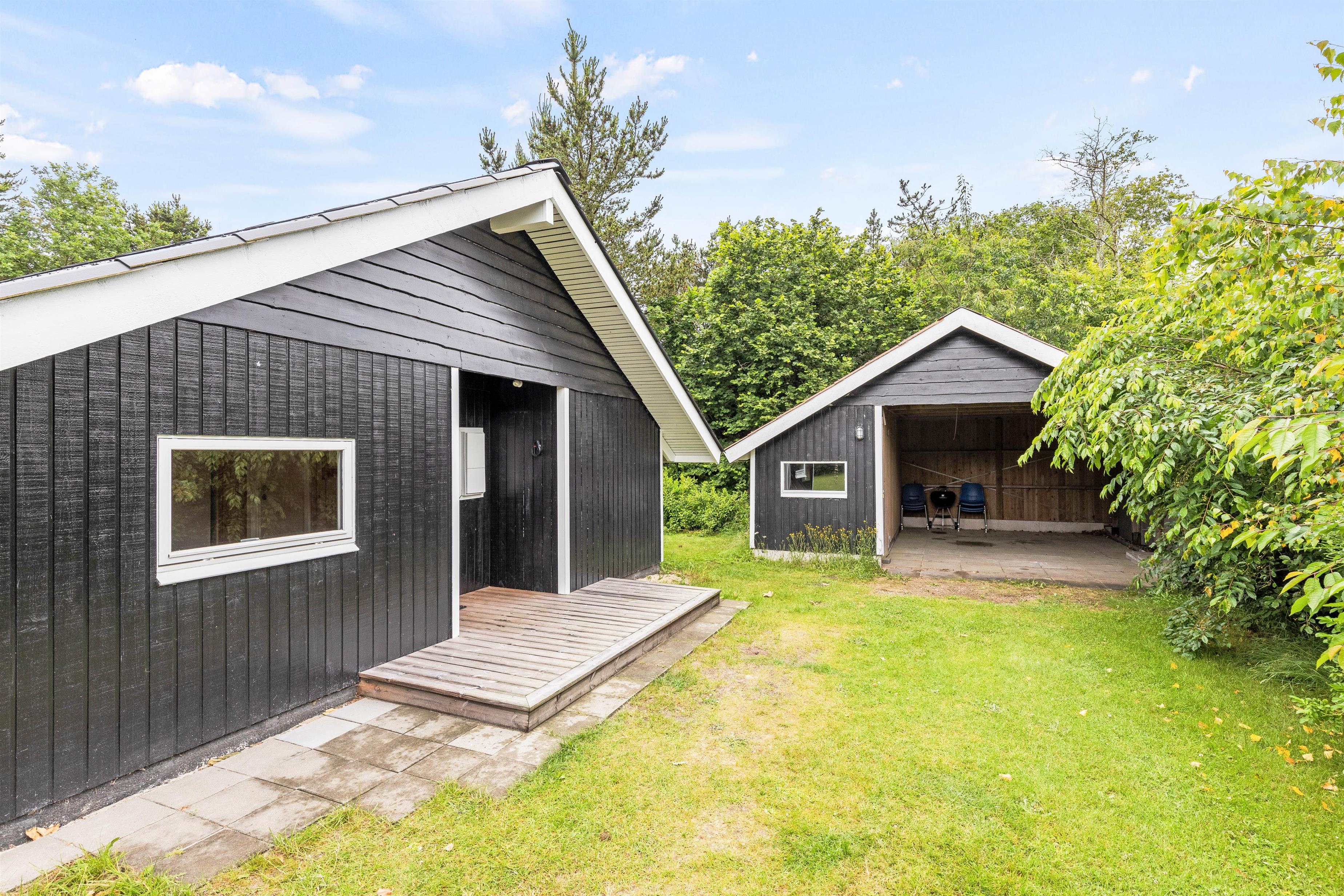 Fra stuen kan I træde ud på den delvist overdækkede terrasse, som er perfekt til hyggelige øjeblikke uanset vejret. Her finder I komfortable havemøbler og en grill, der lægger op til dejlige grillaftener med familien. Tag plads på solvognene og lad solen varme jer, mens børnene kan lege og spille bold på den 1543 kvadratmeter store plænegrund. Denne rummelige have indbyder til alt fra fodboldkampe til mere rolig leg med de mindste. Når dagens aktiviteter er ovre, kan bilen parkeres sikkert i den tilhørende carport.