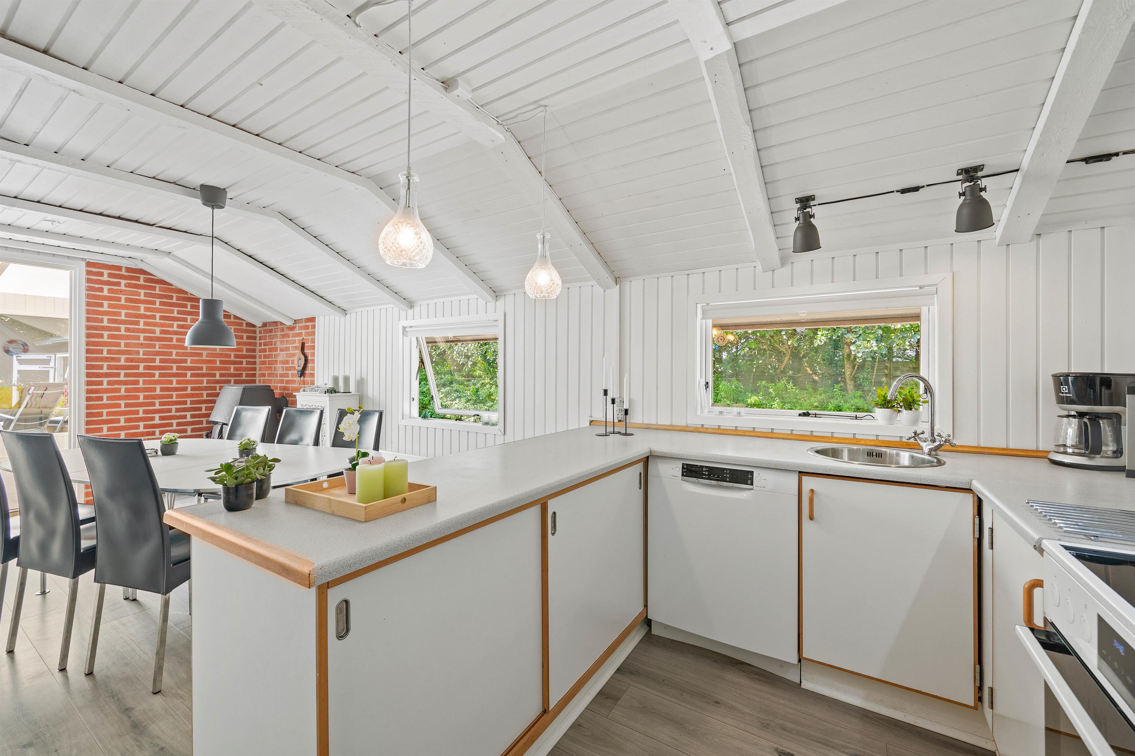 Indendørs finder I et veludstyret køkken med opvaskemaskine, som gør det let at tage sig af oprydning efter måltiderne og sikre mere tid til afslapning og hygge.