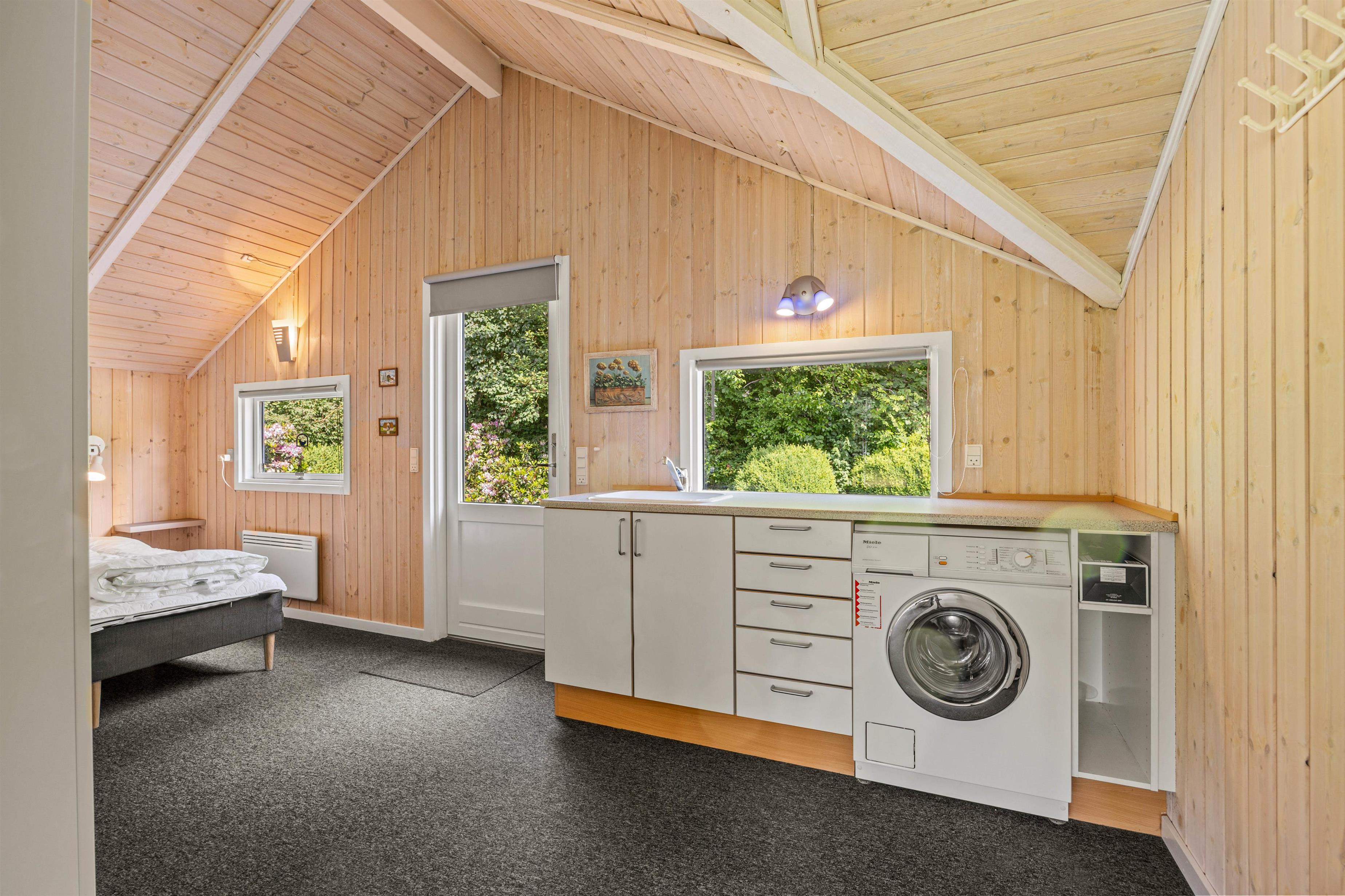 Med både et gæstetoilet og et badeværelse mindskes kødannelsen til toilettet og her har I endda et badekar, hvilket er til stor fornøjelse for både store og små. I køkkenet er der en opvaskemaskine, der gør oprydningen til en leg, og ligeledes har I adgang til en praktisk vaskemaskine, så der ikke er nogle, der løber tør for rent tøj på ferien. Sommerhusets effektive og energivenlige luft-til-luft varmepumpe sikrer et godt indeklima og at temperaturen altid er behagelig, uanset årstiden.