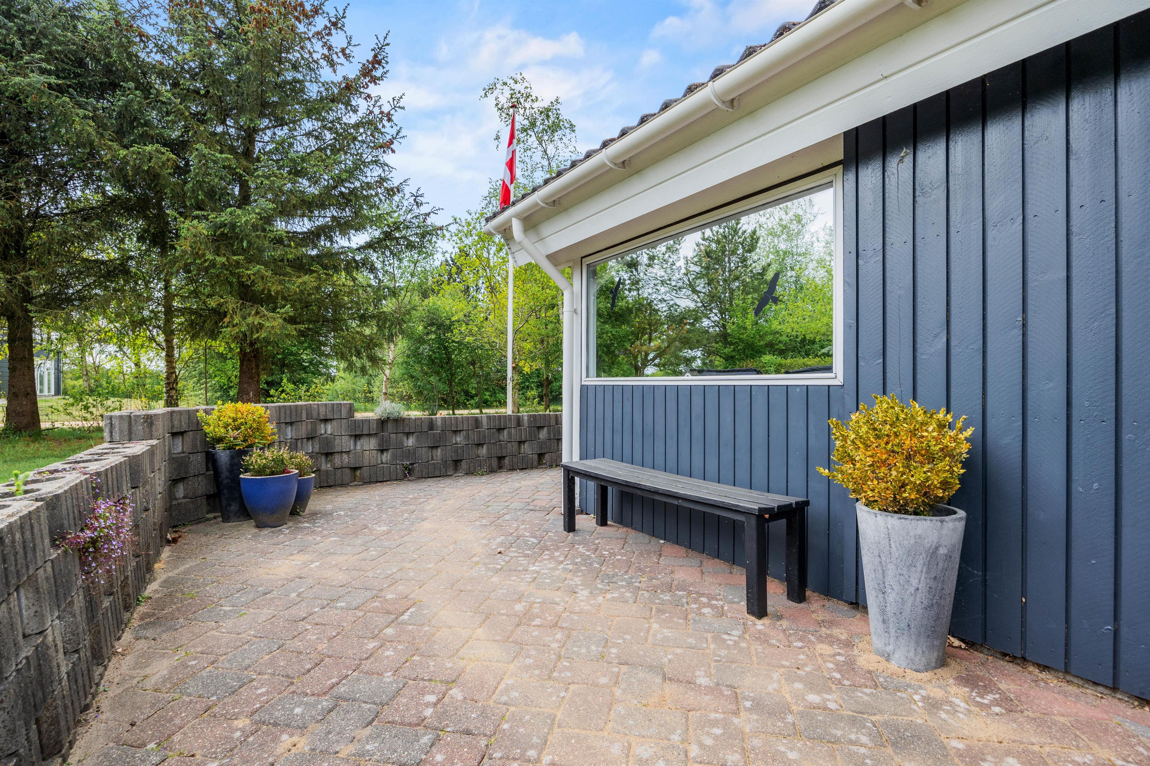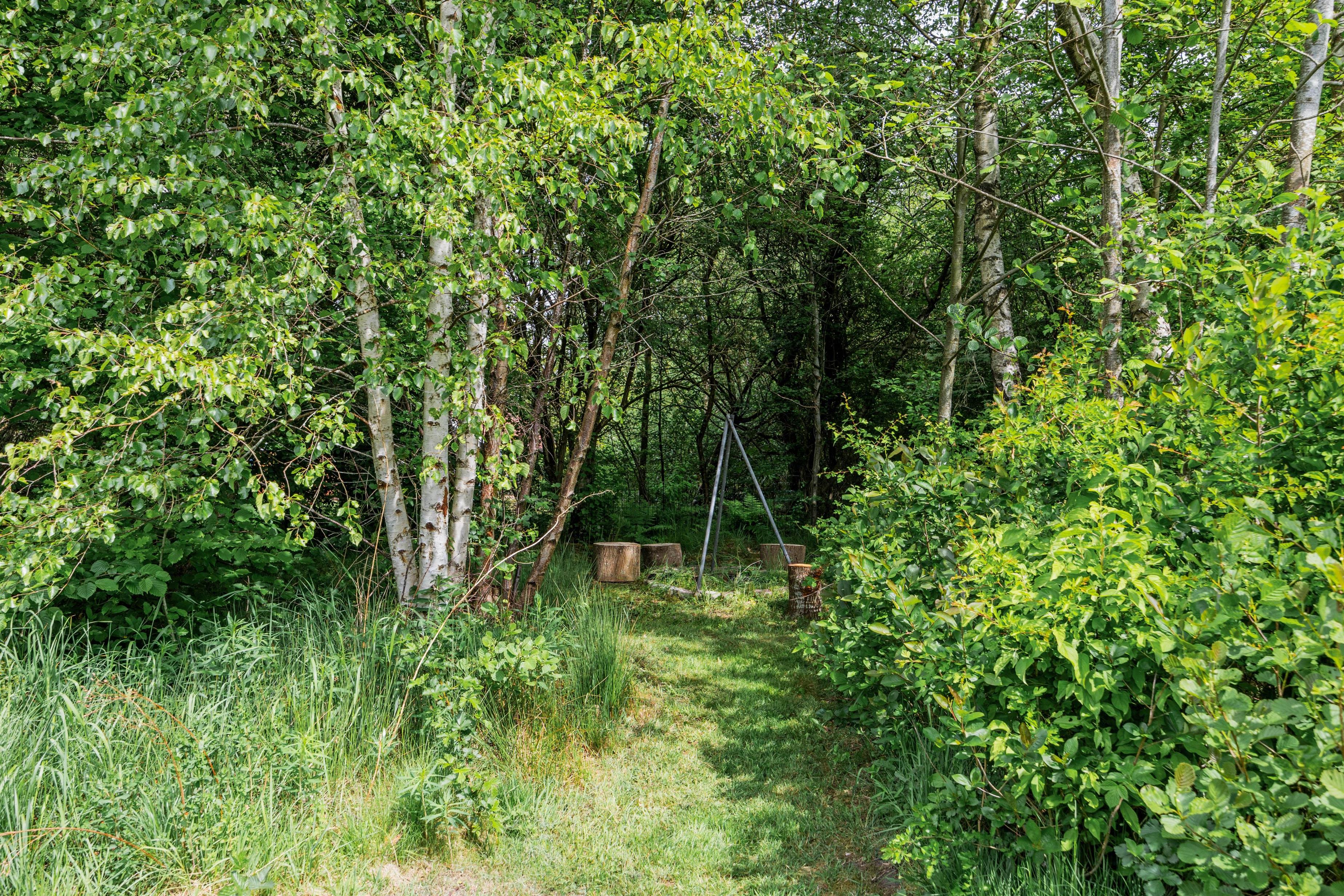 For de voksne er der mulighed for at tænde op i grillen eller samles om bålstedet og nyde en lækker udendørsmiddag på de lune sommeraftener, mens den overdækkede terrasse tilbyder et ideelt sted til både sol- og regnvejrsdage. Her kan I slappe af med en god bog eller nyde morgenkaffen i det fri, alt imens I har udsigt over den skønne natur omkring jer.