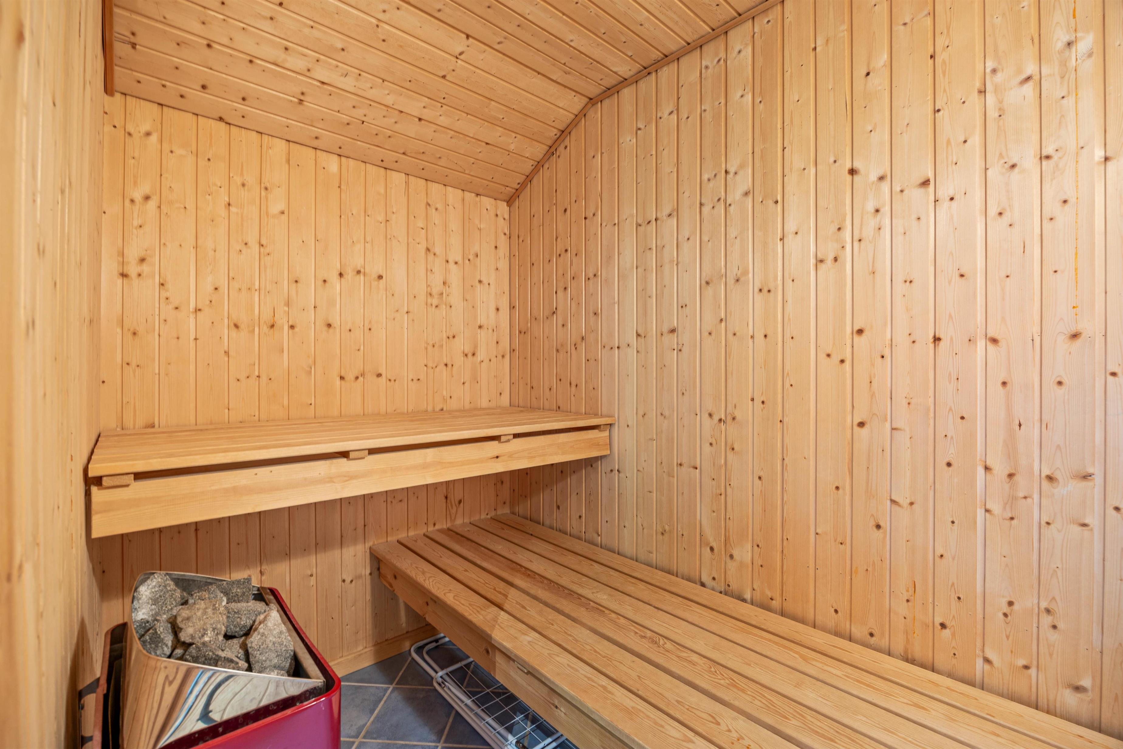 For at gøre jeres ophold så afslappende som muligt, er der også både vaskemaskine og tørretumbler til rådighed, så I nemt kan klare vasketøjet. Og når der skal helt ro på, finder I et badeværelset, der med sin sauna, gulvvarme og tømmespa inviterer til ren afslapning og forkælelse efter en dag fyldt med aktiviteter.
