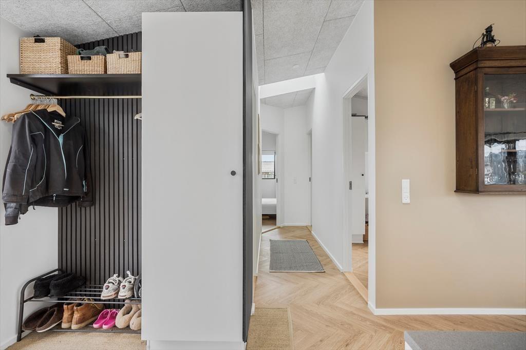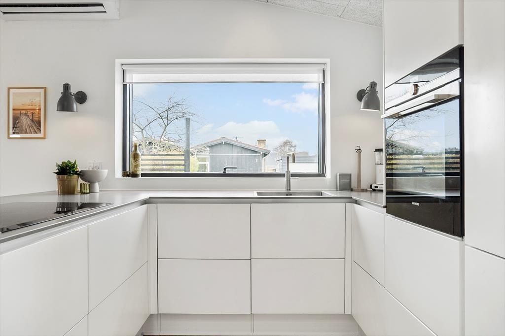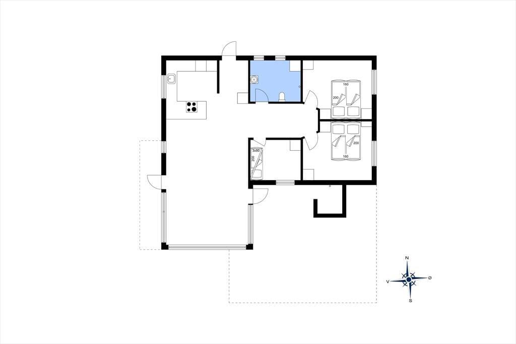 Sommerhuset er indrettet med entré hvor der er mulighed for at hænge jakken og stille skoene til siden. Fra entreen er der adgang til sommerhusets hjerterum, det lyse køkken-alrum der ligger i åben forbindelse med stuen. Her er der plads til at samle familien til gode måltider, brætspil og afslapning i sofaarrangementet. Herfra er der adgang til husets lækre badeværelse med vaskemaskine og 3 gode værelser med 5 sovepladser i alt.