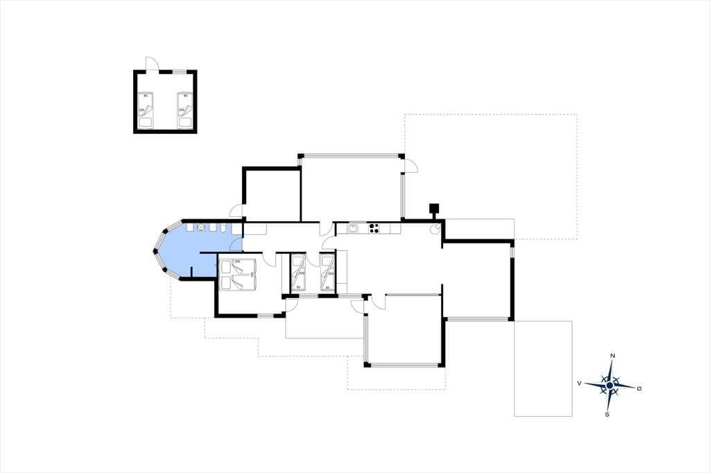 Sommerhuset indeholder en stue, et køkken, to soveværelser og et badeværelse. Derudover er der et fint anneks med to enkeltsenge, så her er der god plads til op til seks personer. På begge sider af huset finder du hyggelige udestuer, der forlænger sommeren og gør det muligt at nyde udelivet helt ind i efteråret.