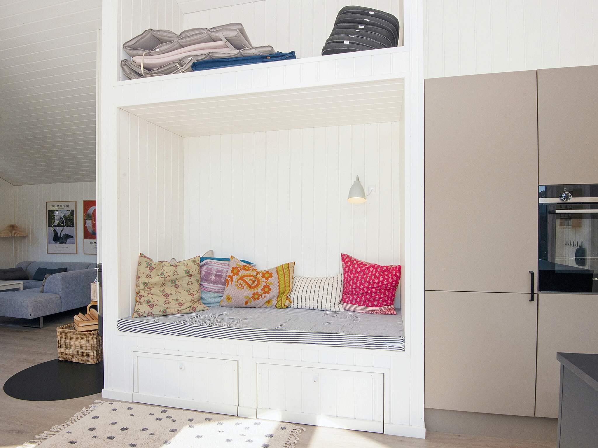 Oplev Juelsminde fra sin bedste side i dette moderne feriehus, der er designet med komfort og familiesammenhold for øje. Det lyse interiør med højt til loftet skaber en luftig og indbydende atmosfære, hvilket gør det til det perfekte udgangspunkt for en afslappende ferie ved havet. Huset har tre velindrettede soveværelser, et moderne badeværelse med både vaskemaskine og tørretumbler samt et rummeligt åbent køkken og spiseplads, hvor familien kan samles for at lave mad og spise sammen.