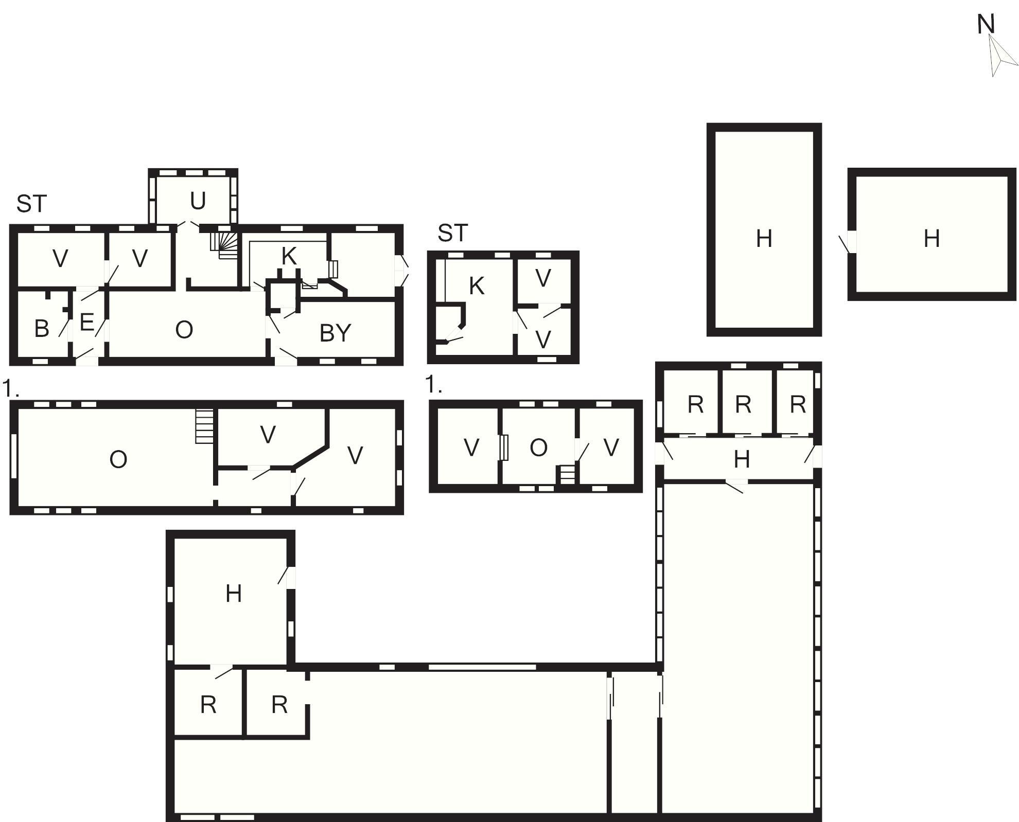 9 Soveværelser: (1DS+2S)+(1O)+(1O)+(2S)+(1DS+2S)+(2S)+(2S)+(2S)+(2S)