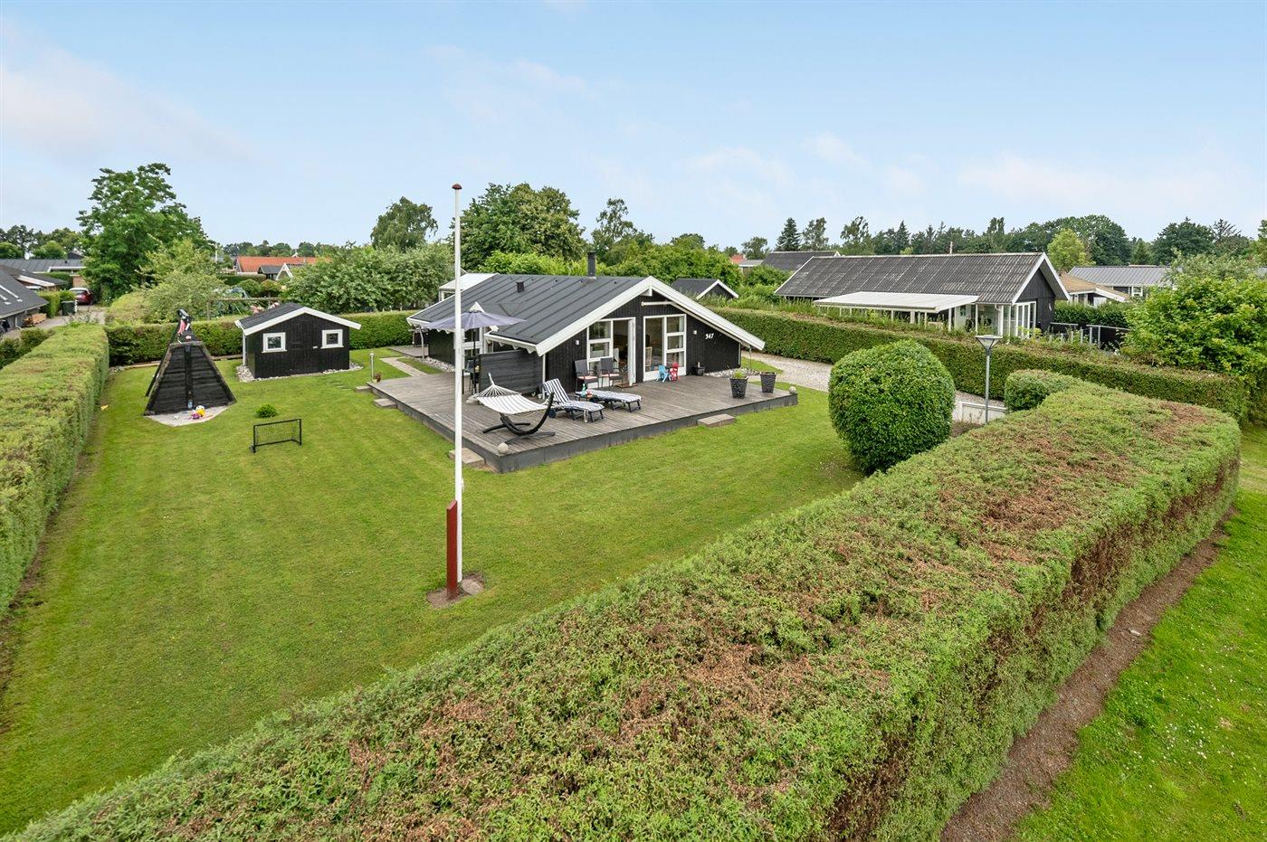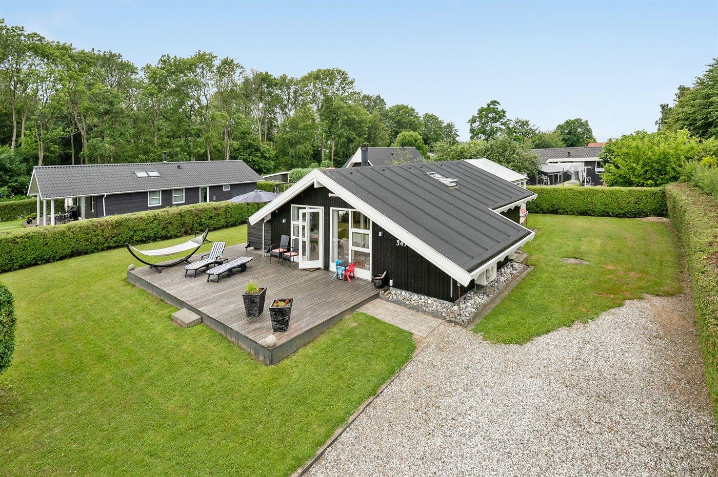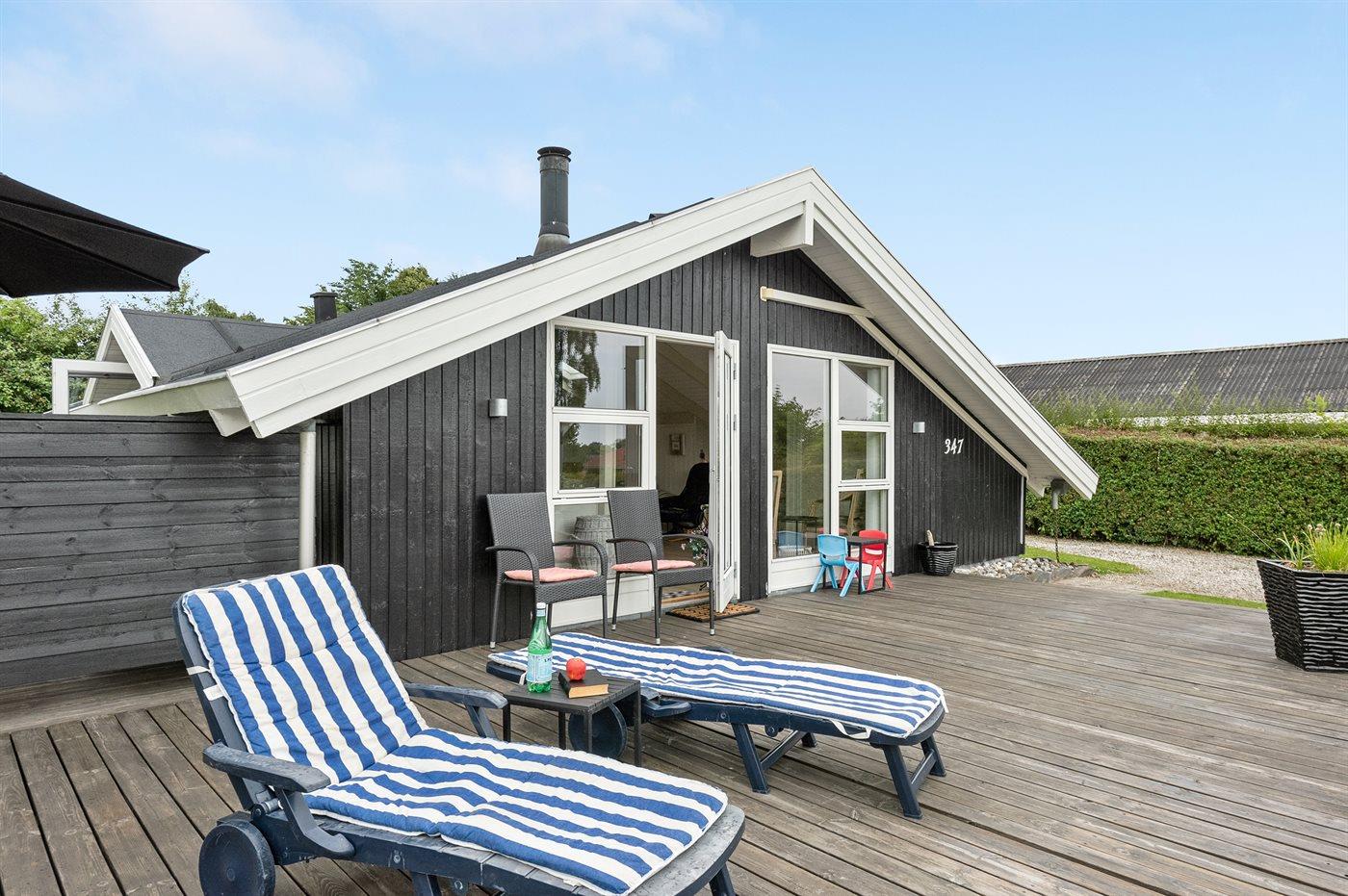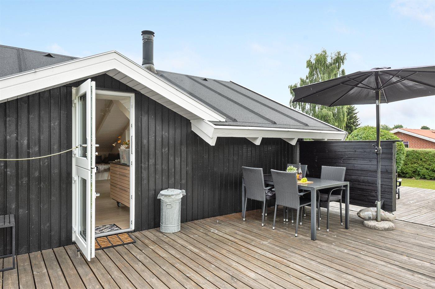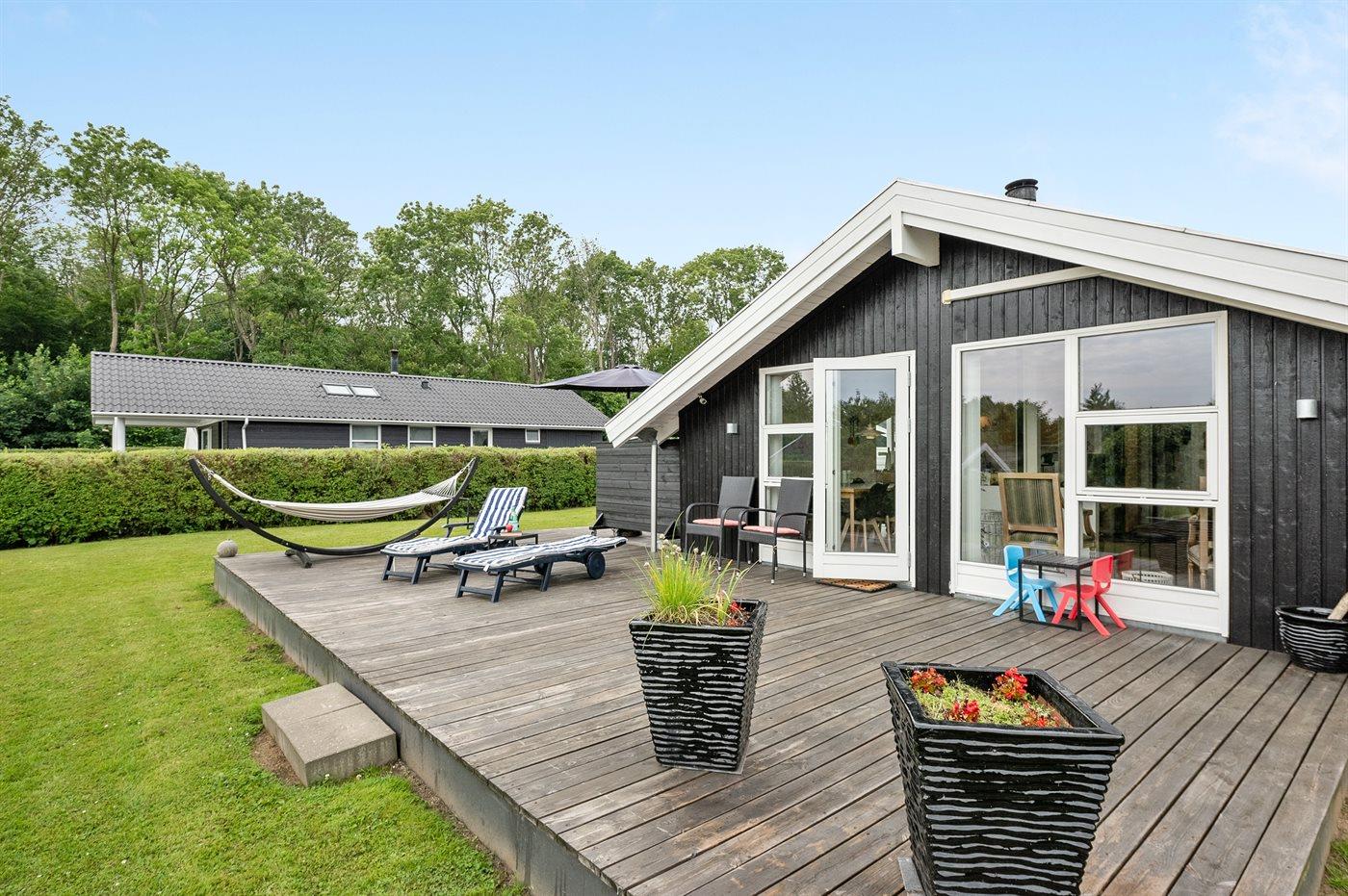 Hyggeligt sommerhus nær Juelsminde med moderne faciliteter og dejlige terrassearealer.