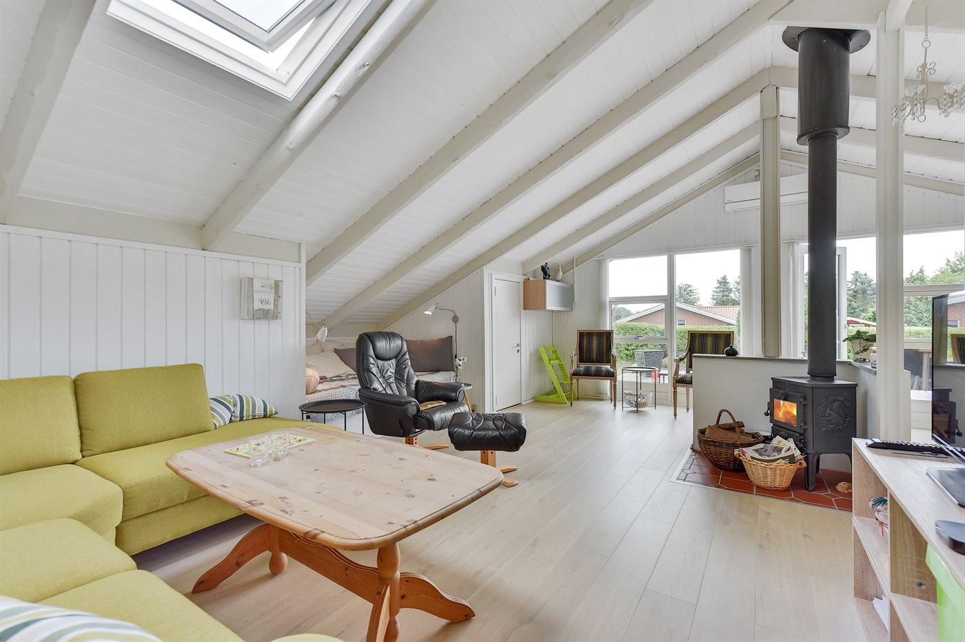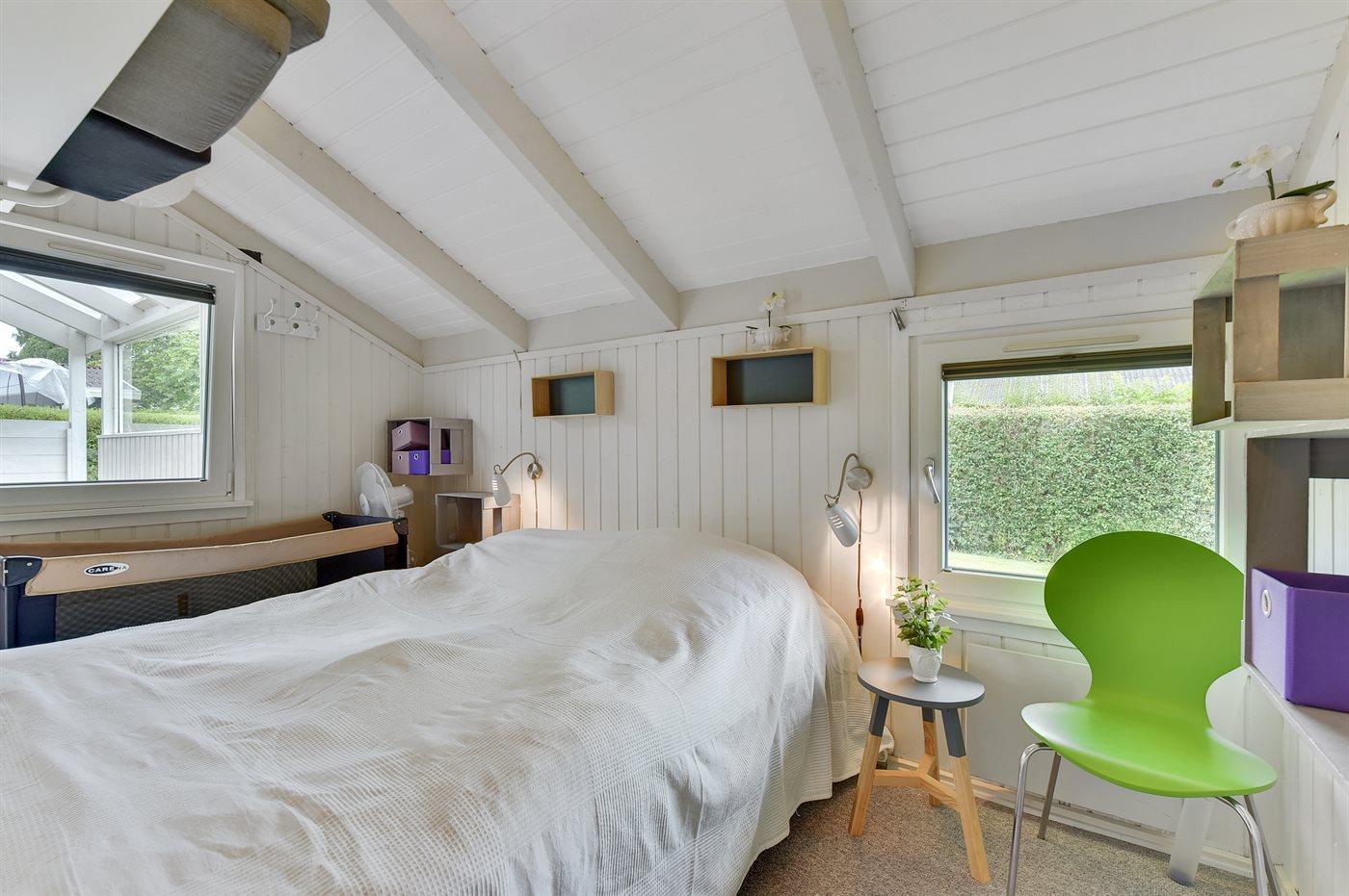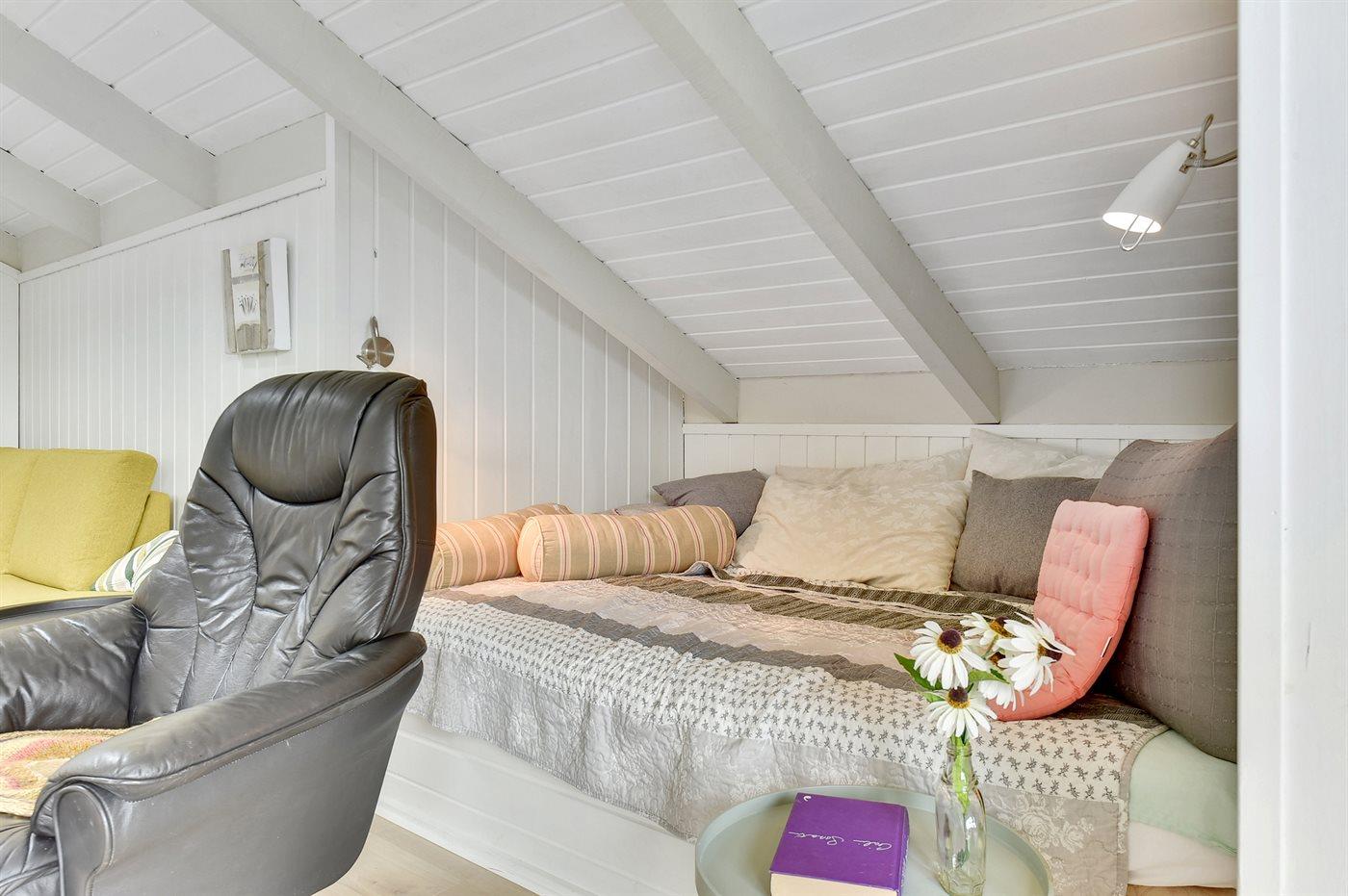 Der er i alt 2 soveværelser. Sovepladserne fordeler sig på: 4 sovepladser i dobbeltsenge. 2 sovepladser i alkove. Derudover er der 1 stk. barneseng.