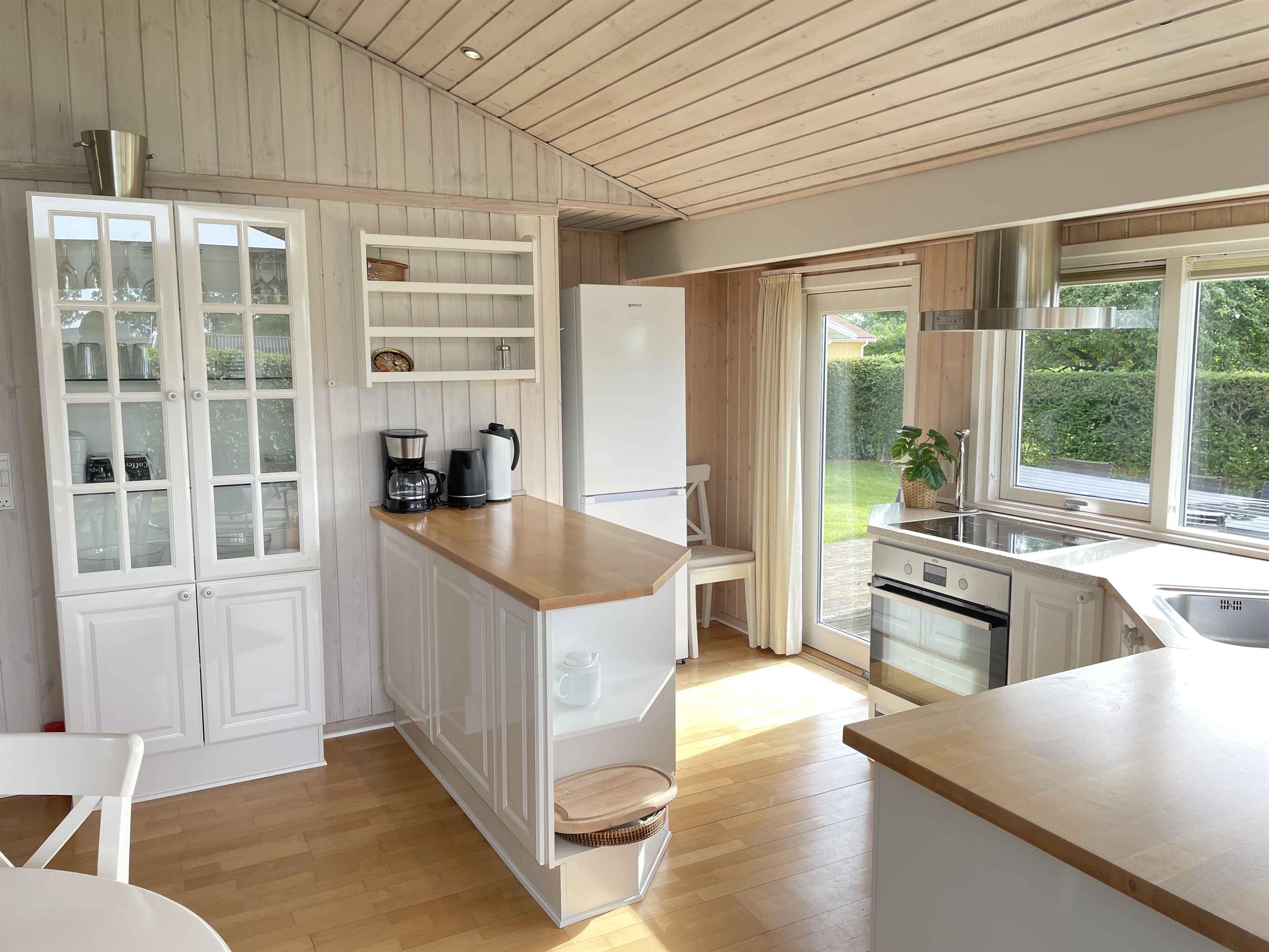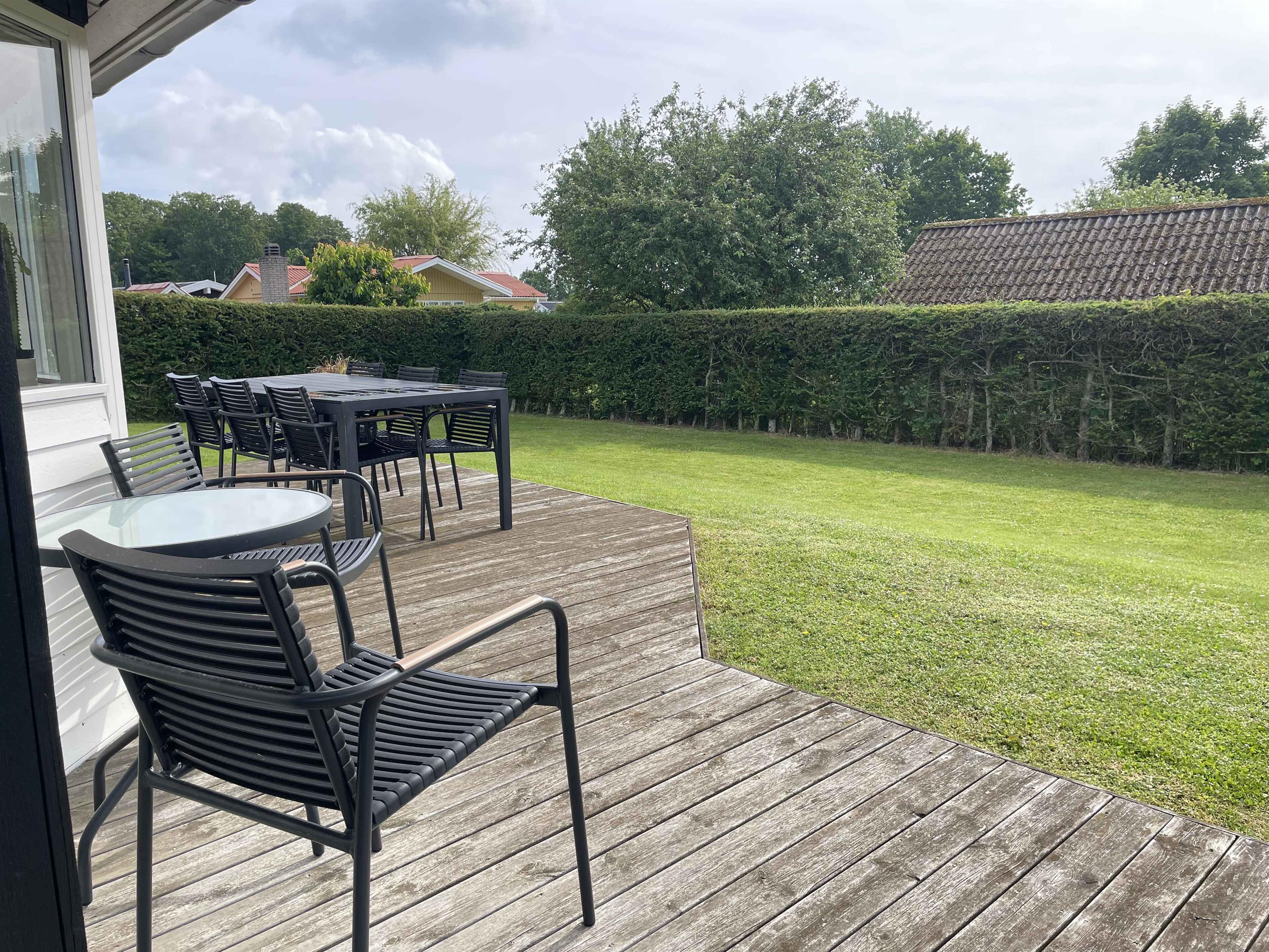 dejligt feriehus, kun 150 til stranden, flere terrasser så der er sol hele dagen, udendørs bruser, legeplads lige overfor sommerhuset, varmepumpe, helårsisoleret, internet, gulvvarme i hele huset