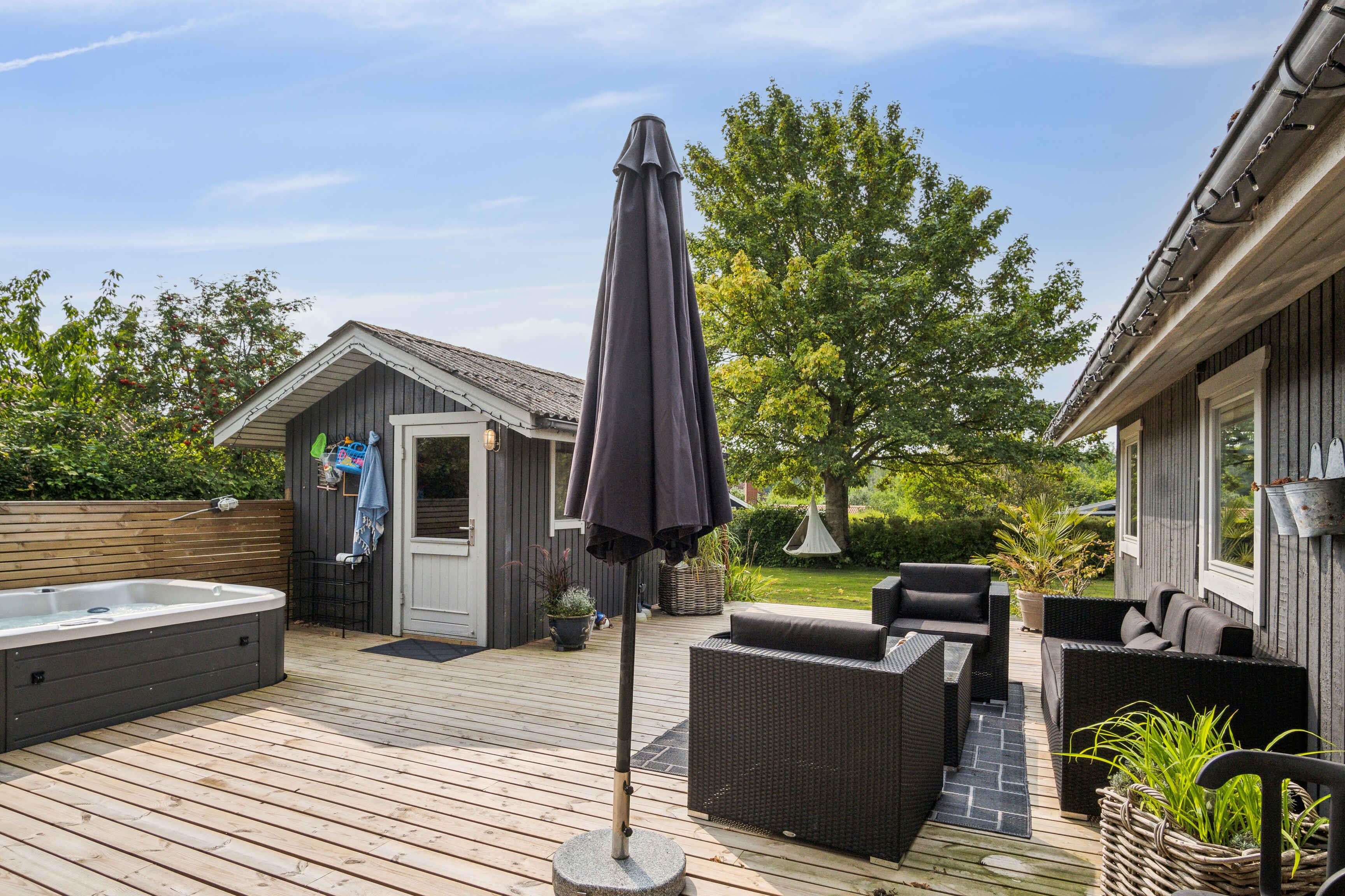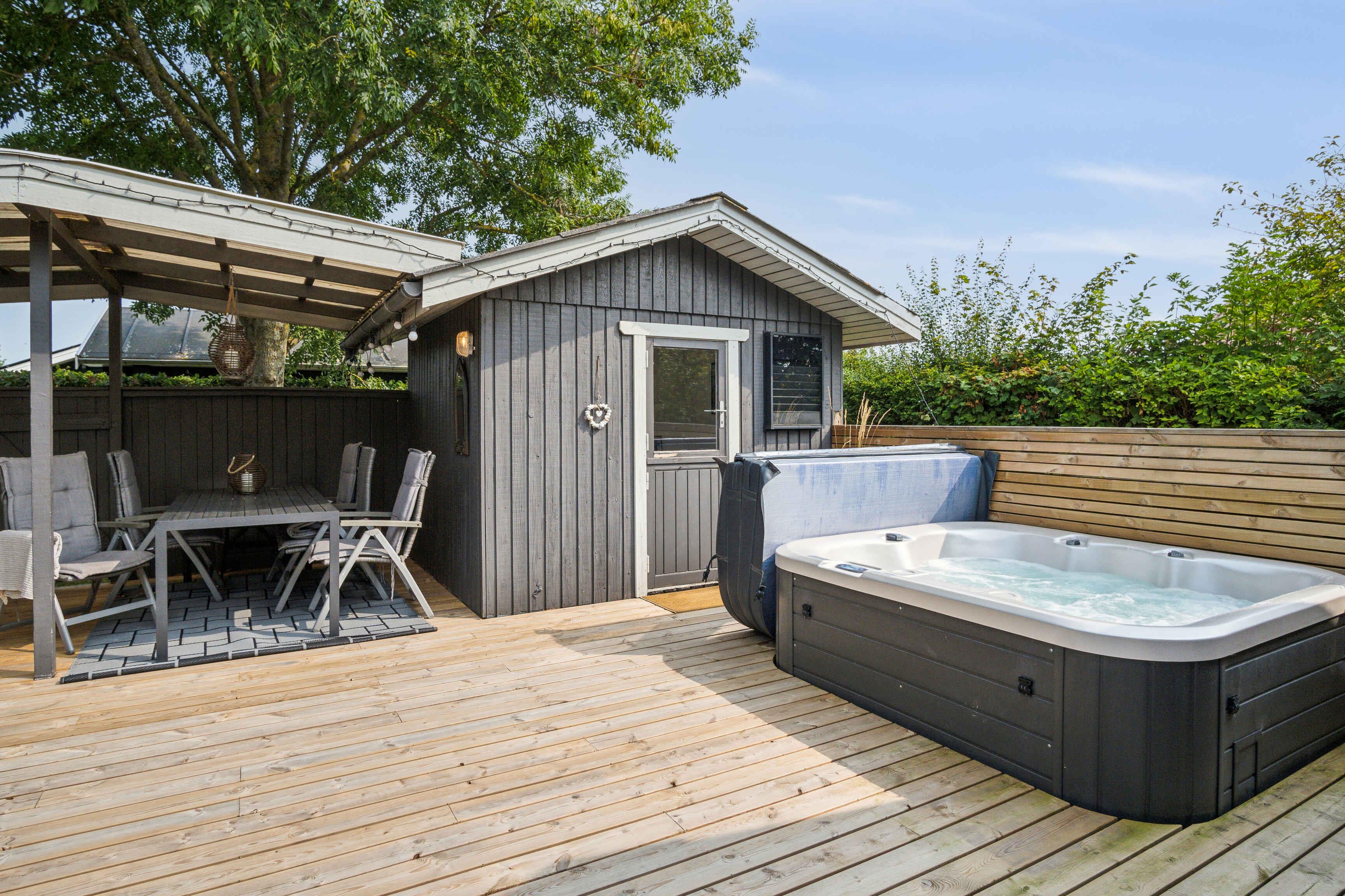 Hyggeligt sommerhus i Pøt Strandby med udespa, tæt på strand og natur, perfekt til afslappende familieferie.