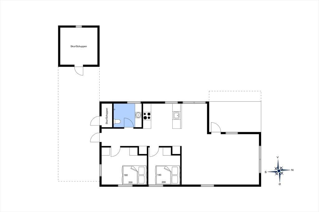Solbakken ender blindt ude i det smukke klitlandskab, der breder sig rundt om Kandestederne. Stranden er cirka 900 meter væk, og Vesterhavet er et smukt syn i al slags vejr og på alle tidspunkter – uanset om du går tur en vindomsust efterårsdag eller beundrer solnedgangen på en stille sommeraften. Alle naturelskere skal også glæde sig til at opleve Råbjerg Mile, der også ligger dejligt tæt på, og hvis du ikke kan få nok af strand, sand og saltvand, kan du køre til Kattegat og den betagende kyststrækning ud mod Ålbæk Bugt.Køreturen til Skagen tager mindre end 20 minutter, så ferien kan også nemt byde på museumsbesøg og lækre restauranter i Jyllands nordligste by.