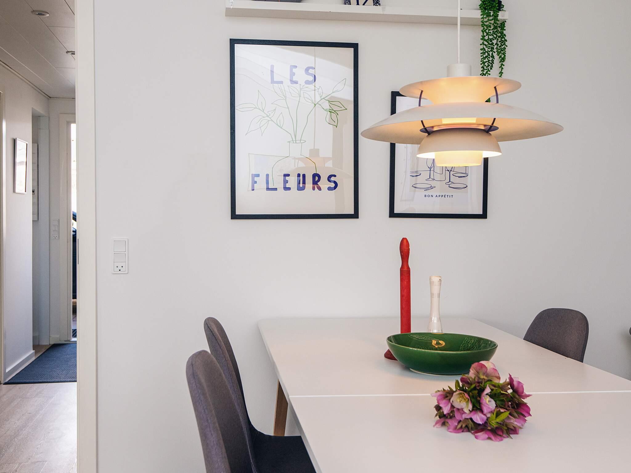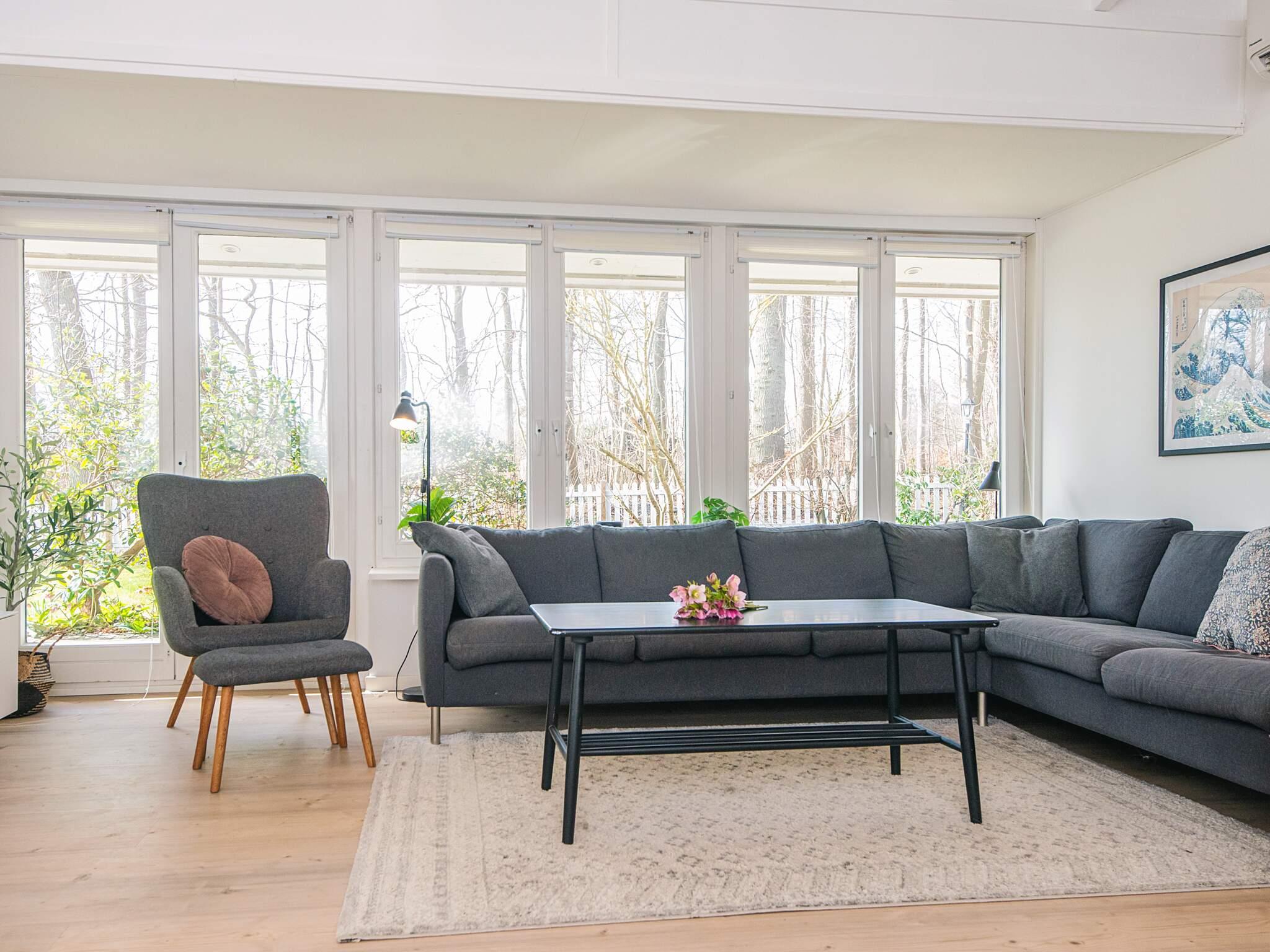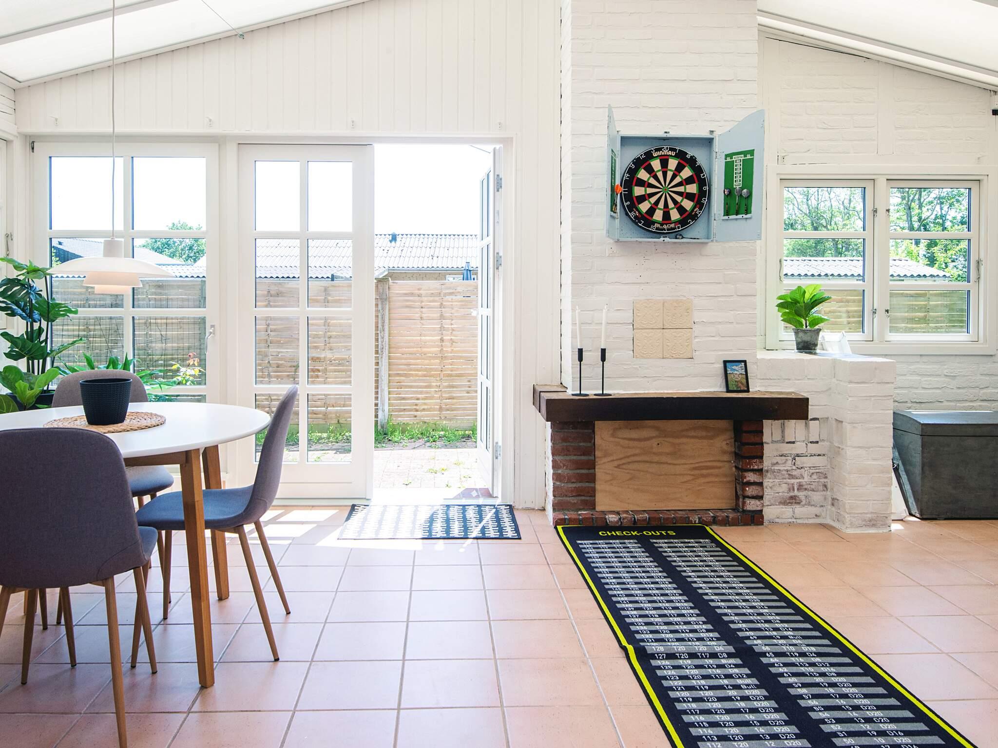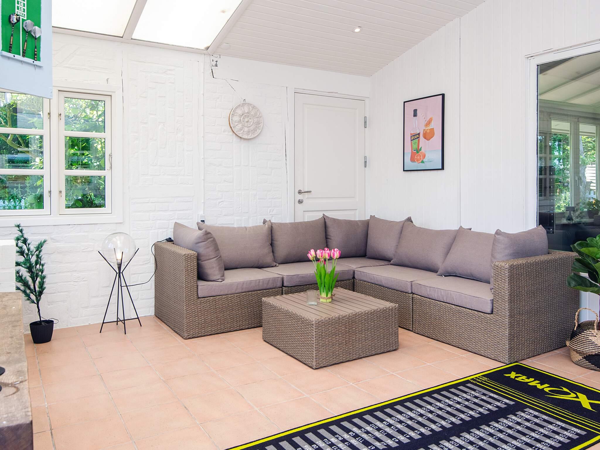 Interiøret er luftigt og indbydende, med skrå lofter i stuen og vinterhaven, der tilføjer karakter og en varm atmosfære. Huset indeholder tre rummelige soveværelser, hver med en dobbeltseng, og to badeværelser med bruser. Et stort familieværelse og den generøse vinterhave giver rigelig plads til fælles aktiviteter, spisning eller bare slappe af sammen.