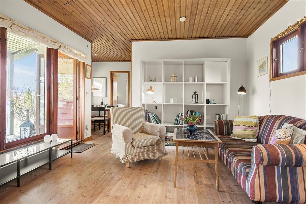 Sommerhus i Storebæltskysten, Sydvestsjælland, med plads til 4 voksne. Der er en hyggelig indretning med bl.a. brændeovn, og du finder desuden vaskemaskine og opvaskemaskine i boligen.