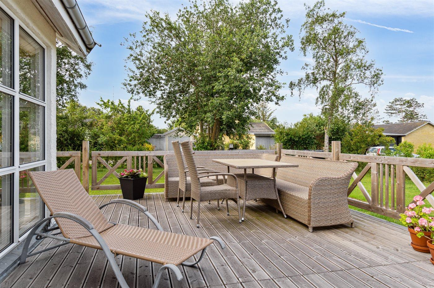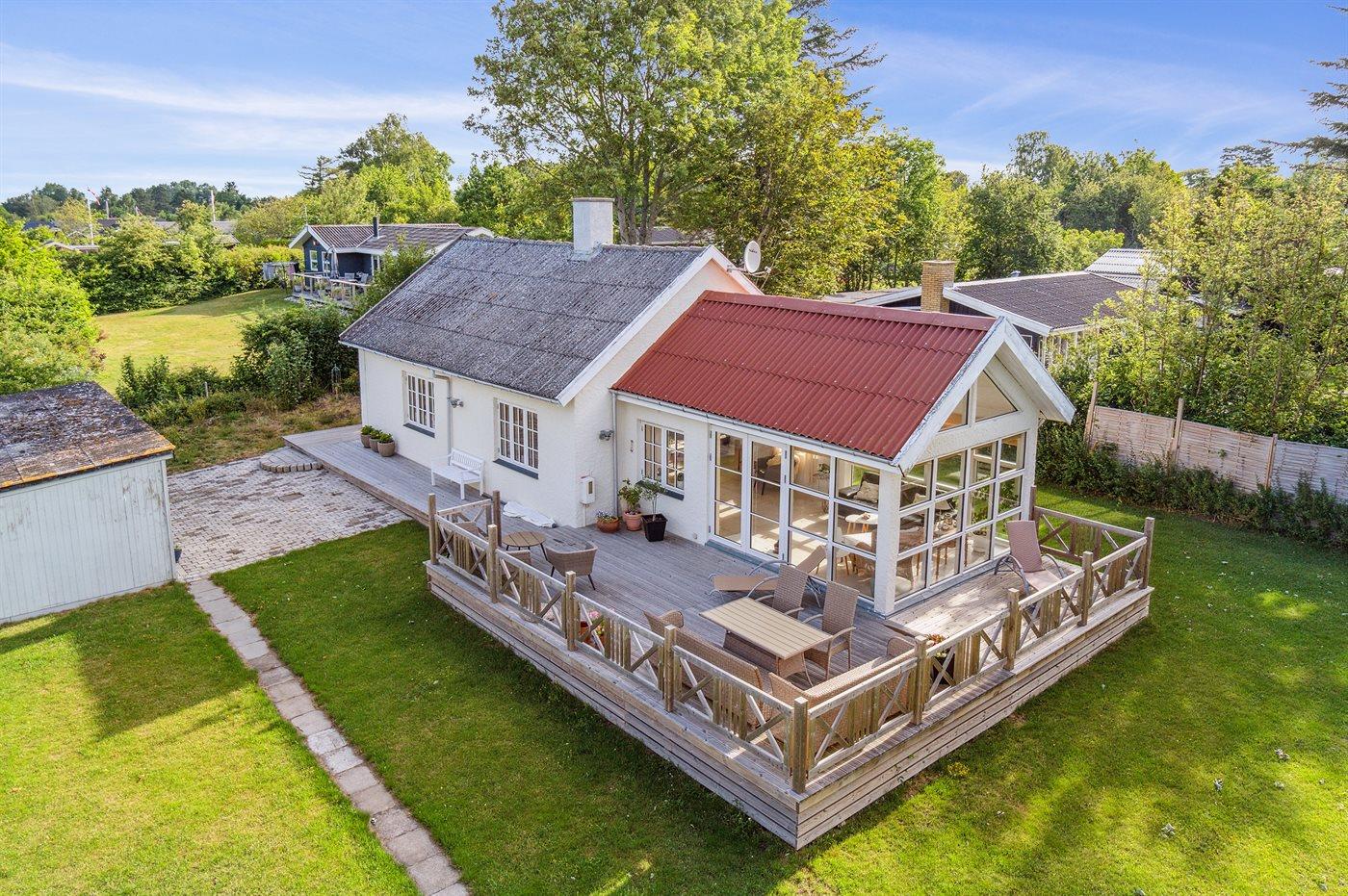 Lys og energivenligt sommerhus nær Kelstrup Strand med stor terrasse og gulvvarme.