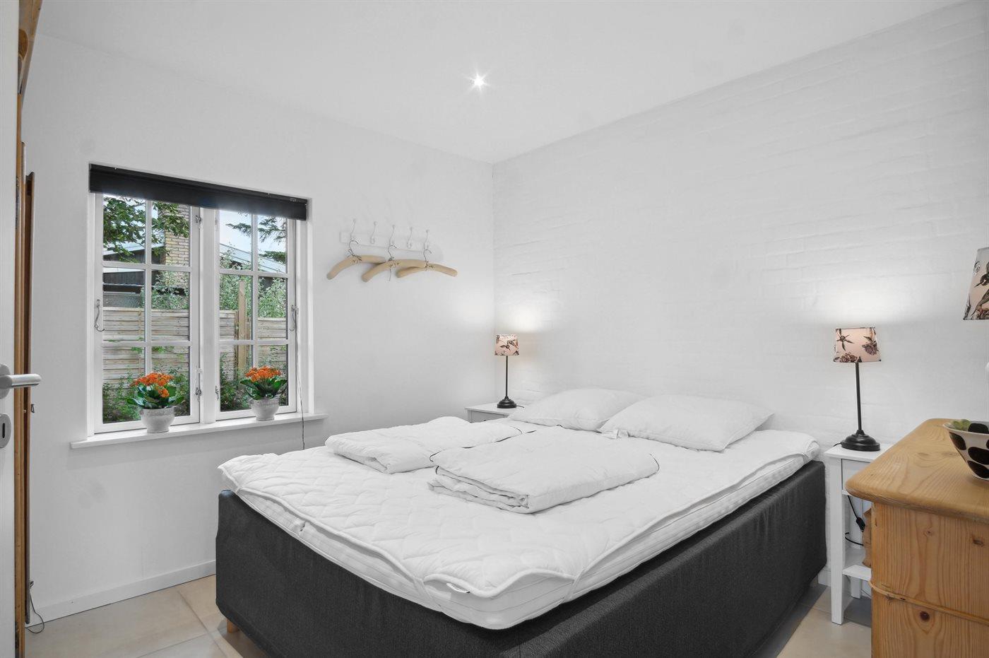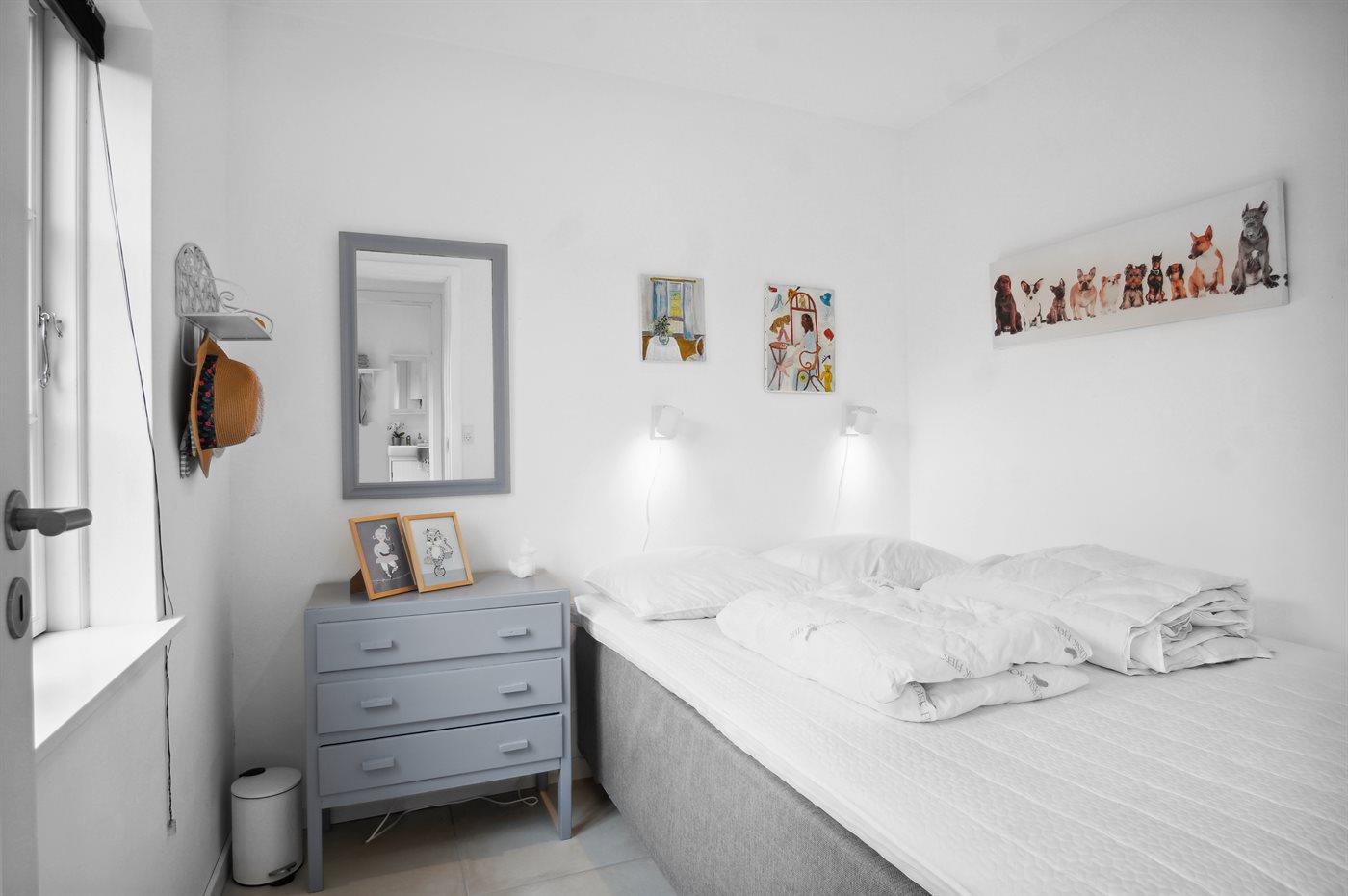 Der er i alt 2 soveværelser. Sovepladserne fordeler sig på: 4 sovepladser i dobbeltsenge. 2 sovepladser i sovesofa (dobbelt).- 2 af disse sovepladser befinder sig i stuen. Derudover er der 1 stk. barneseng.