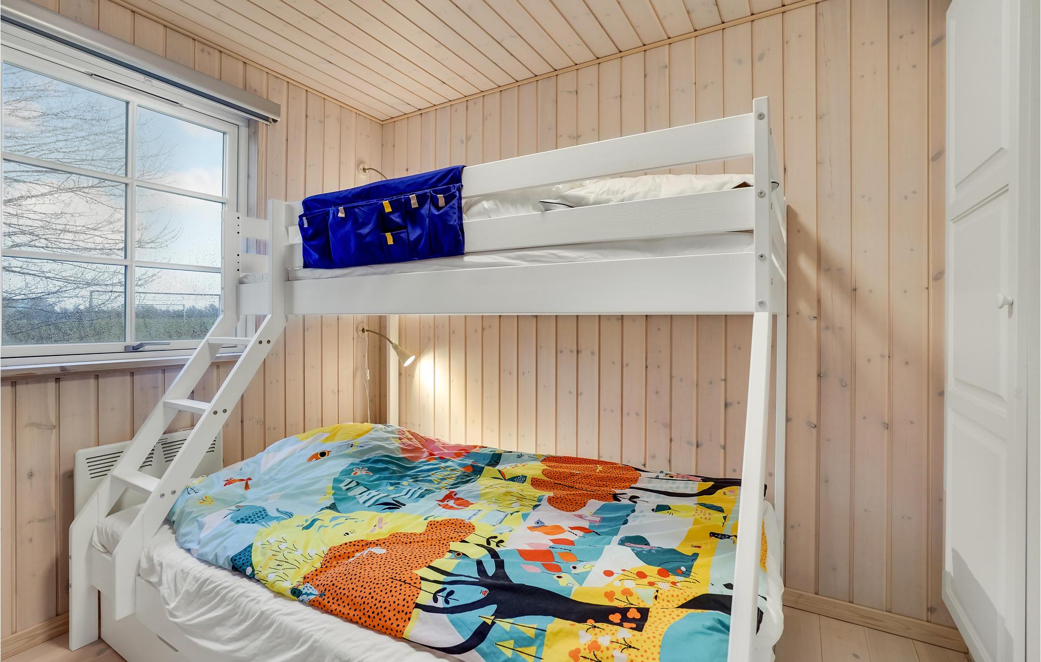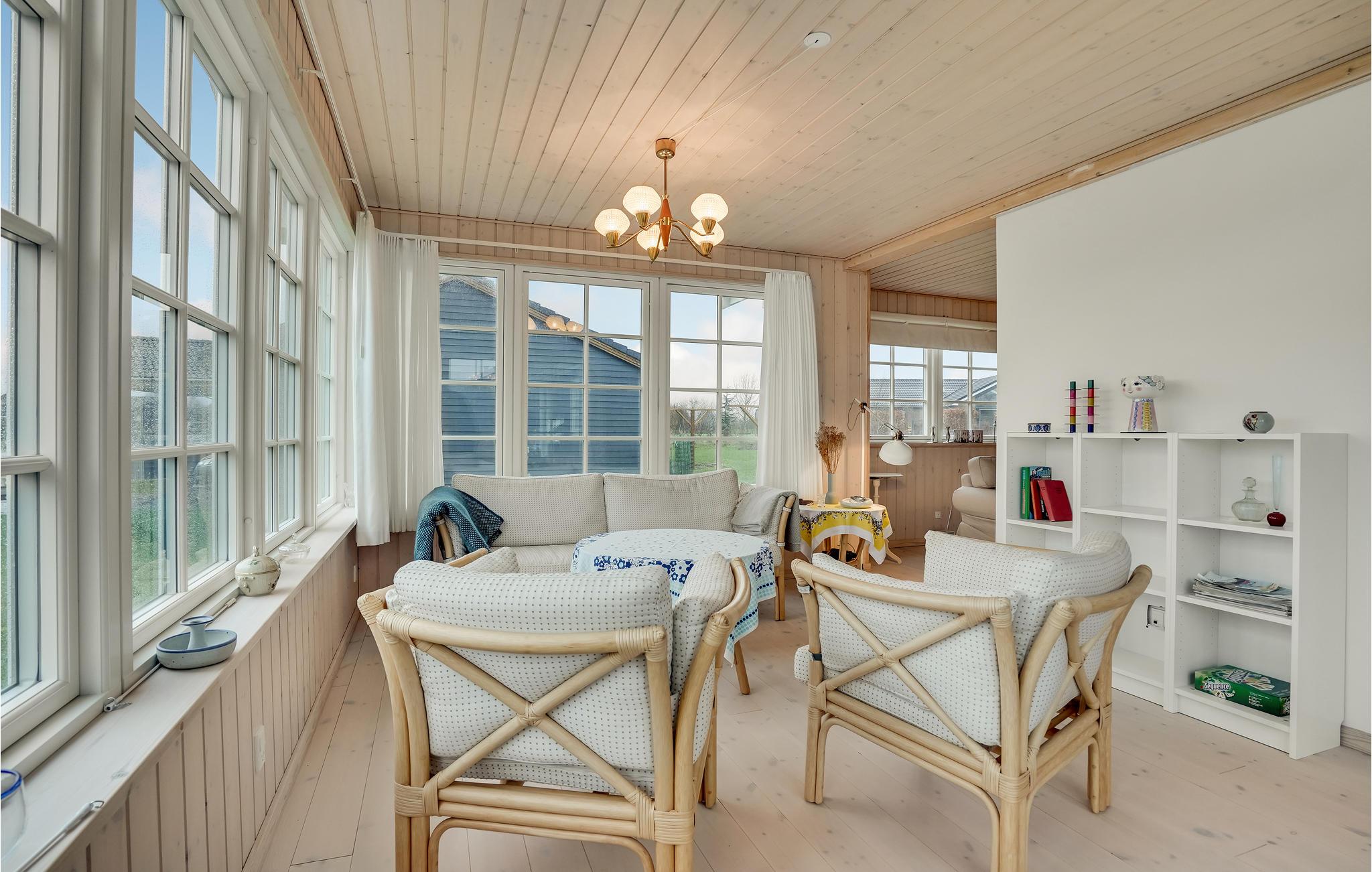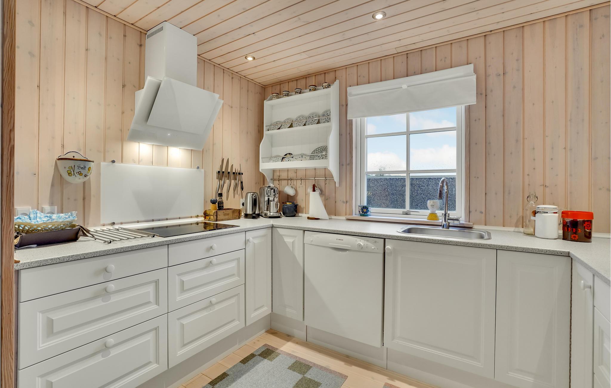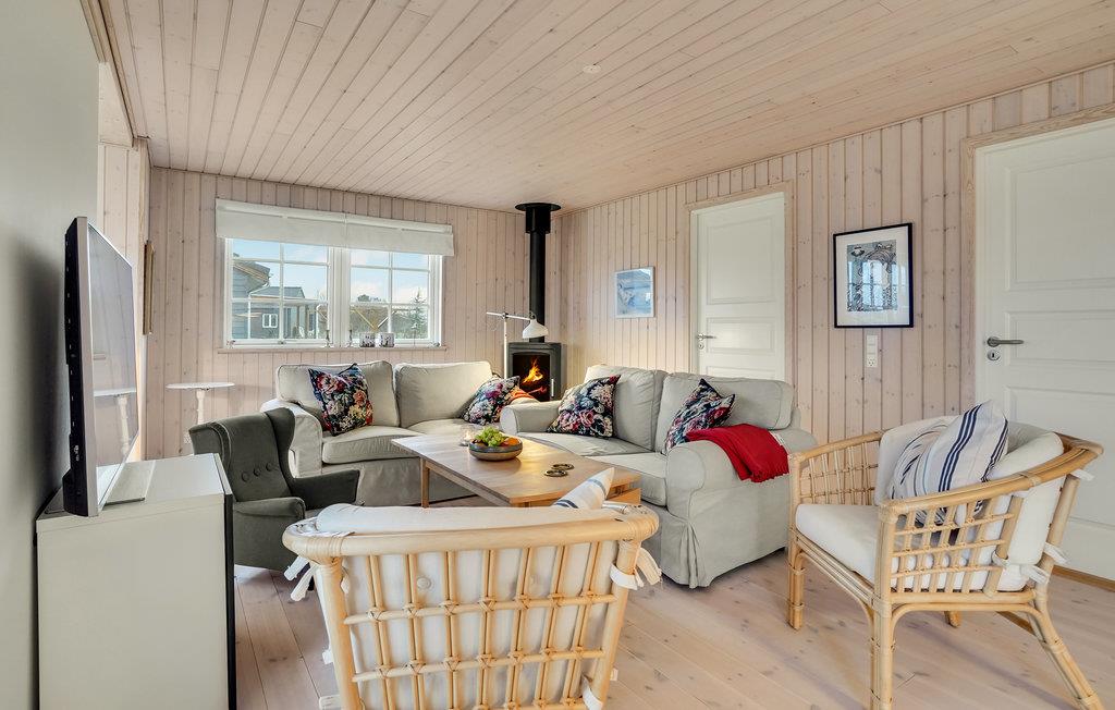 Træd ind i dette smukke feriehus og føl jer straks hjemme. Det indbydende hus har store vinduespartier i den rummelige stue, som særger for et skønt naturligt lys. Her har I som familie plads nok til at gøre jer godt tilpas i sofaerne med en varm, knitrende ild i brændeovnen, se jeres yndlingsfilm eller spille brætspil. Sving grydeskeerne sammen eller læs en god bog med udsigt til haven. Om aftenen, når jeres børn sover, kan I slappe af i jacuzzien på badeværelset og nyde freden og roen. I kan starte jeres dage i sommermånederne på den vindbeskyttede terrasse og nyde en lækker morgenmad. Jeres børn vil finde masser af plads til at lege og løbe rundt i haven.