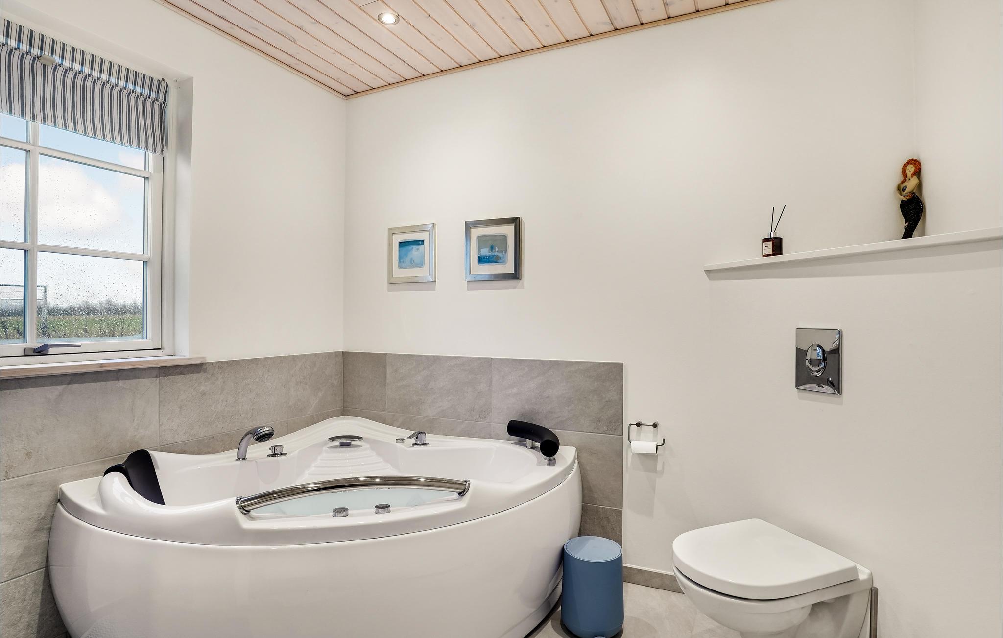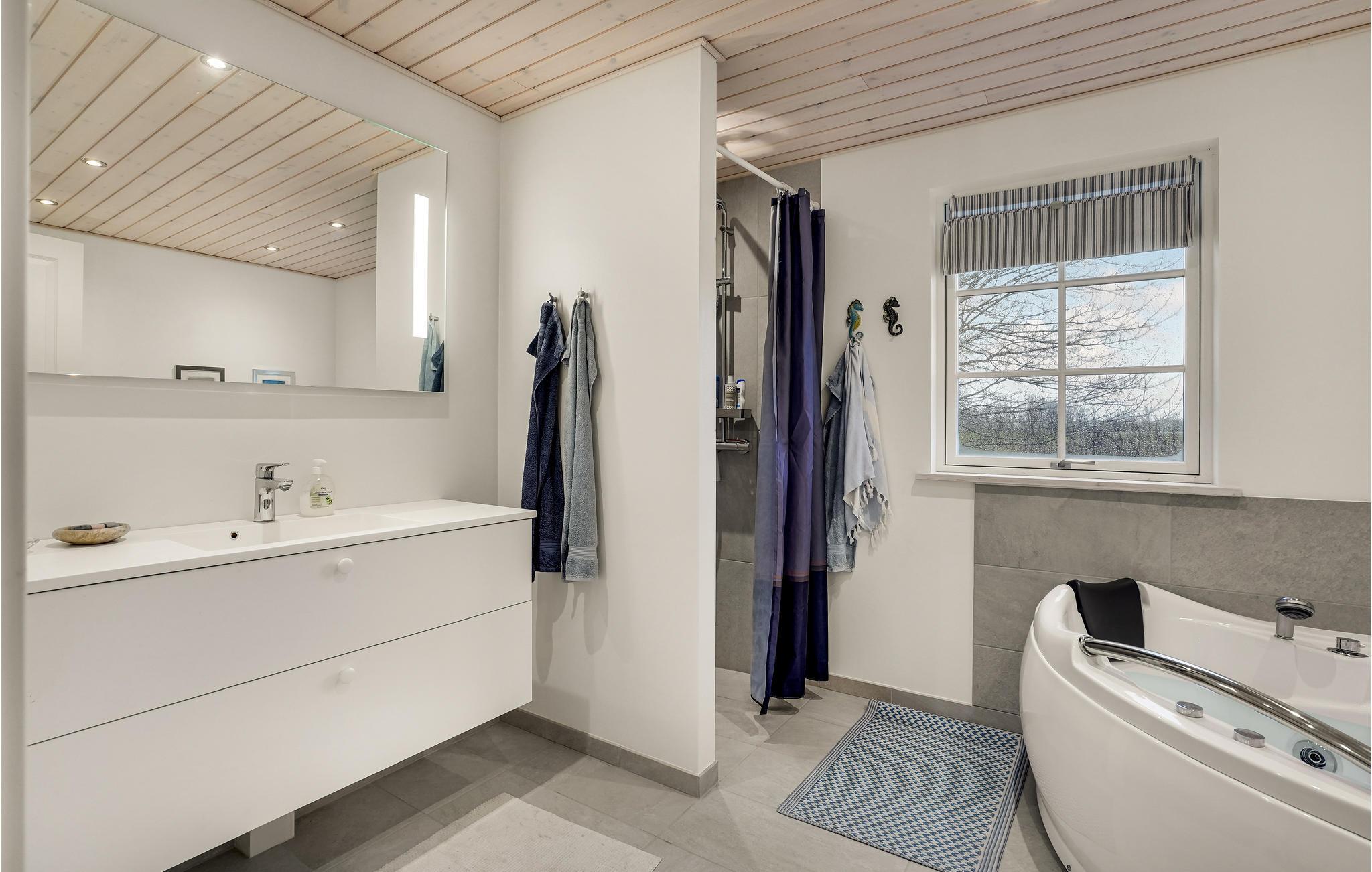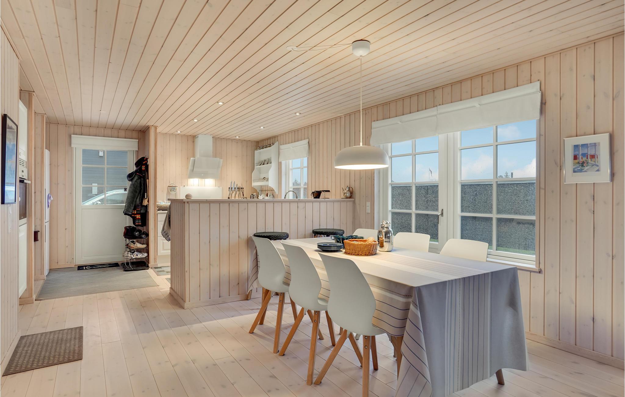 Træd ind i dette smukke feriehus og føl jer straks hjemme. Det indbydende hus har store vinduespartier i den rummelige stue, som særger for et skønt naturligt lys. Her har I som familie plads nok til at gøre jer godt tilpas i sofaerne med en varm, knitrende ild i brændeovnen, se jeres yndlingsfilm eller spille brætspil. Sving grydeskeerne sammen eller læs en god bog med udsigt til haven. Om aftenen, når jeres børn sover, kan I slappe af i jacuzzien på badeværelset og nyde freden og roen. I kan starte jeres dage i sommermånederne på den vindbeskyttede terrasse og nyde en lækker morgenmad. Jeres børn vil finde masser af plads til at lege og løbe rundt i haven.